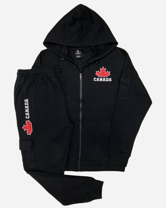 Men Fleece Jogger Canada Theme Sweatsuit with utility Cargo Pockets Outfit