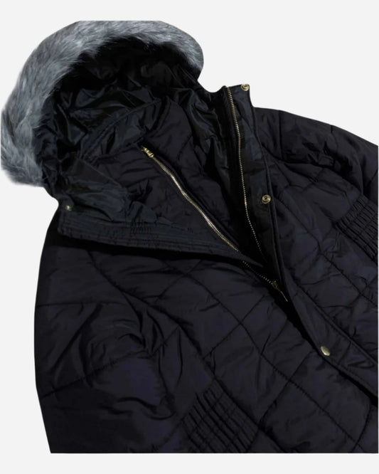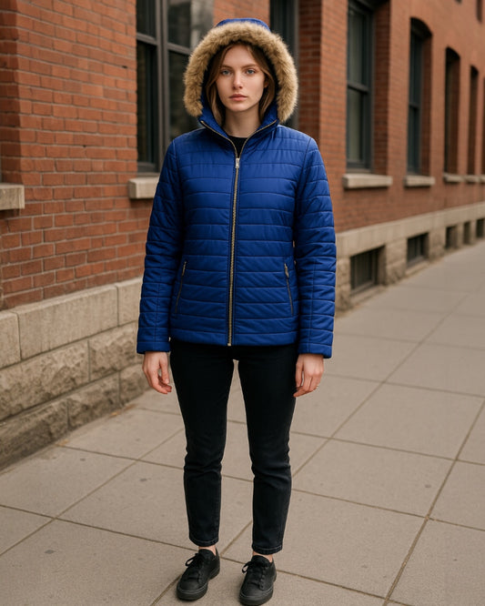 Women’s Plus Size Lightweight Bubble Jacket with Removable Oxford Fur