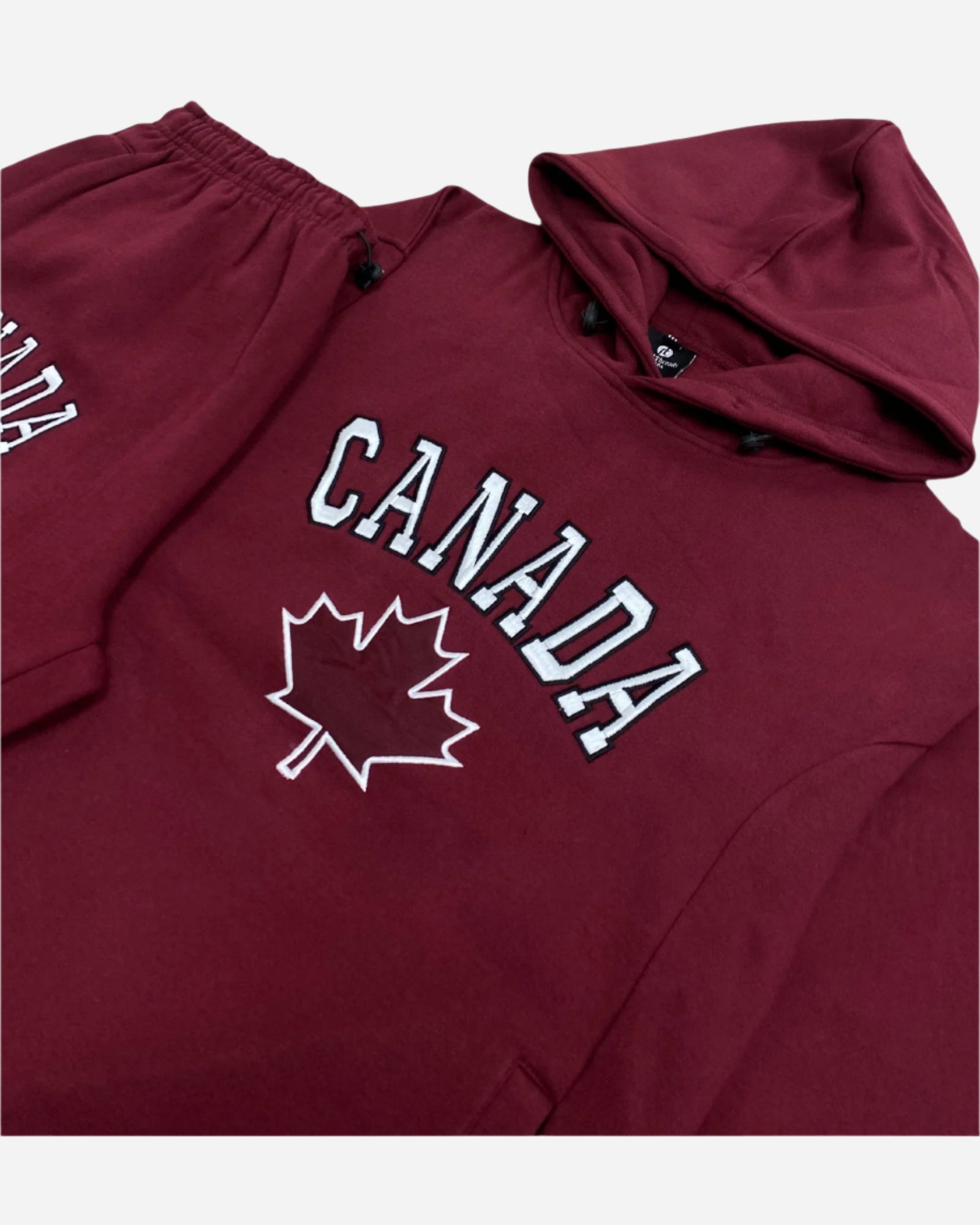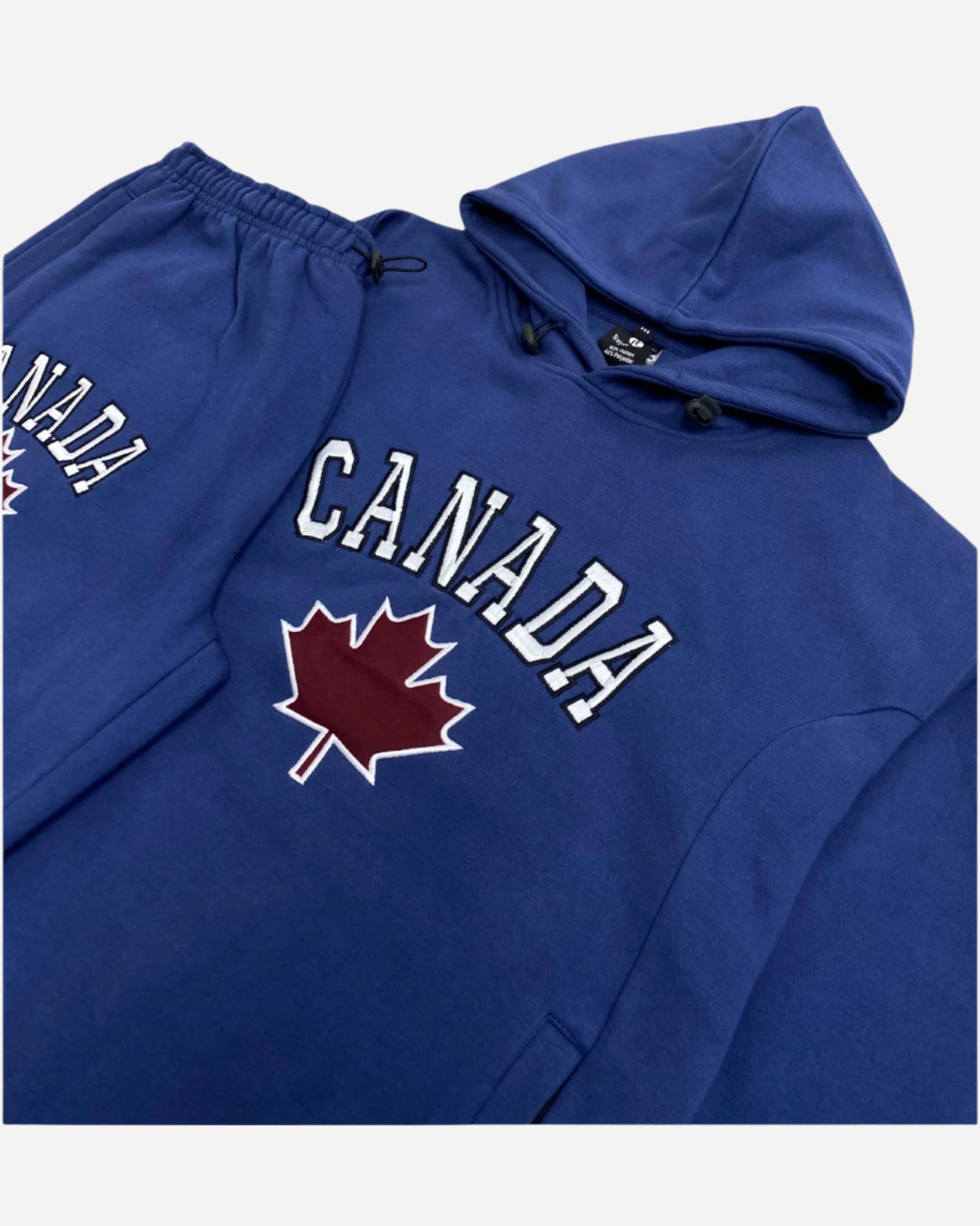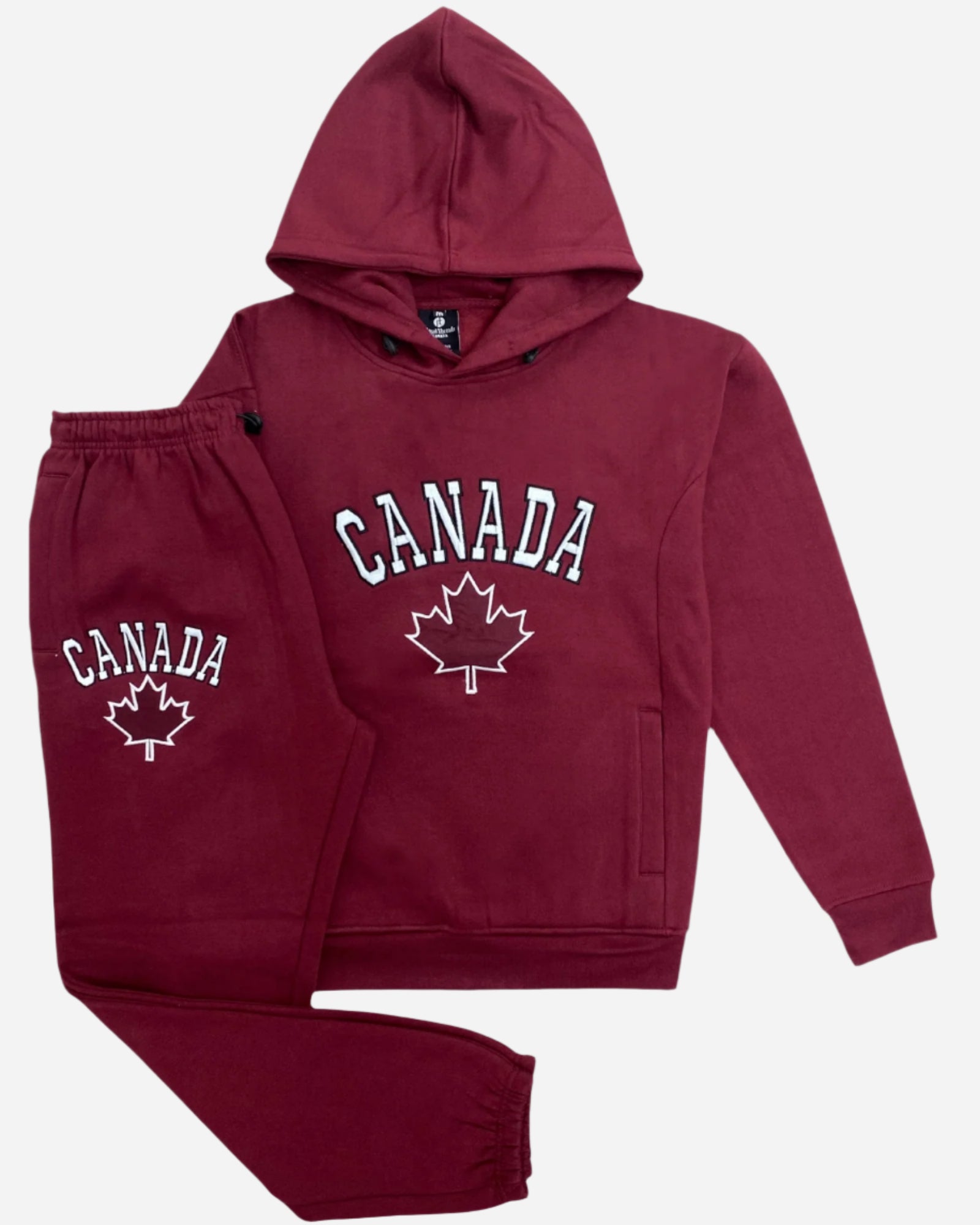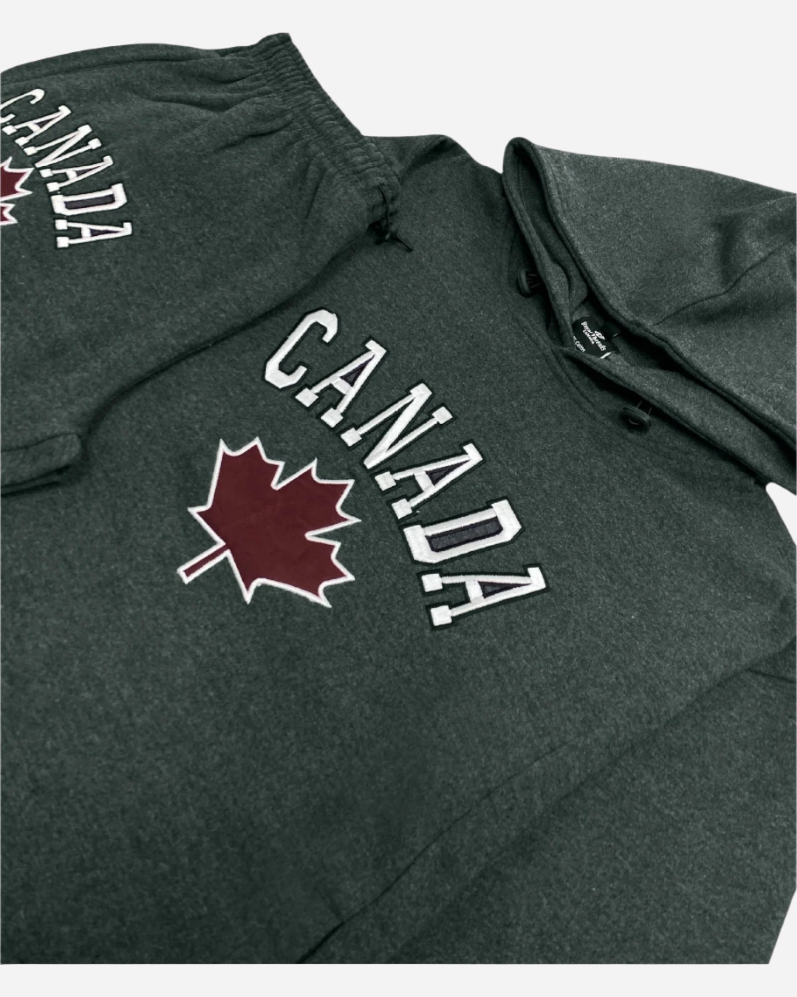 This Classic Pullover Canada Print Sweatsuit is featured in a premium quality fleece material for the winter season. The pullover hoodie and a matching sweatpants compliment current fashion trends in Activewear winter clothes. Fleece hoodie and sweatpants are common for daily casual activates, around the house and even for work.