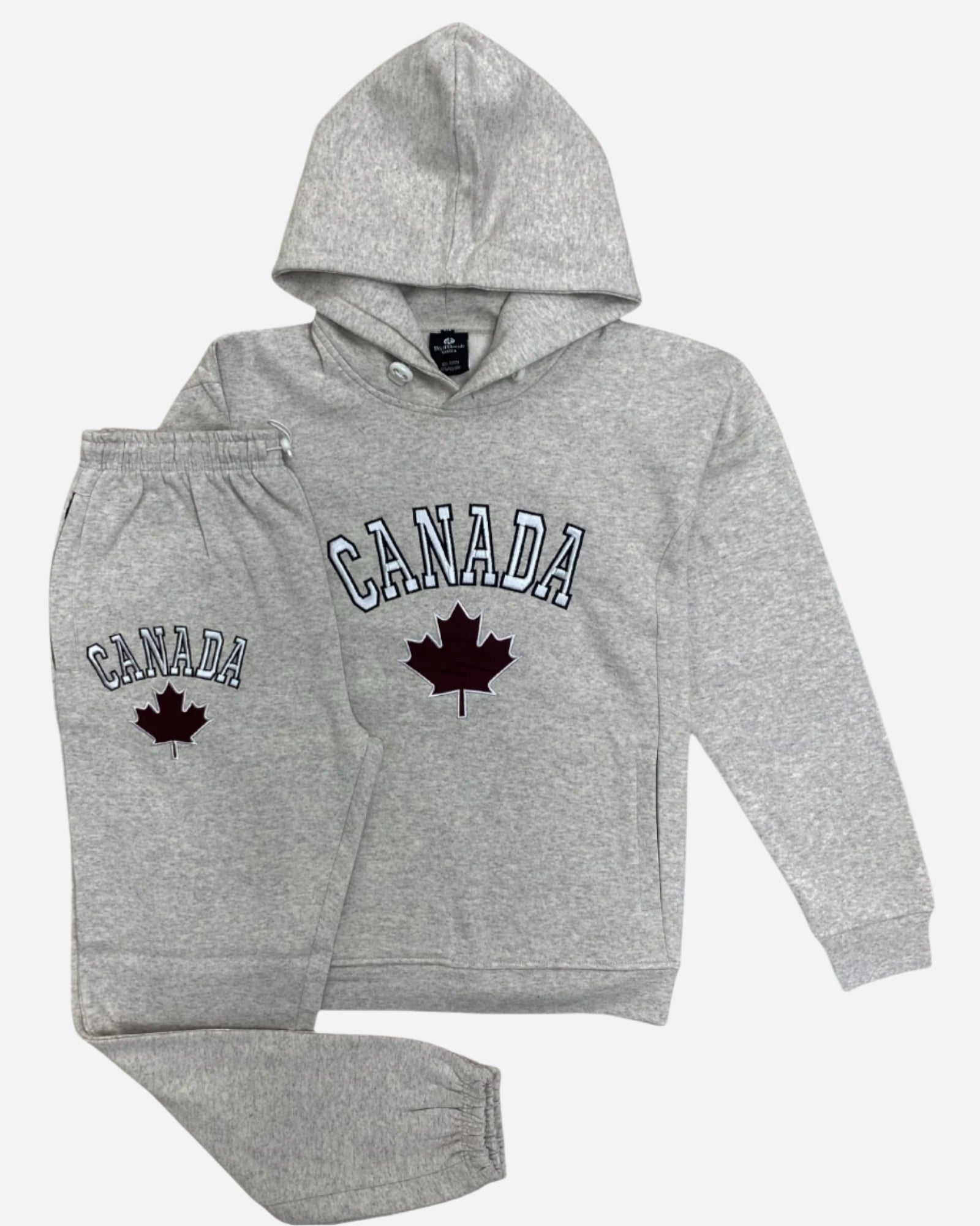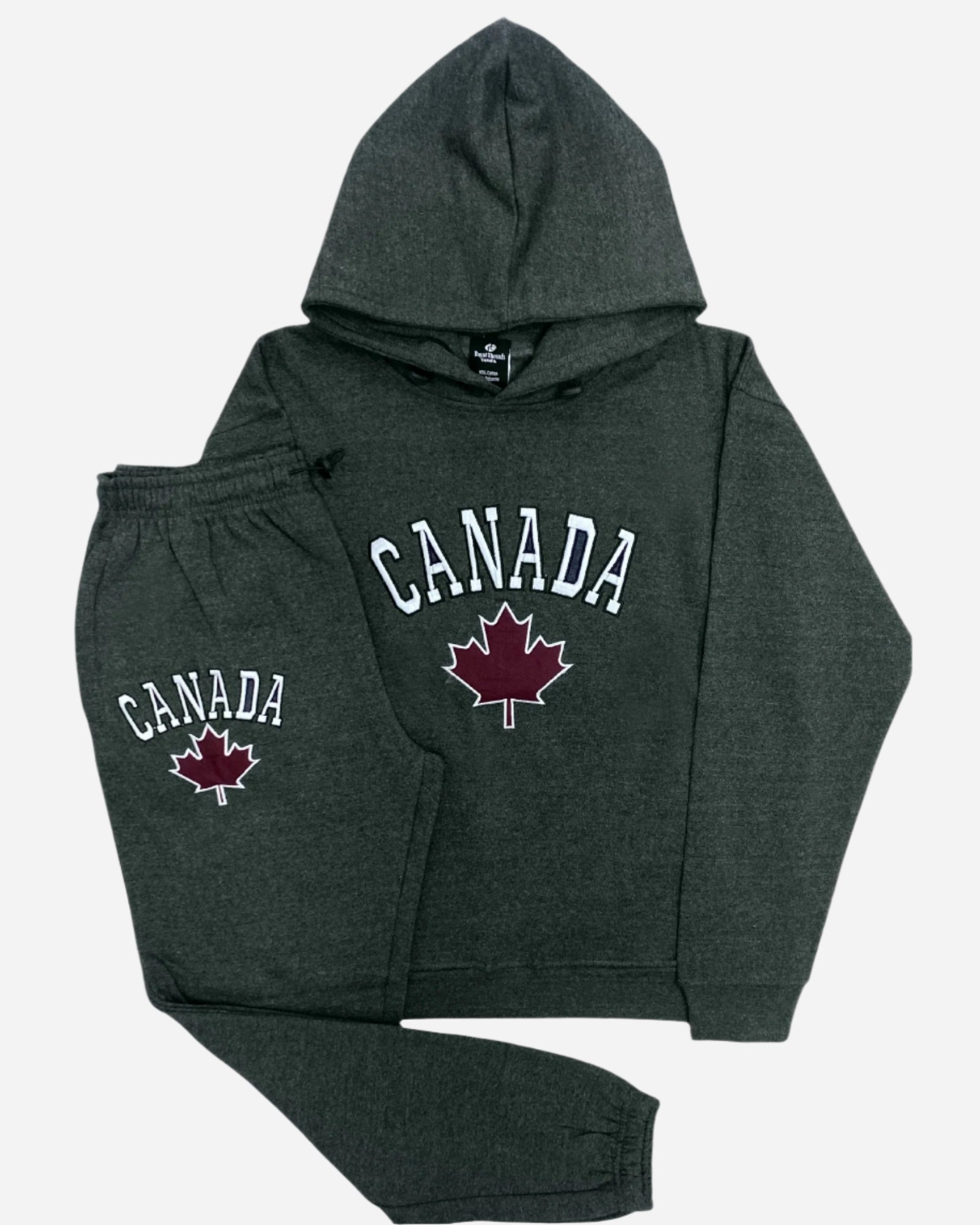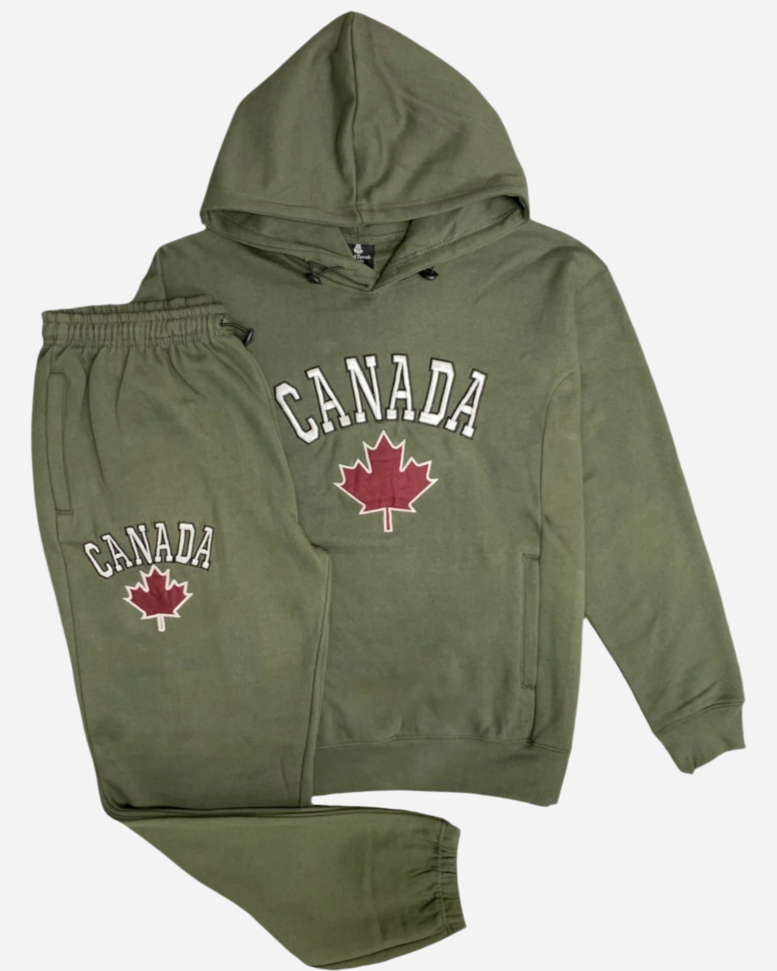 This Classic Pullover Canada Print Sweatsuit is featured in a premium quality fleece material for the winter season. The pullover hoodie and a matching sweatpants compliment current fashion trends in Activewear winter clothes. Fleece hoodie and sweatpants are common for daily casual activates, around the house and even for work.