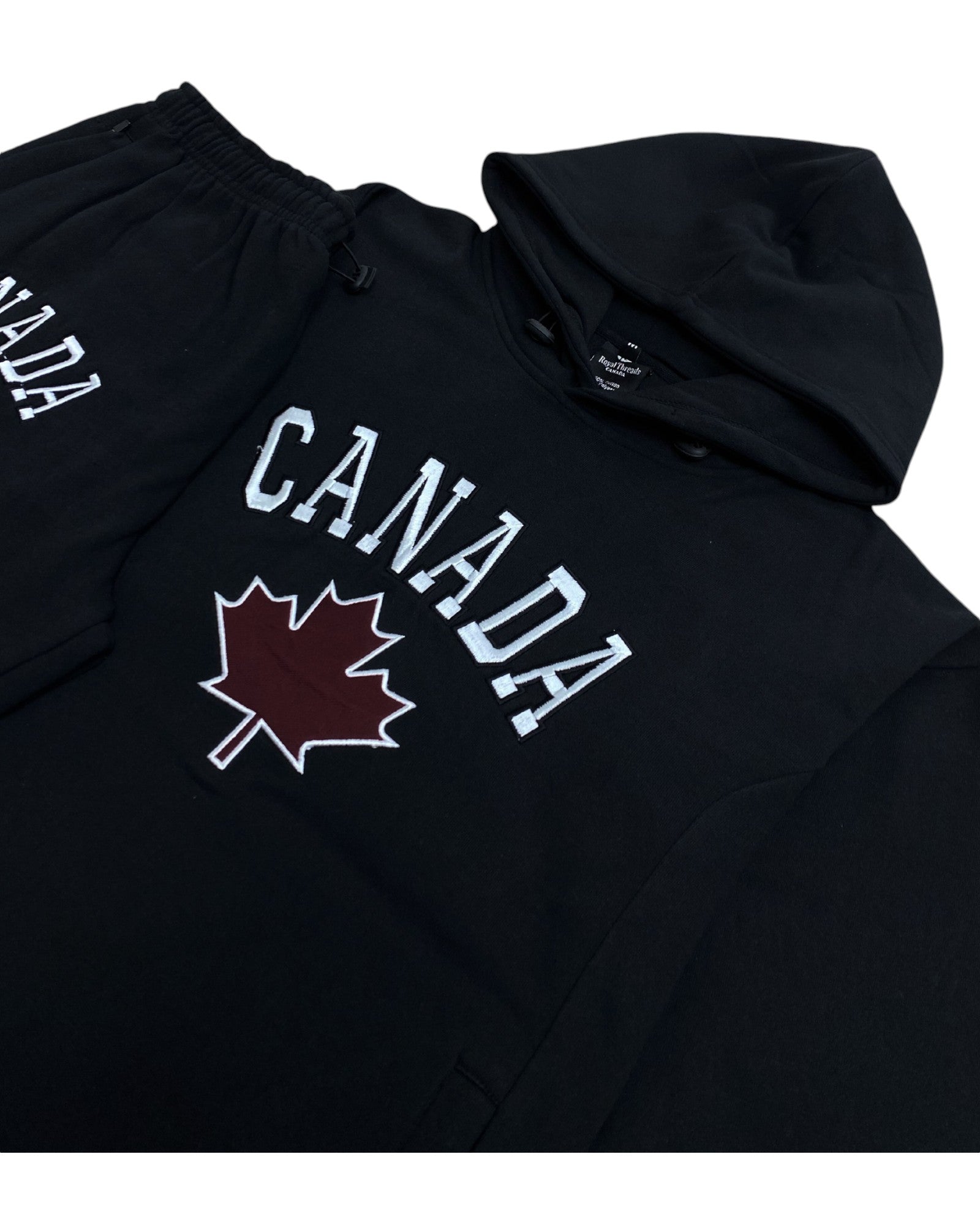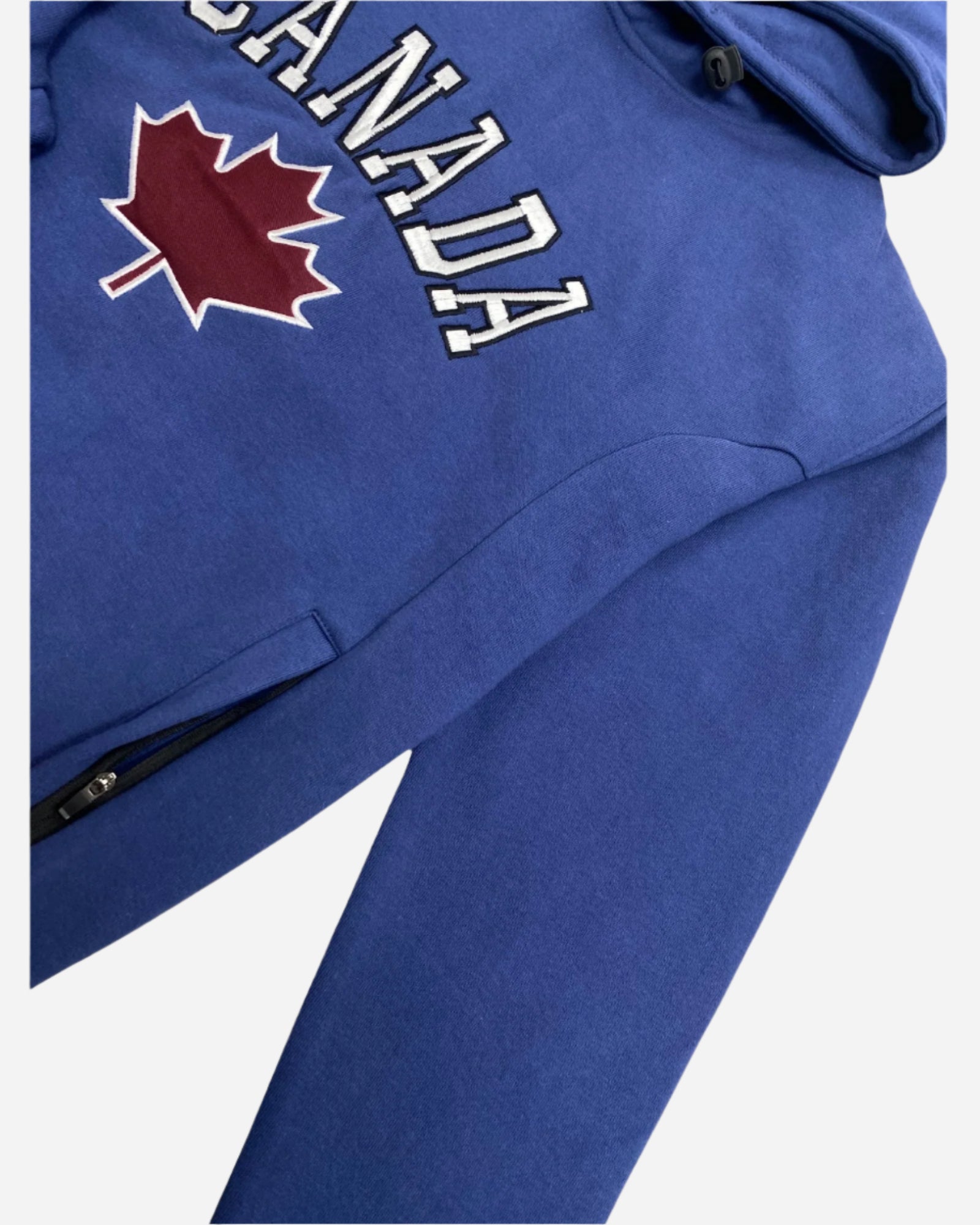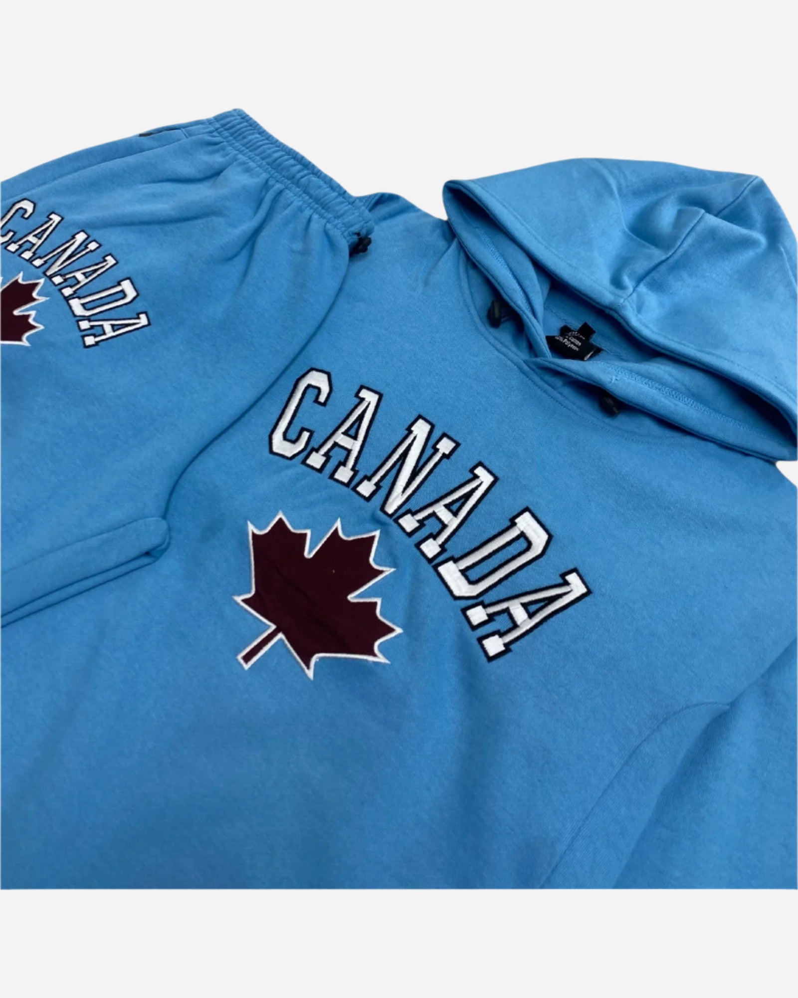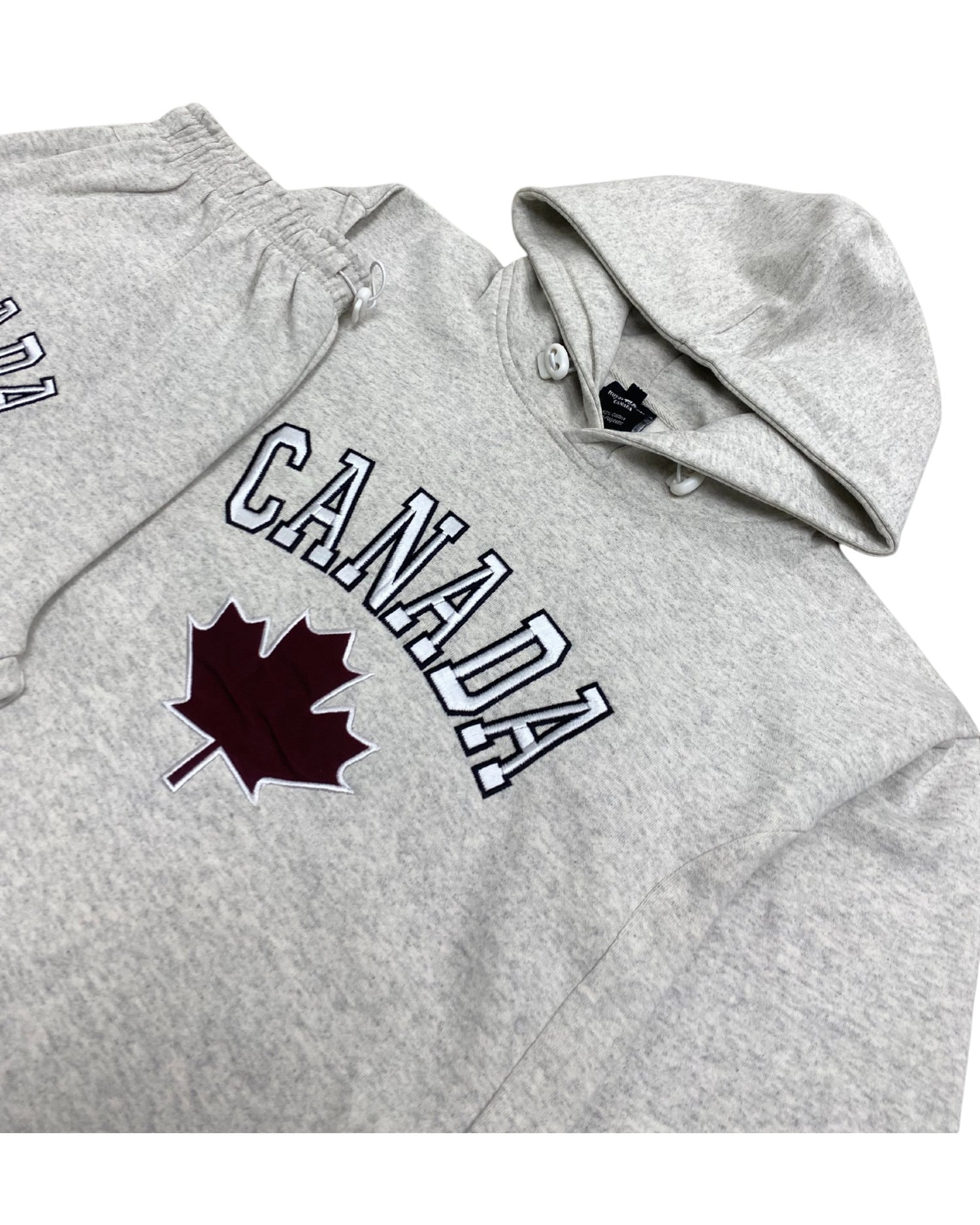 This Classic Pullover Canada Print Sweatsuit is featured in a premium quality fleece material for the winter season. The pullover hoodie and a matching sweatpants compliment current fashion trends in Activewear winter clothes. Fleece hoodie and sweatpants are common for daily casual activates, around the house and even for work.
