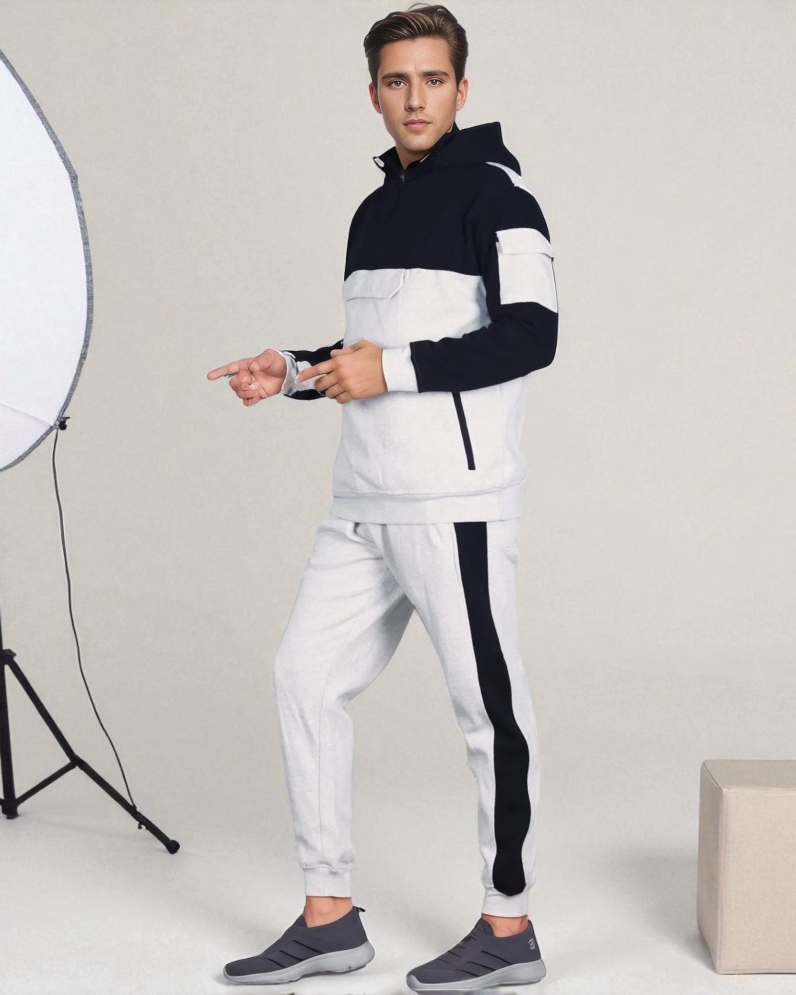 Add a touch of luxury to your casual wear with our men's 2-piece quarter zip hoodie and jogger sweatpants. Made with heavy fleece, this ensemble provides ultimate comfort and warmth. Elevate your style and stay cozy in this premium fleece outfit.