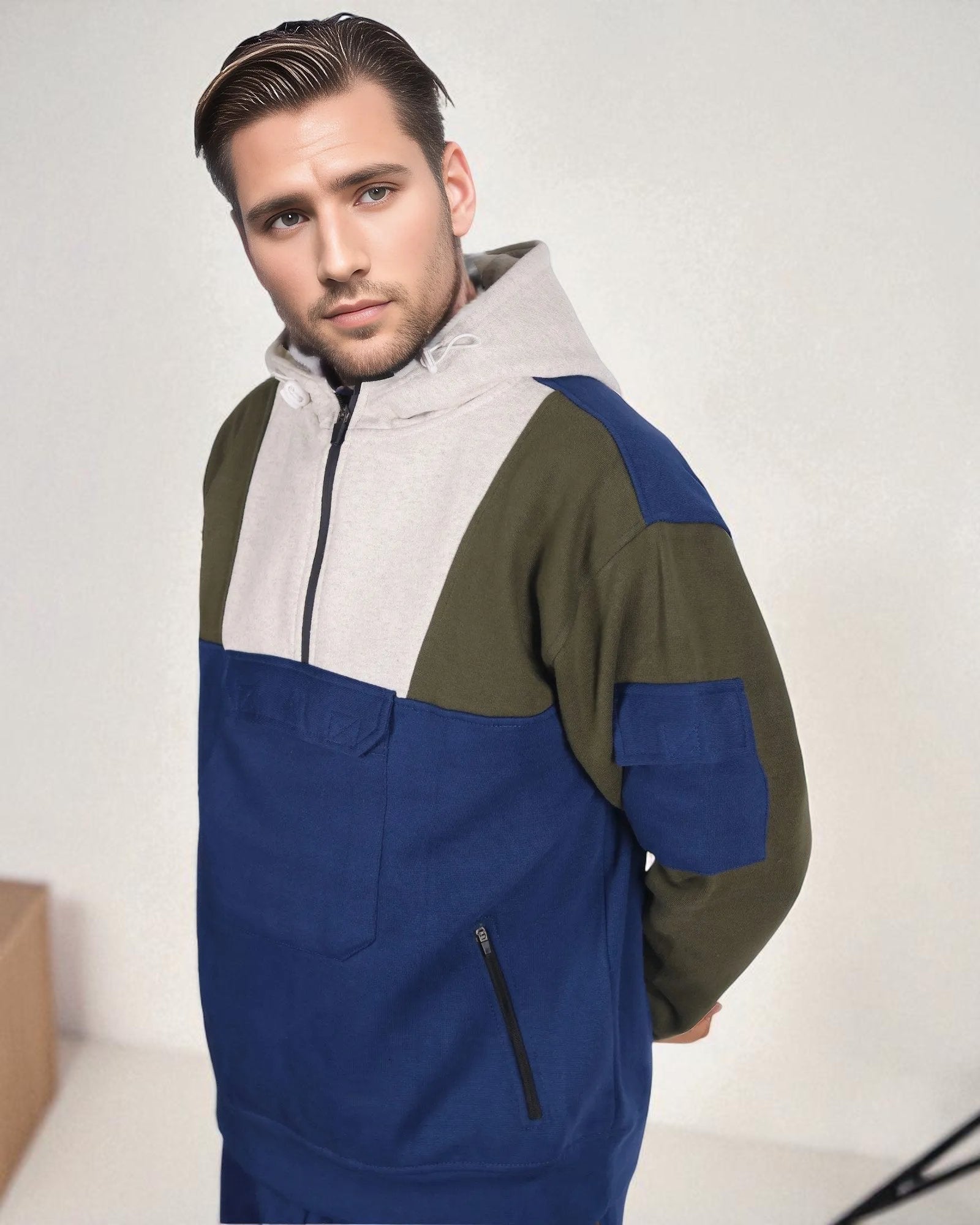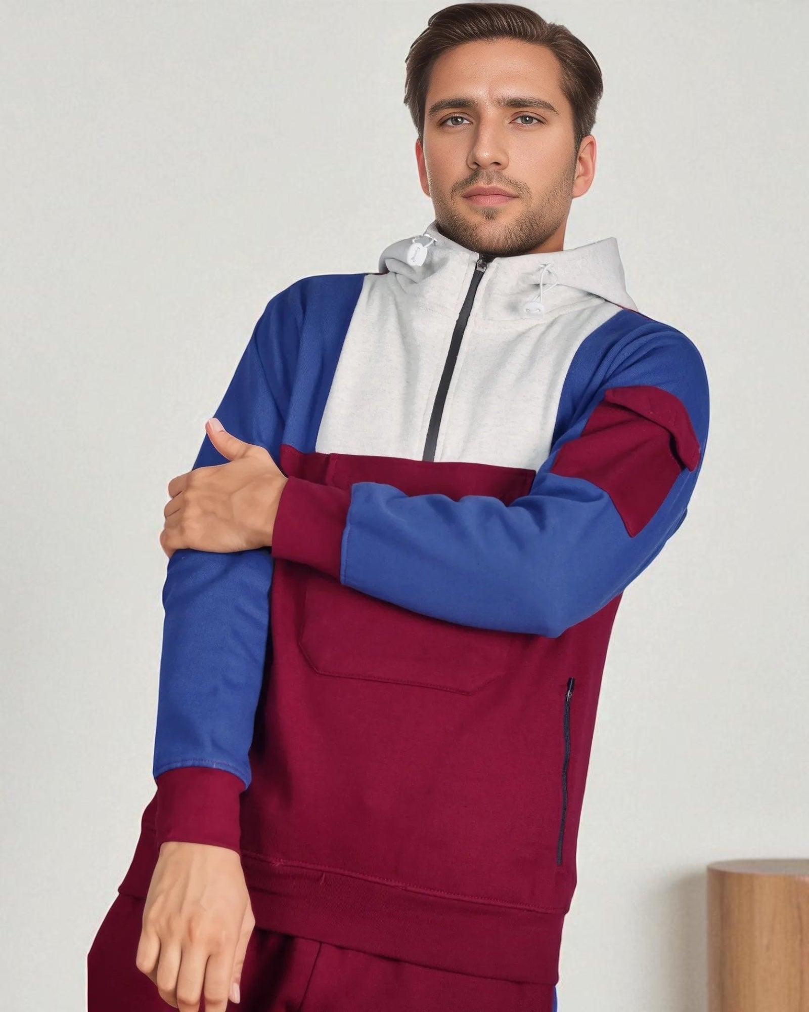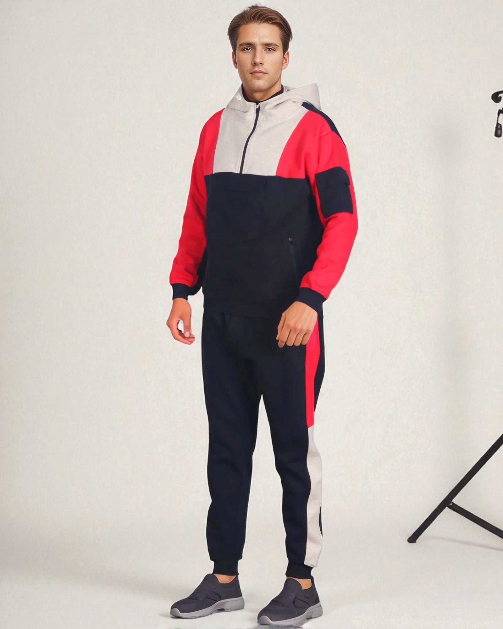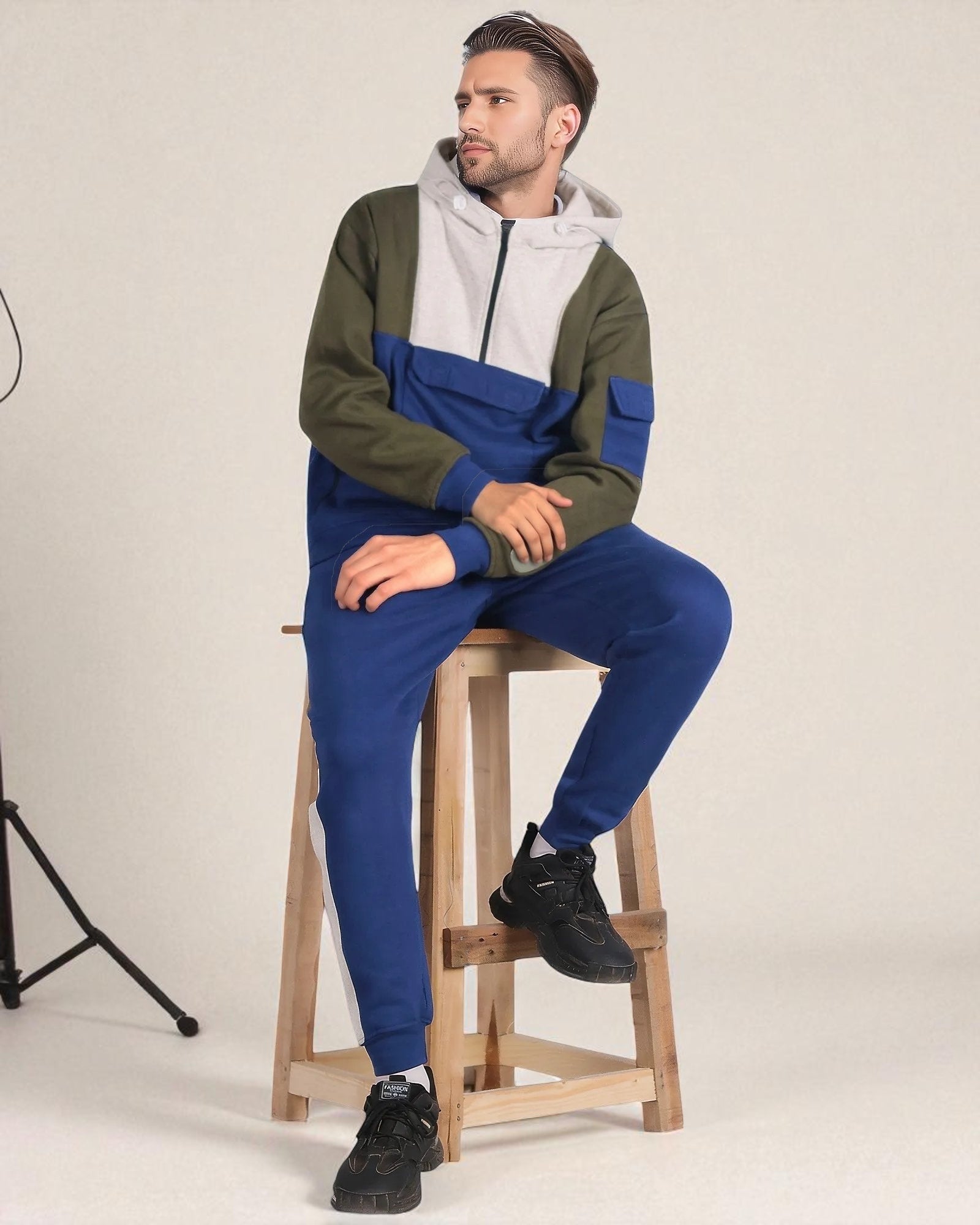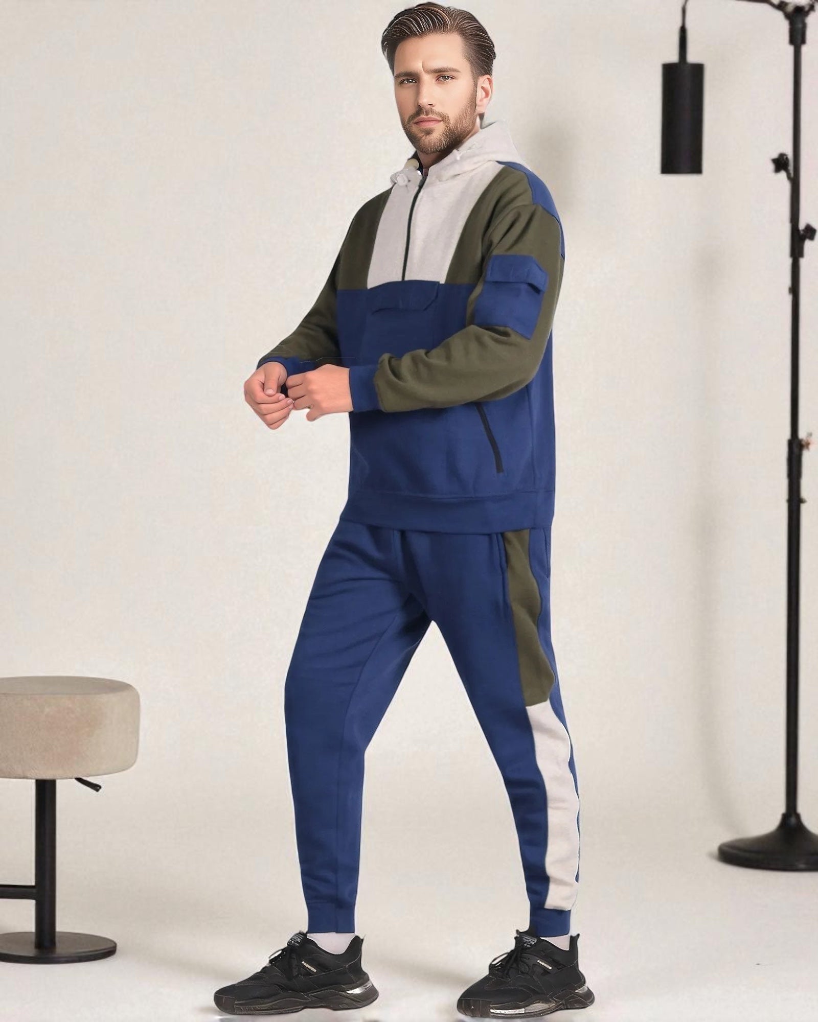 Men's 2-Piece Sweatsuit Quarter Zip Hoodie With Jogger sweatpants Heavy Fleece Outfit