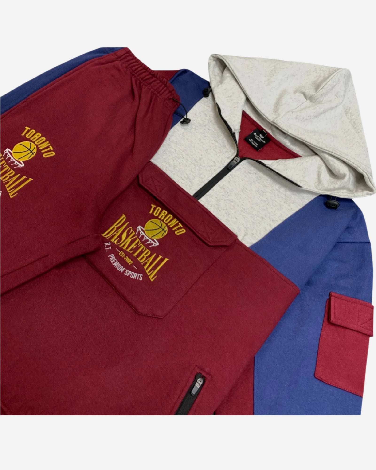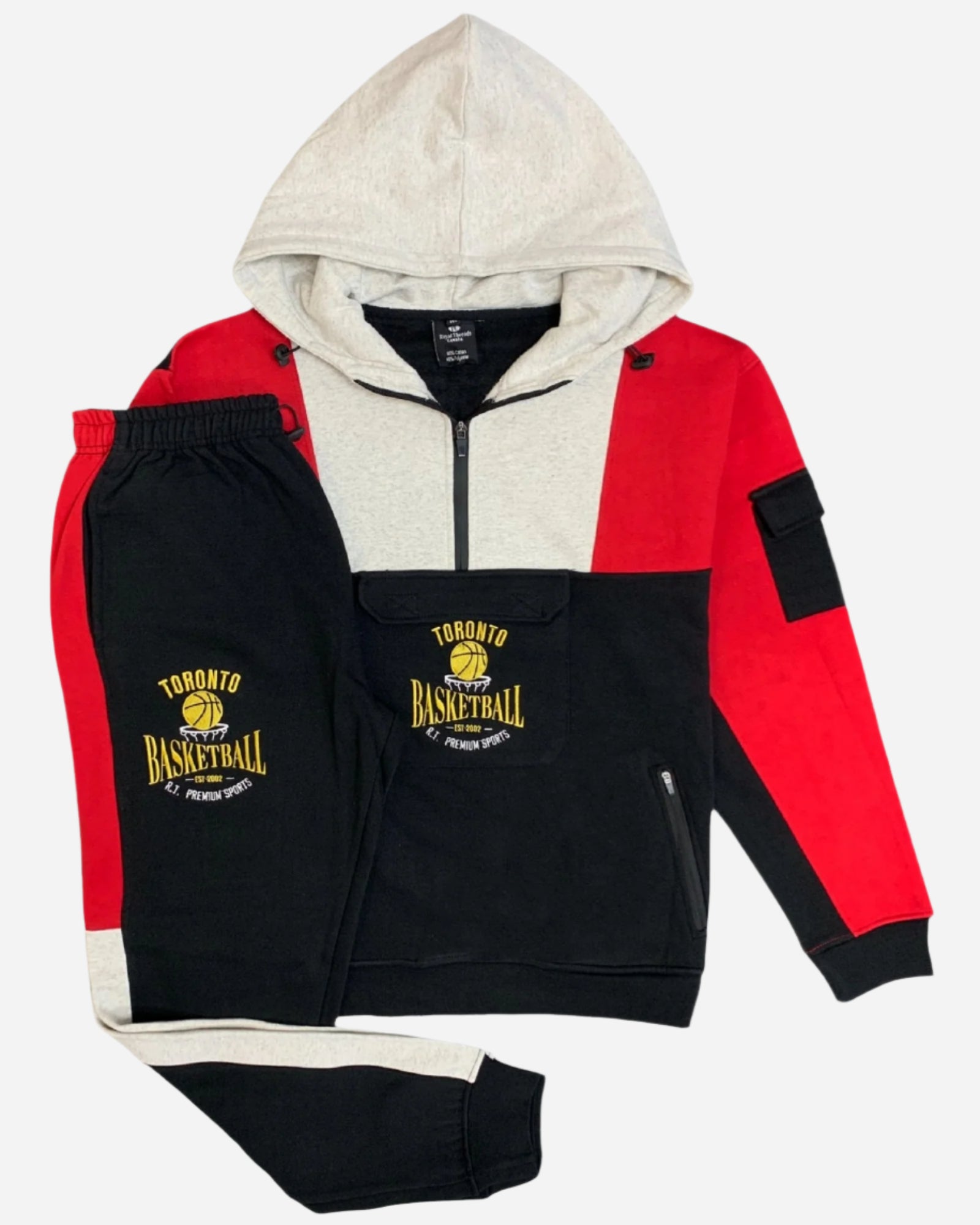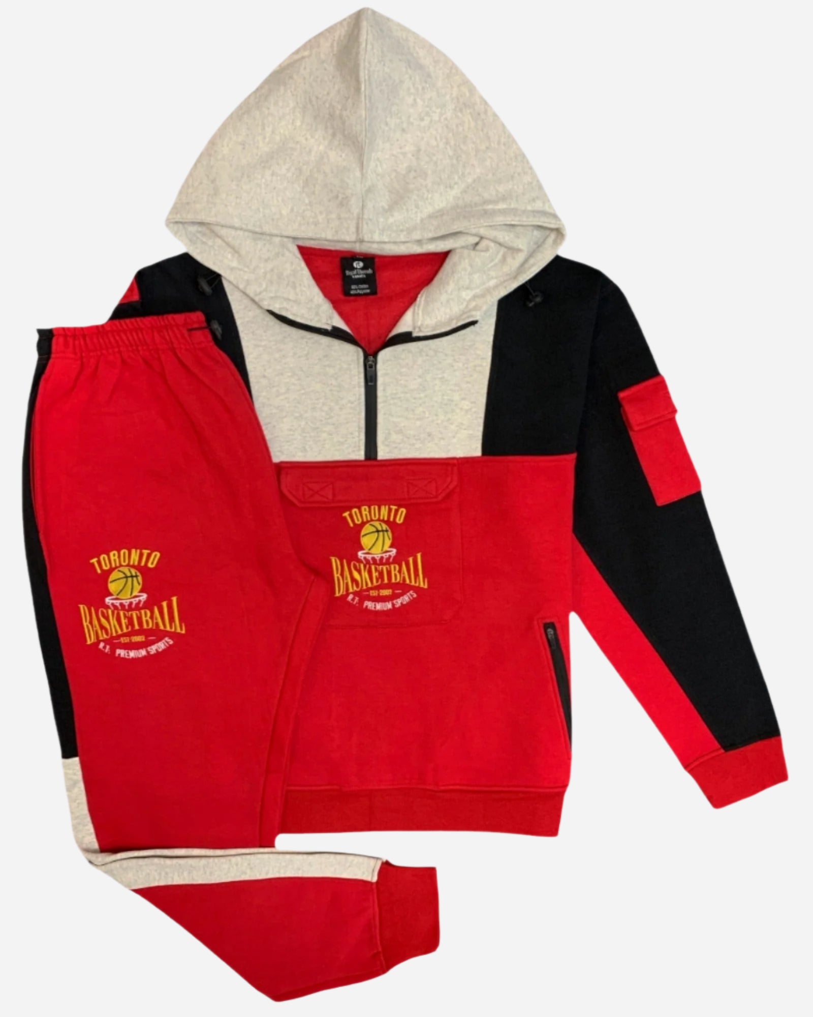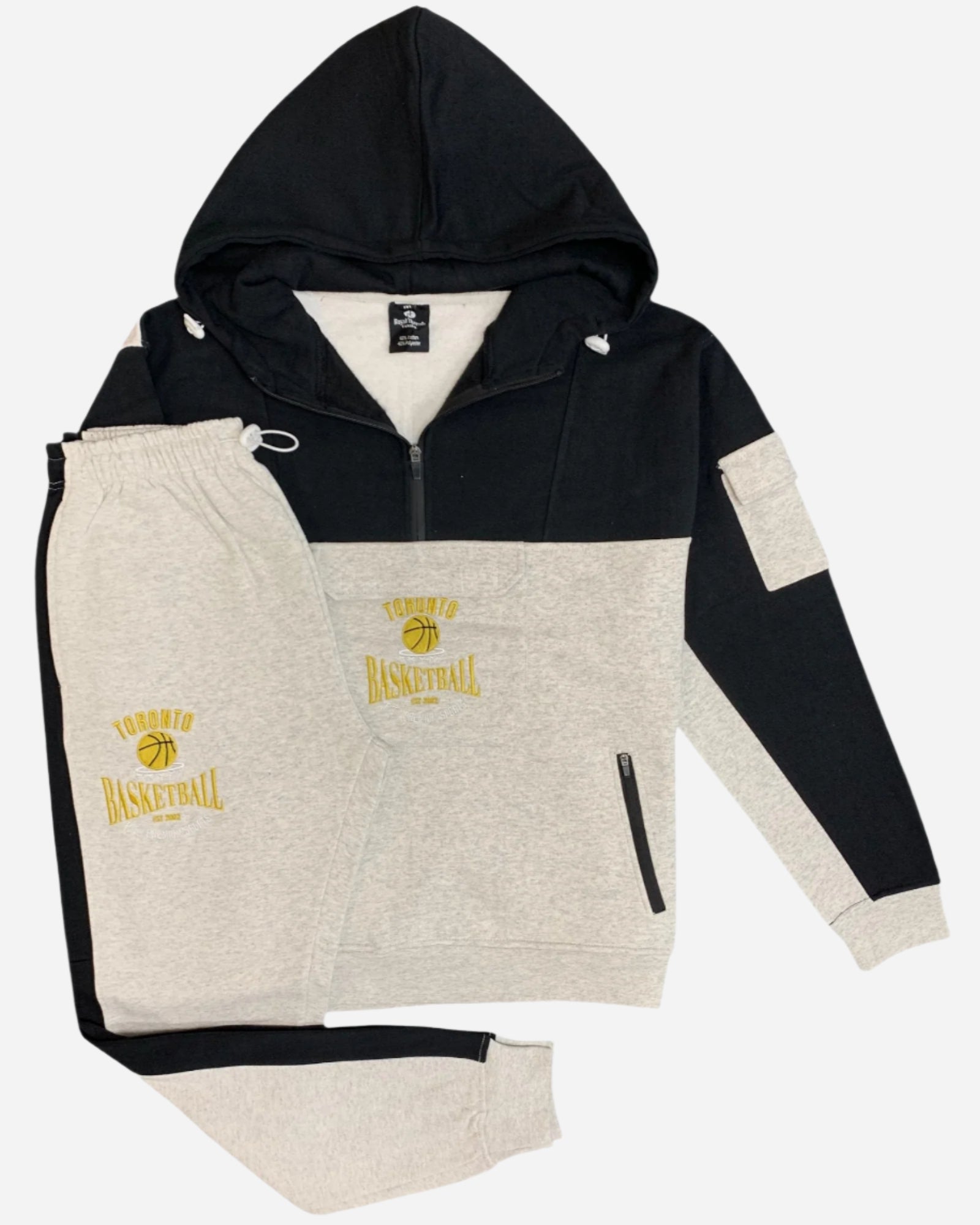Men’s 2-Piece Sweatsuit Quarter Zip basketball Theme Hoodie and sweatpants Heavy Duty Winter Fleece Outfit