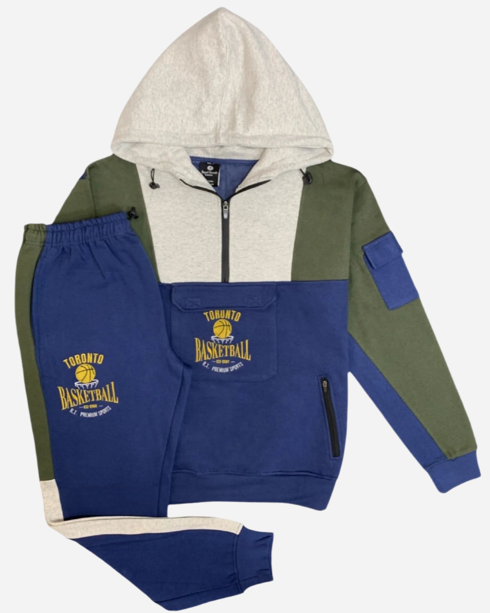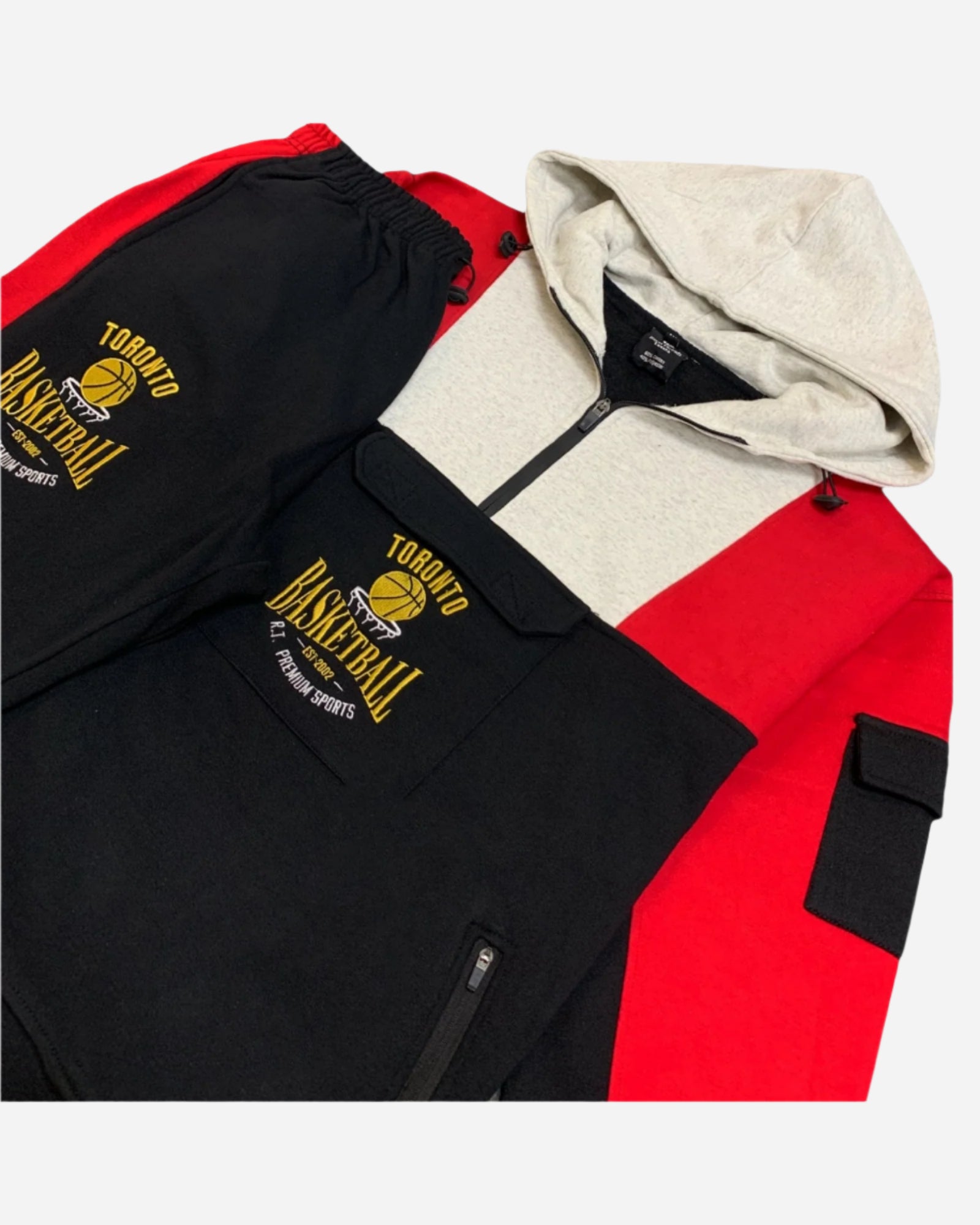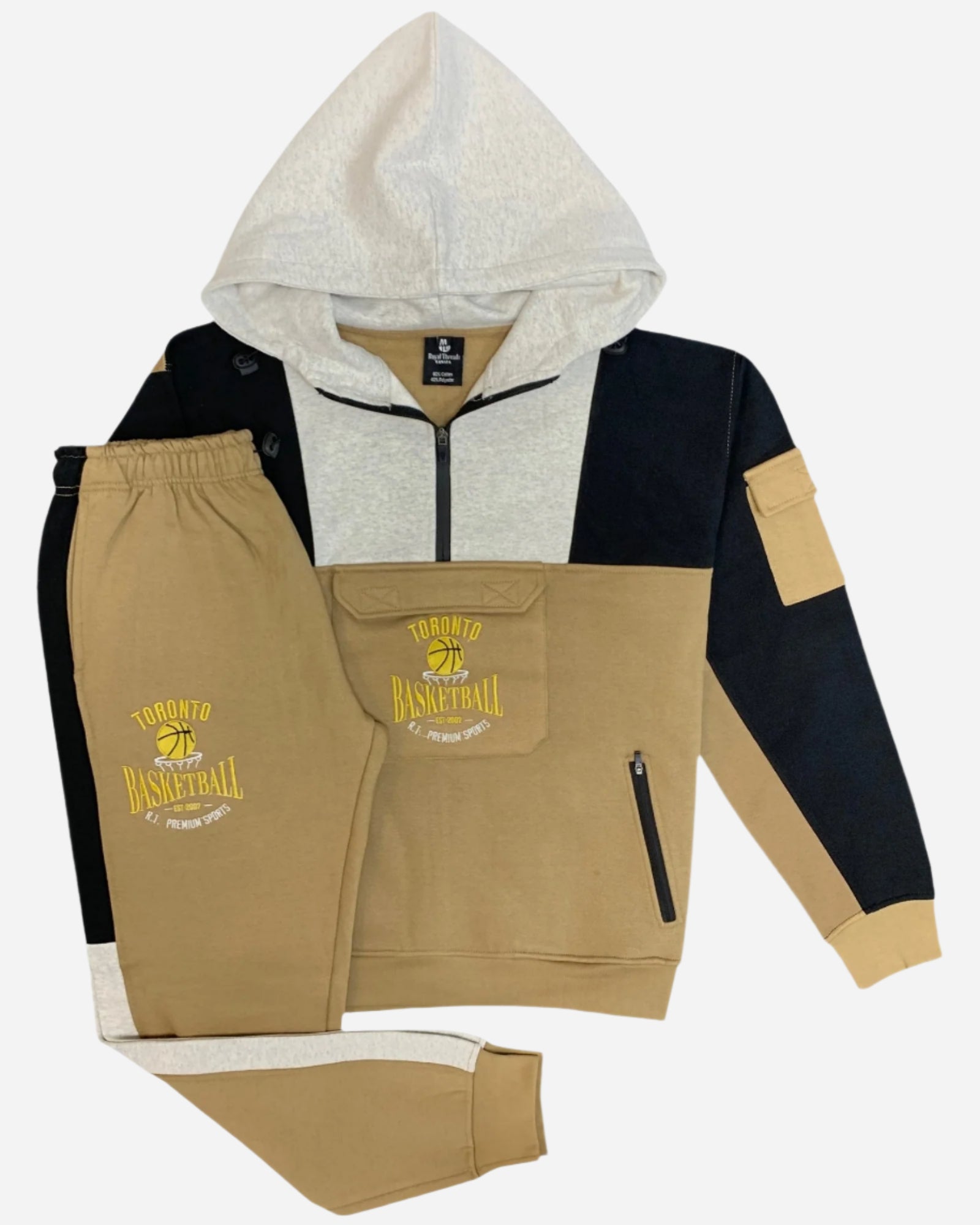 Men’s 2-Piece Sweatsuit Quarter Zip basketball Theme Hoodie and sweatpants Heavy Duty Winter Fleece Outfit