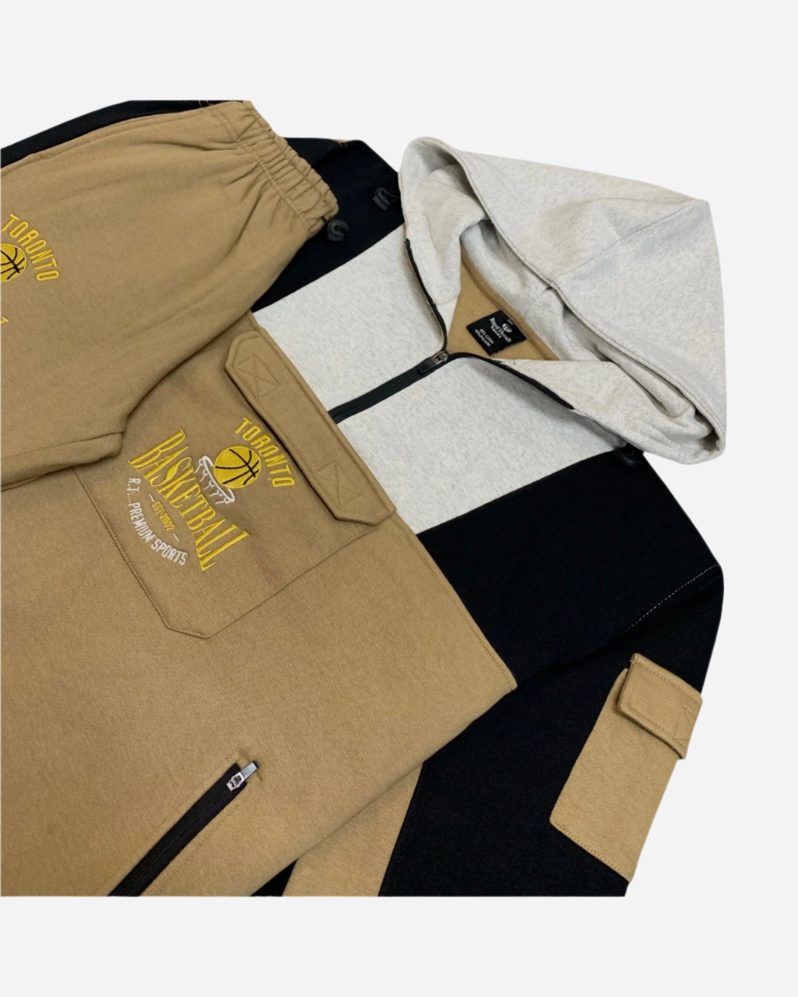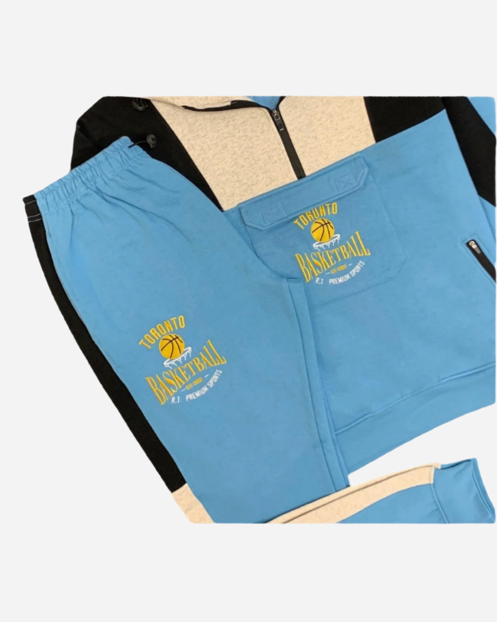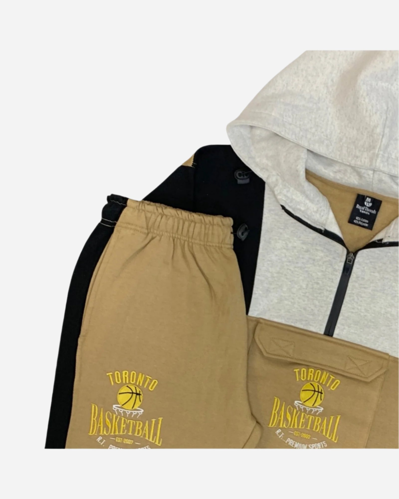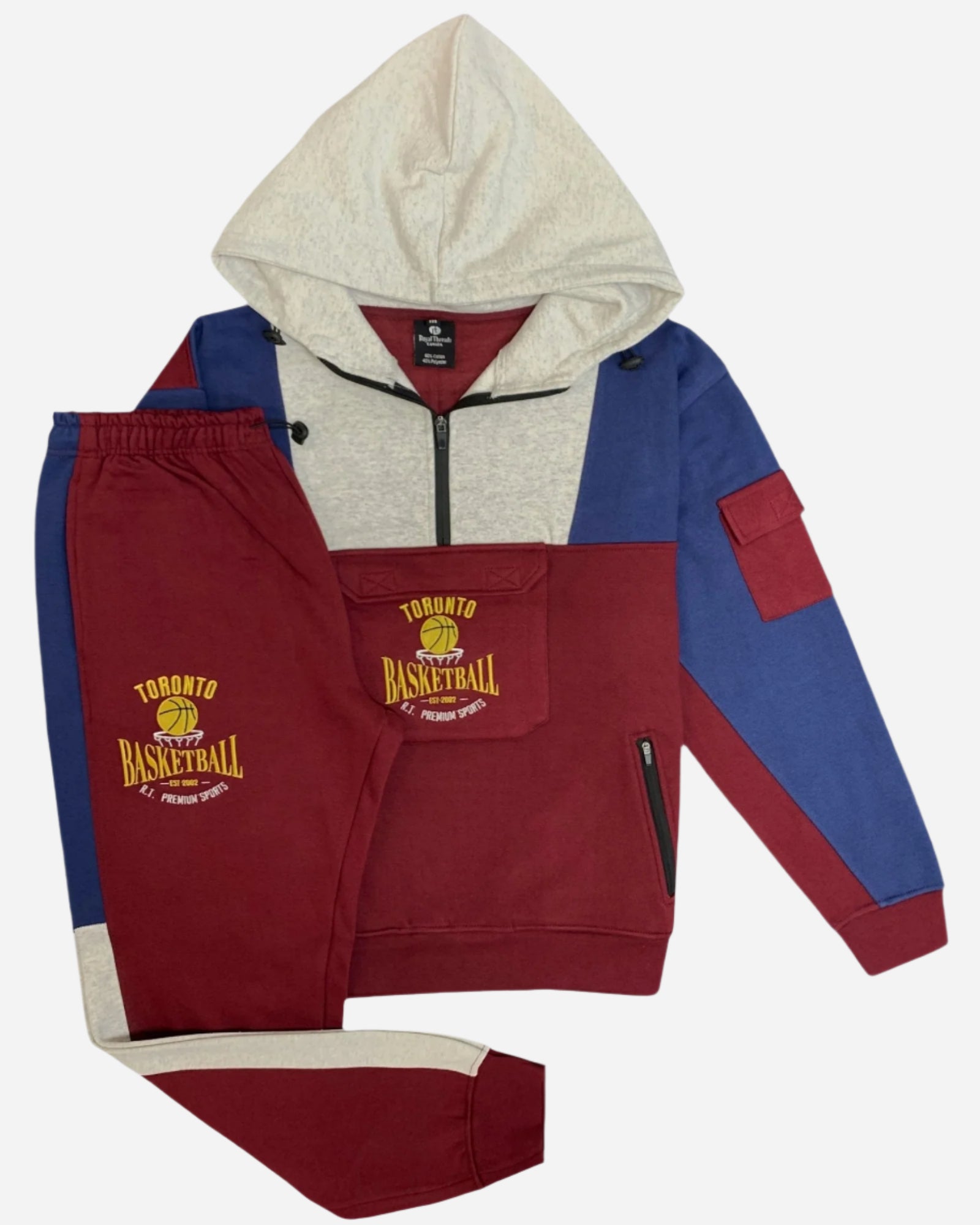 Men’s 2-Piece Sweatsuit Quarter Zip basketball Theme Hoodie and sweatpants Heavy Duty Winter Fleece Outfit