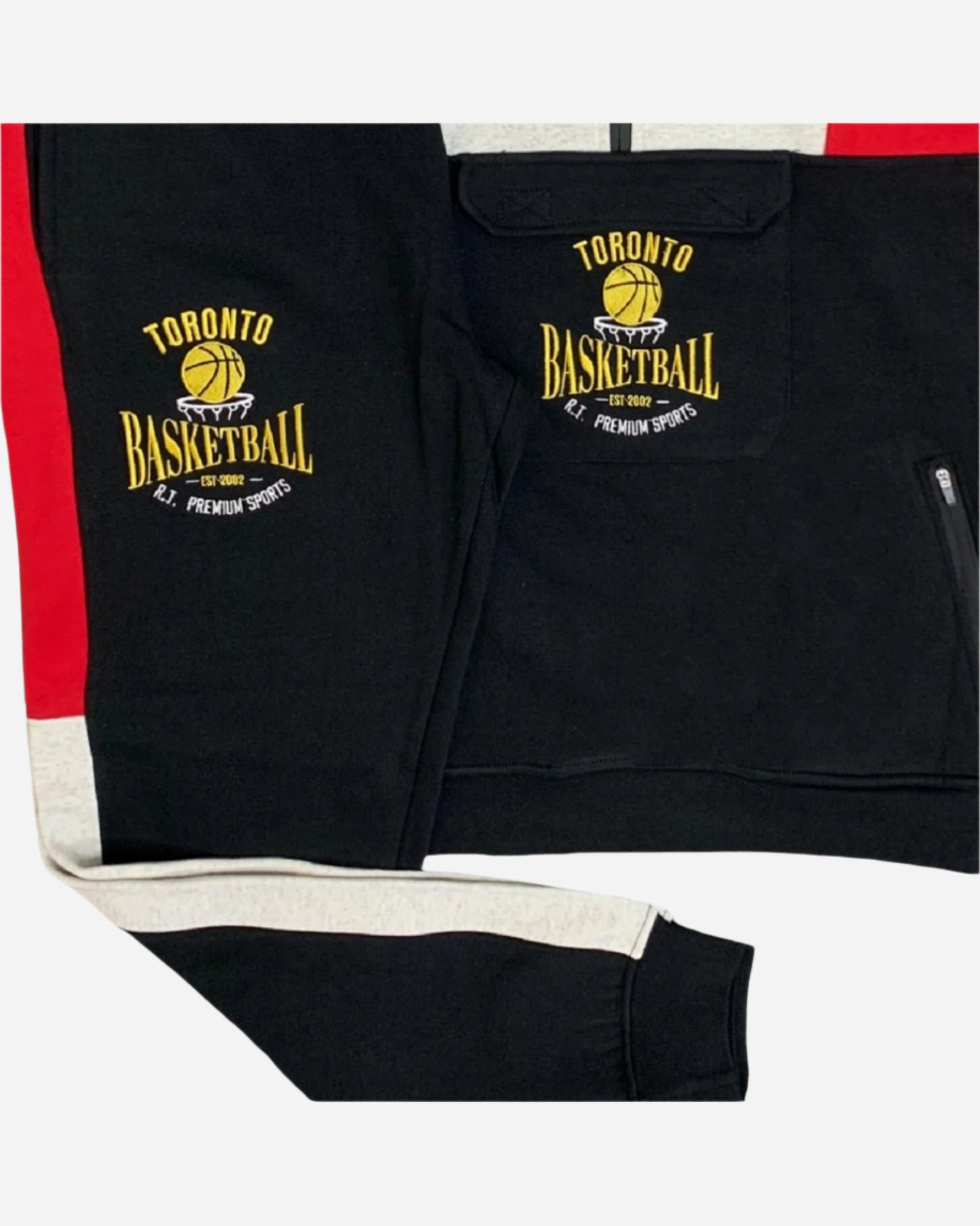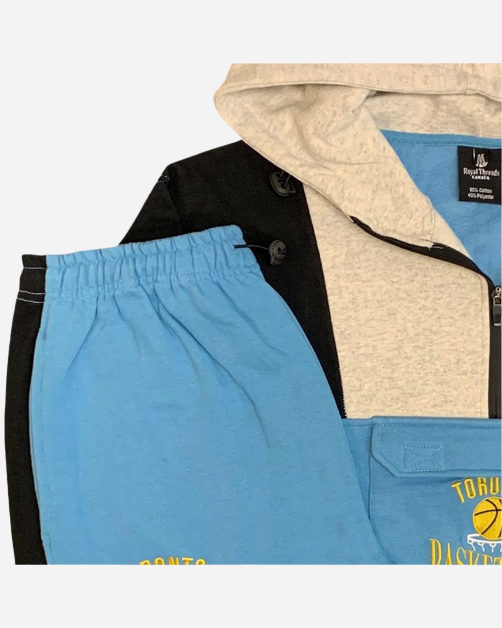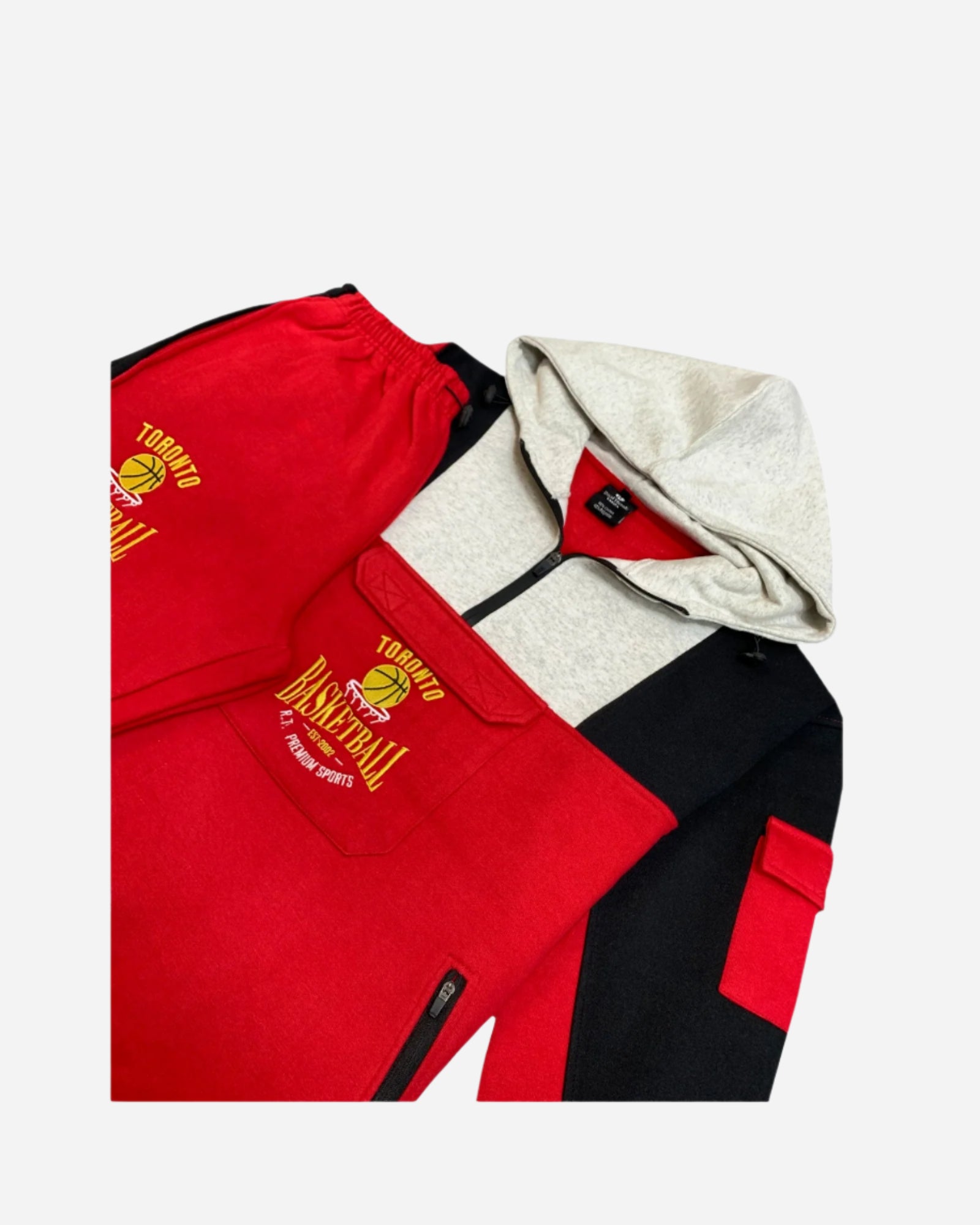 Expertly designed for basketball players, this men's quarter zip sweatshirt and sweatpants set provides warmth and comfort during the cold winter months. With a heavy duty fleece material and a stylish basketball theme, this 2-piece outfit is perfect for staying cozy and looking cool on and off the court. Dominate the game and the style game with this winter essential.