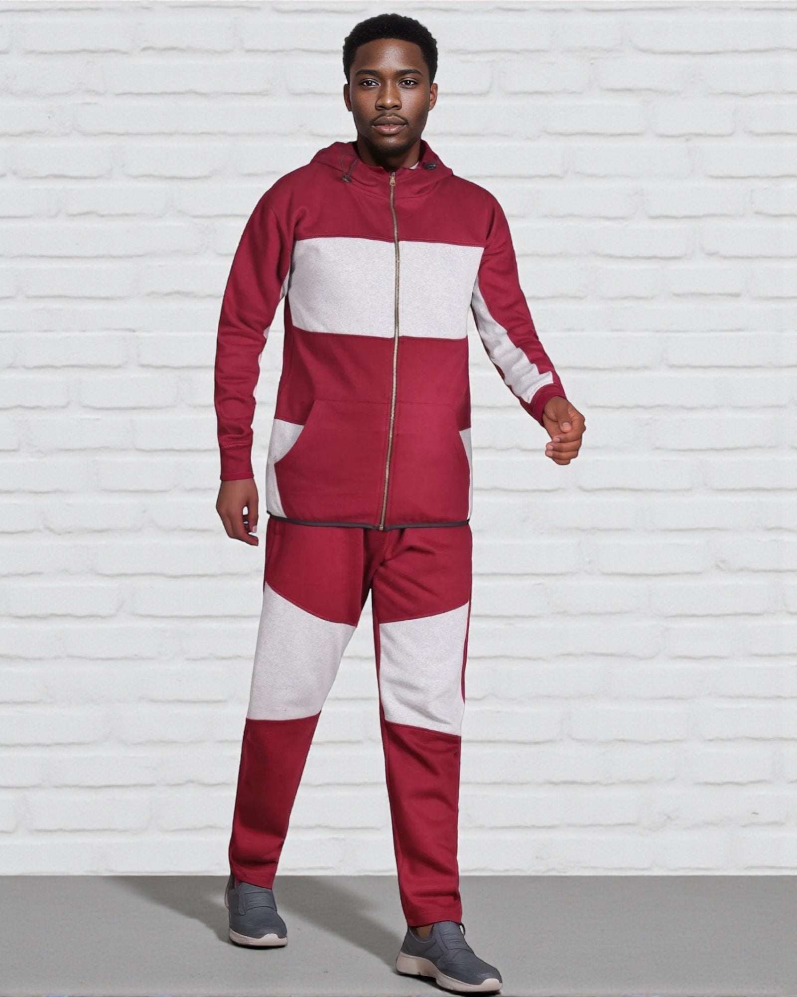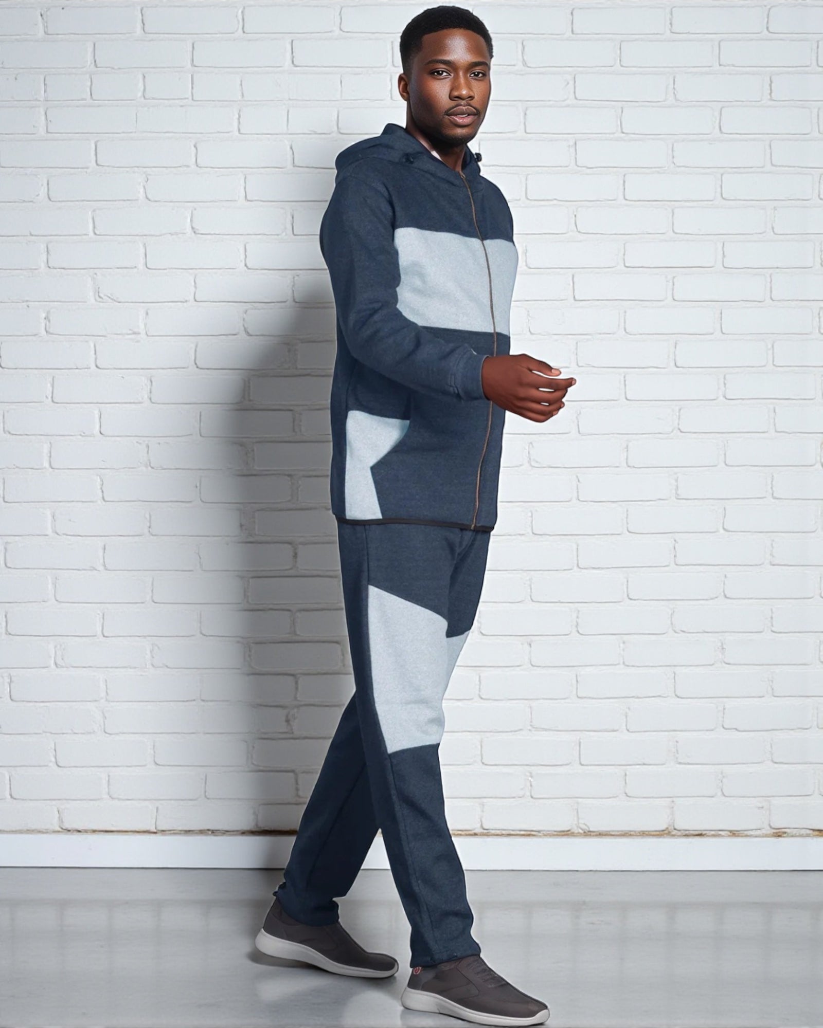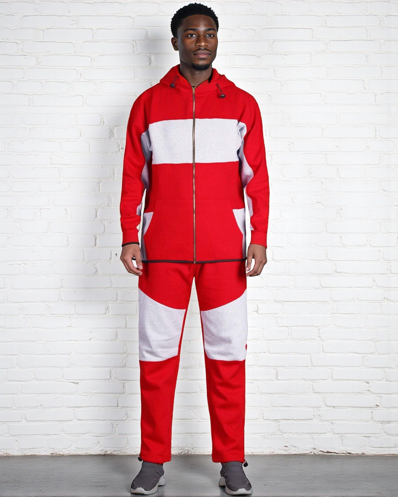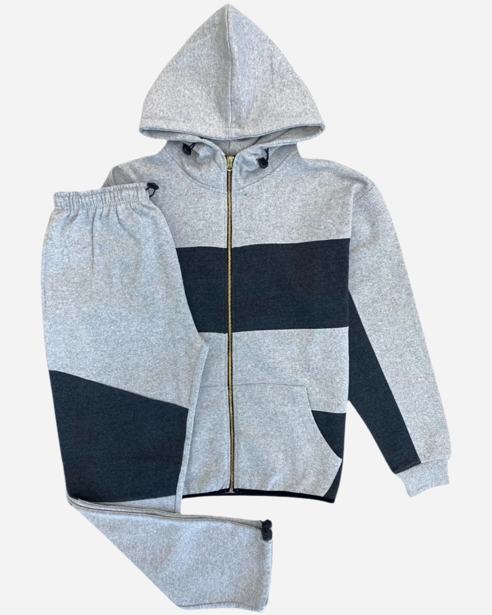 This renounced fashion hoodie fleece suit is inspired from current fashion trends in jogging suit outfits. The matching top and bottom Fleece suit is featured in a premium quality fleece material to last many winter seasons. 2-piece Sweat suits are a common part of the winter wardrobe. This sweat jacket and fleece sweatpants outfit is an ideal outfit for casual weekend activities, casual work wear and much more