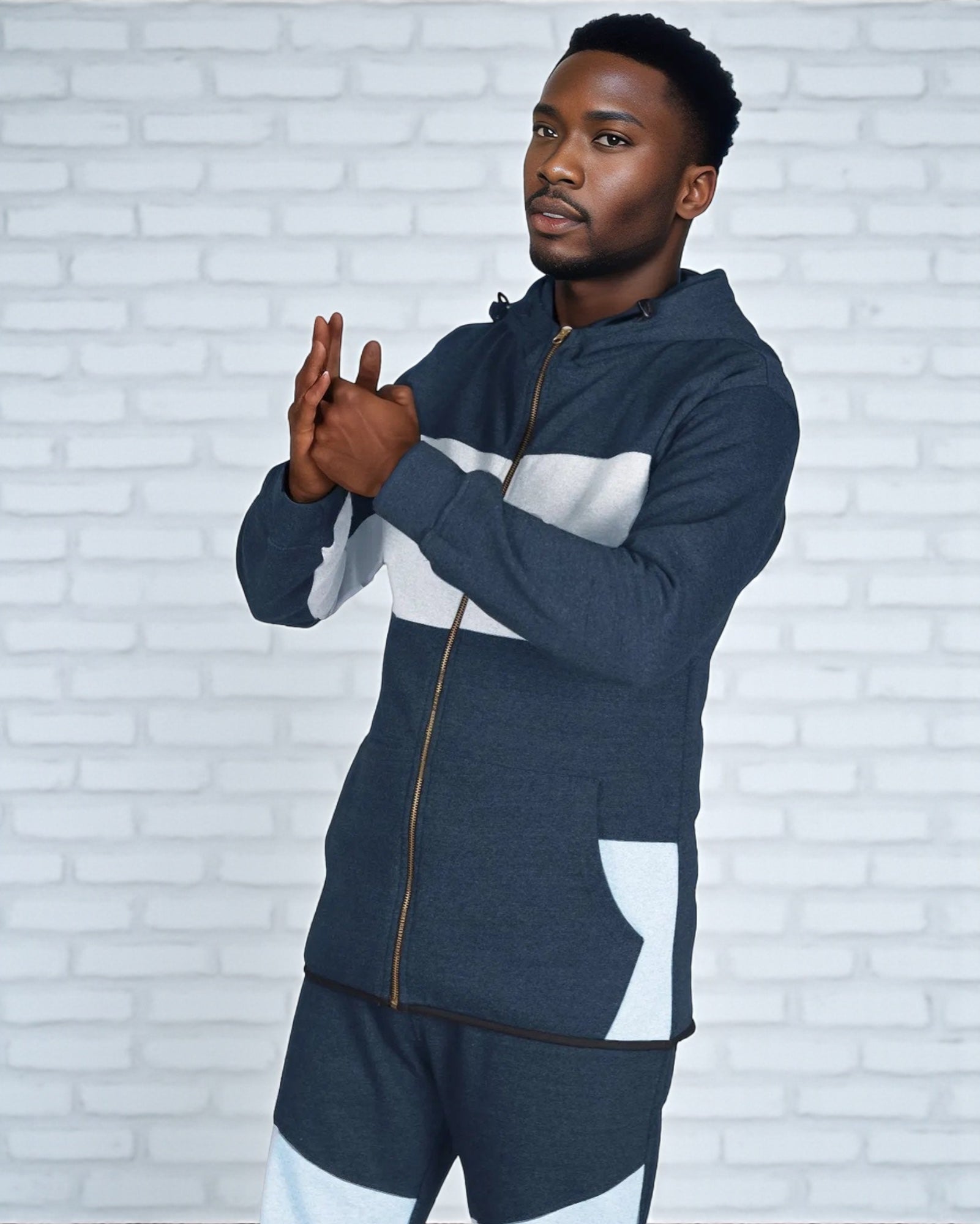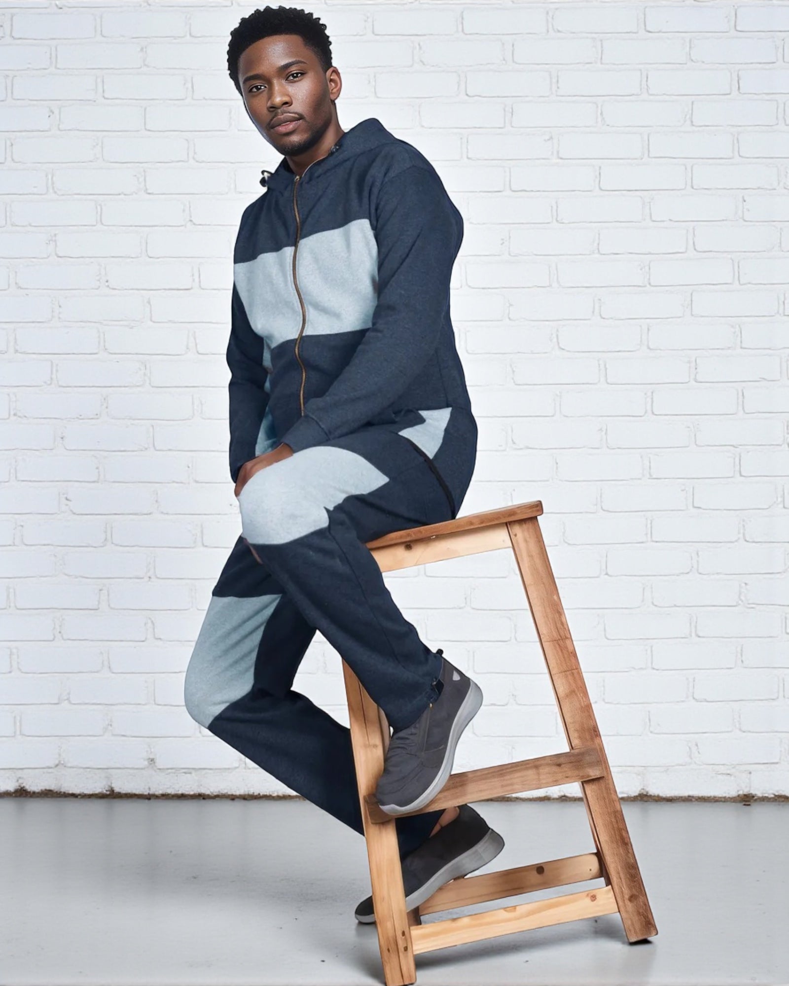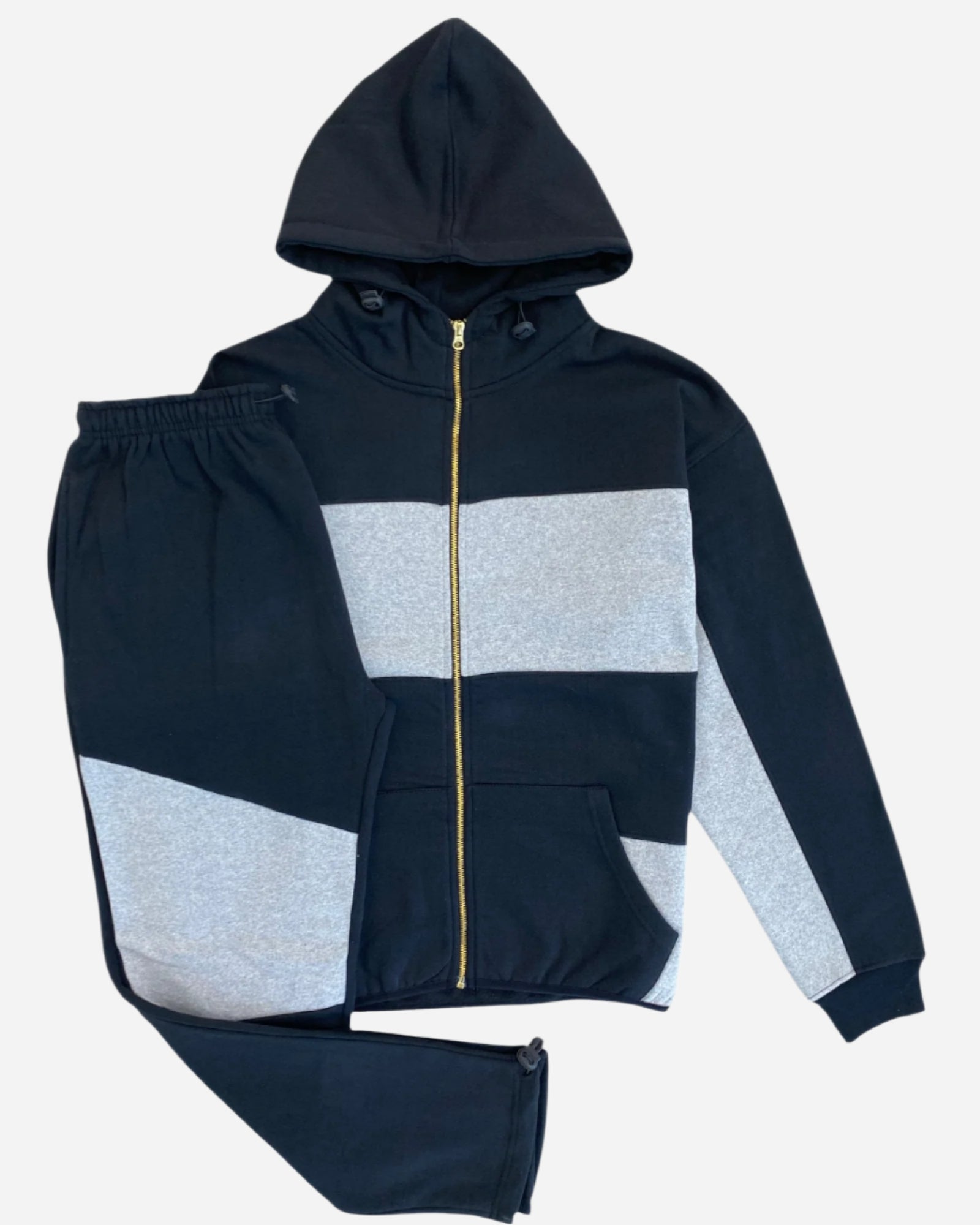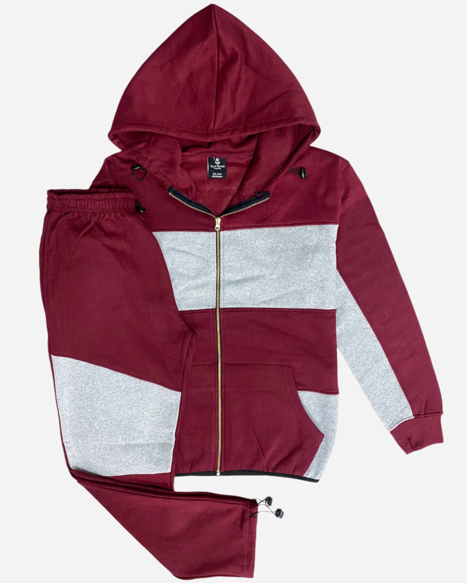This renounced fashion hoodie fleece suit is inspired from current fashion trends in jogging suit outfits. The matching top and bottom Fleece suit is featured in a premium quality fleece material to last many winter seasons. 2-piece Sweat suits are a common part of the winter wardrobe. This sweat jacket and fleece sweatpants outfit is an ideal outfit for casual weekend activities, casual work wear and much more