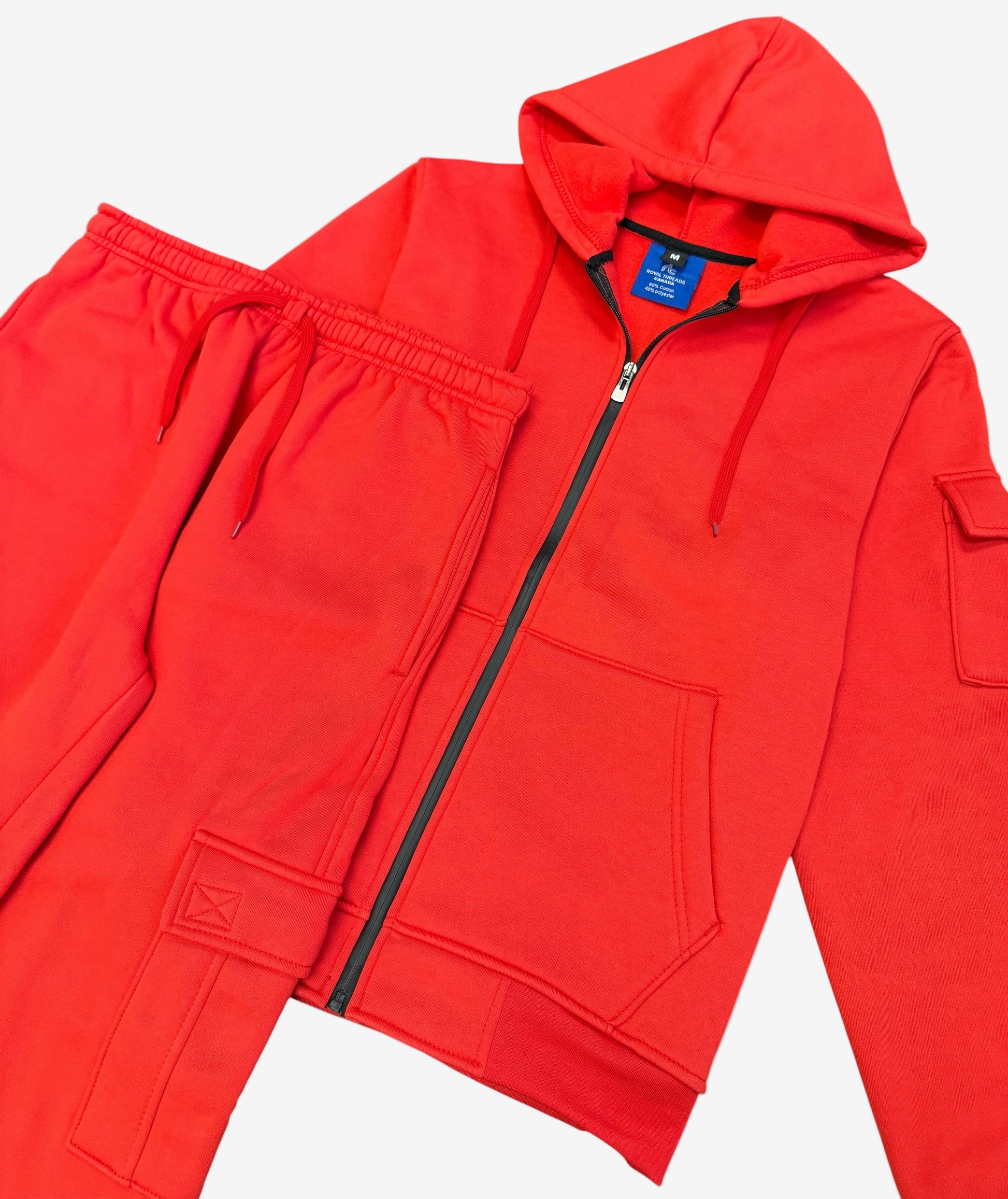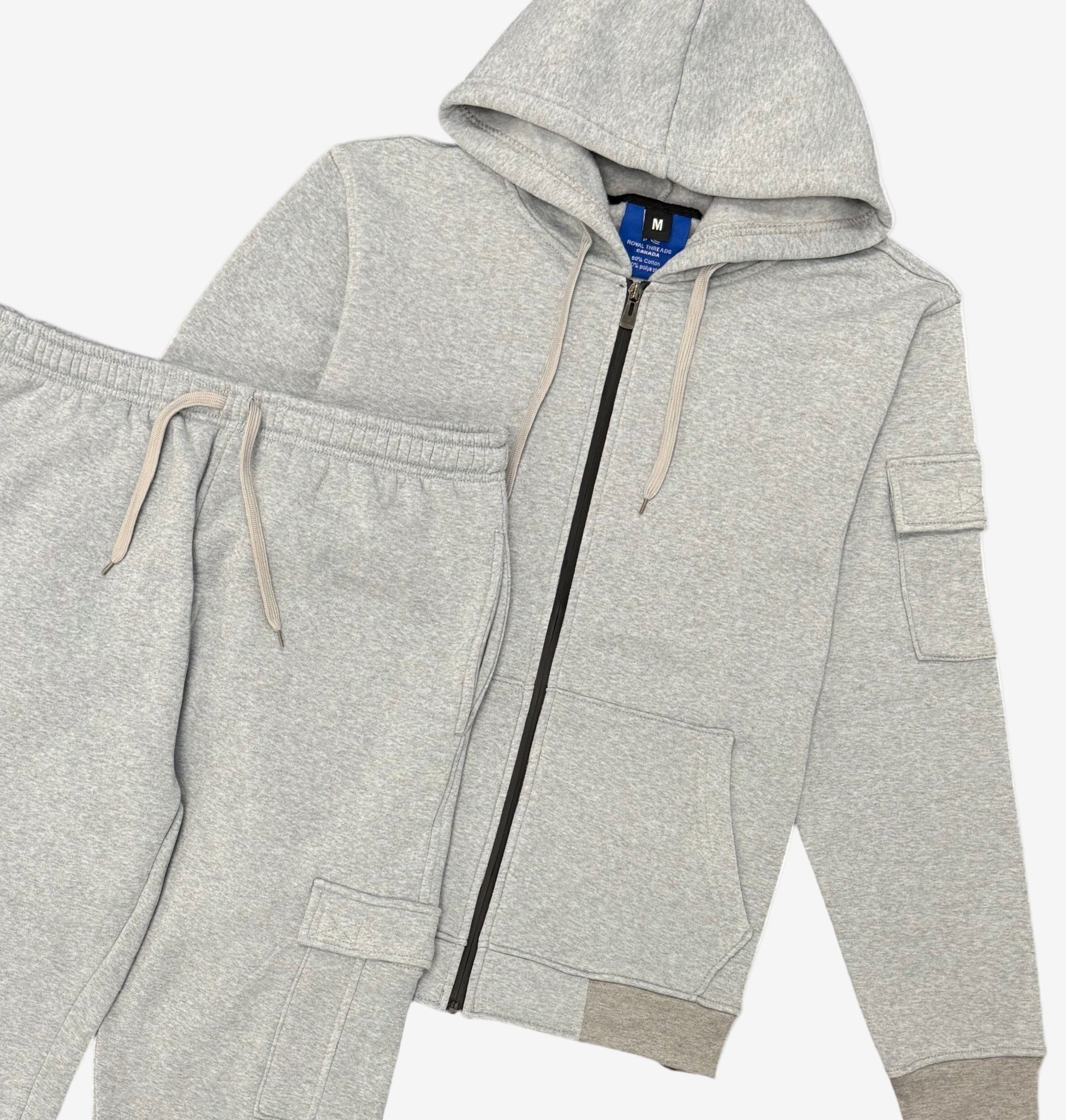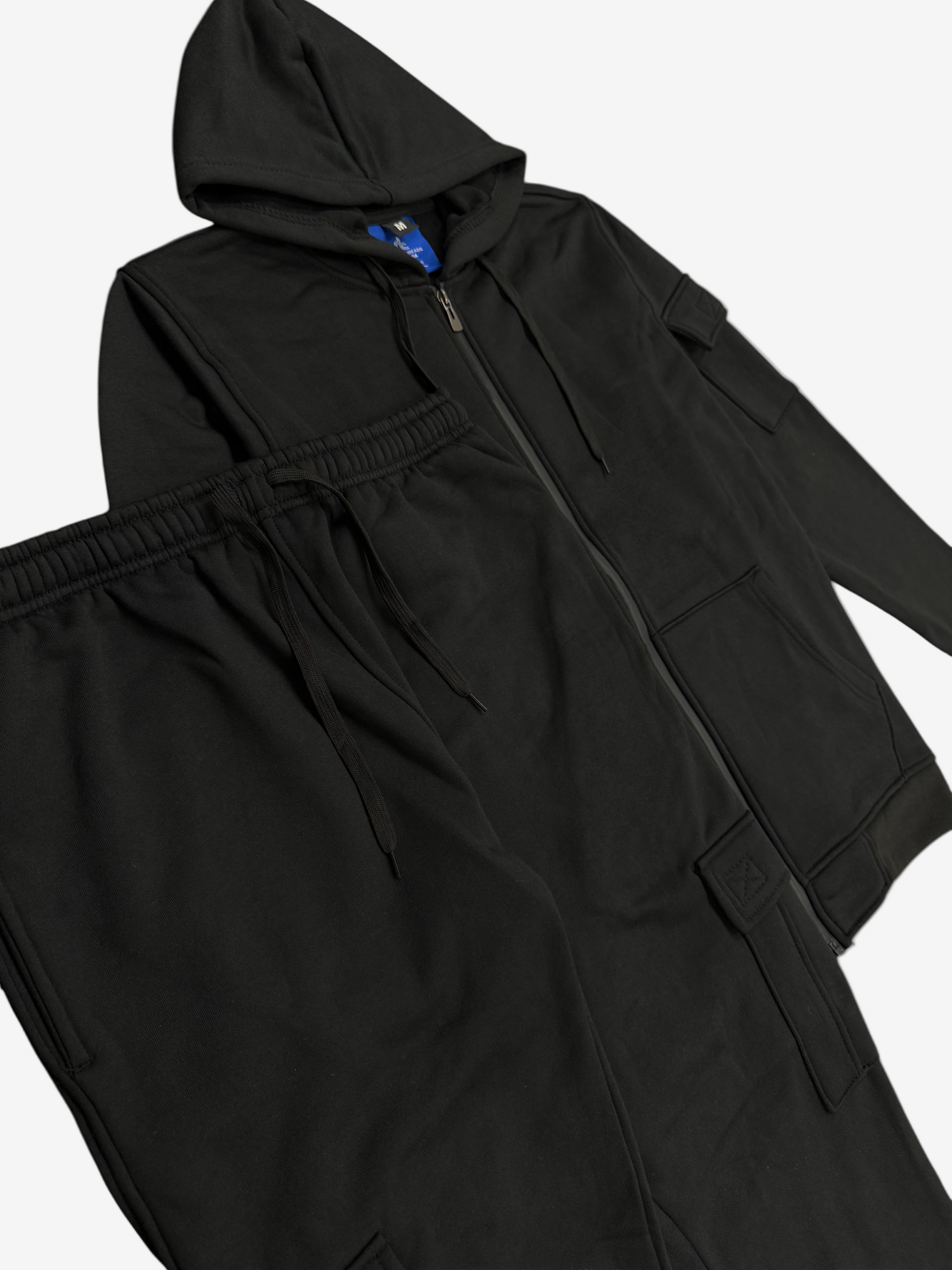 The zip-up hoodie offers easy layering and a relaxed fit, while the multi-pocket joggers deliver both practicality and edge. Every detail — from the elastic waistband to the soft cotton-blend fleece — was chosen to give you lasting comfort and durability, season after season.