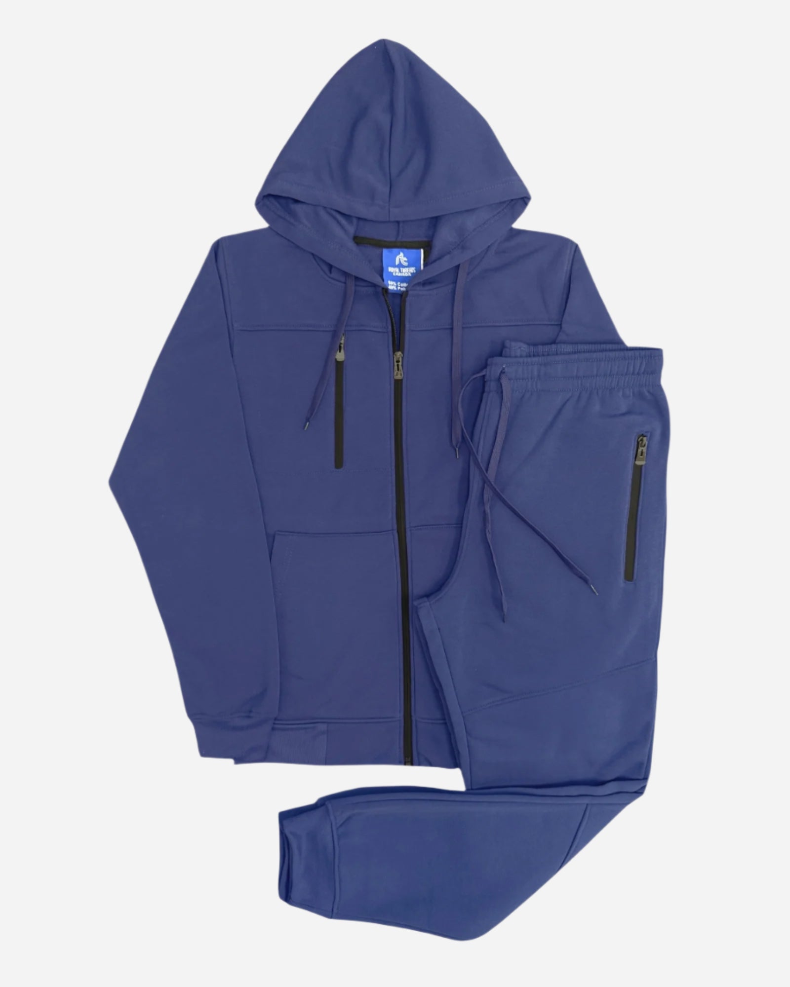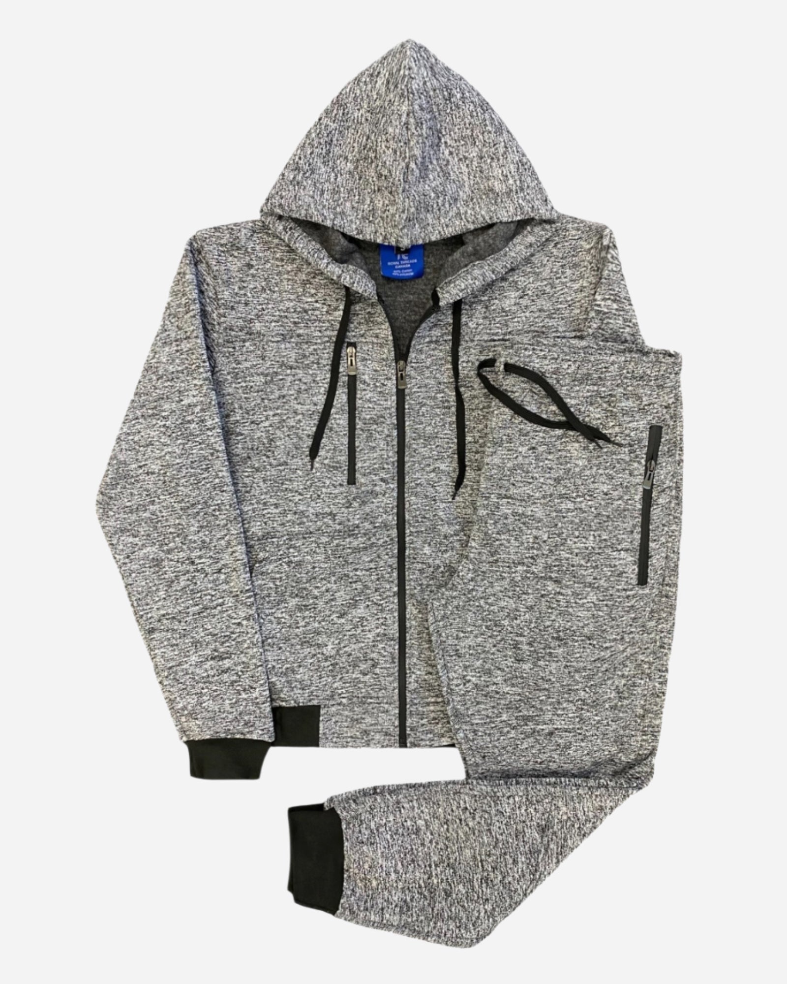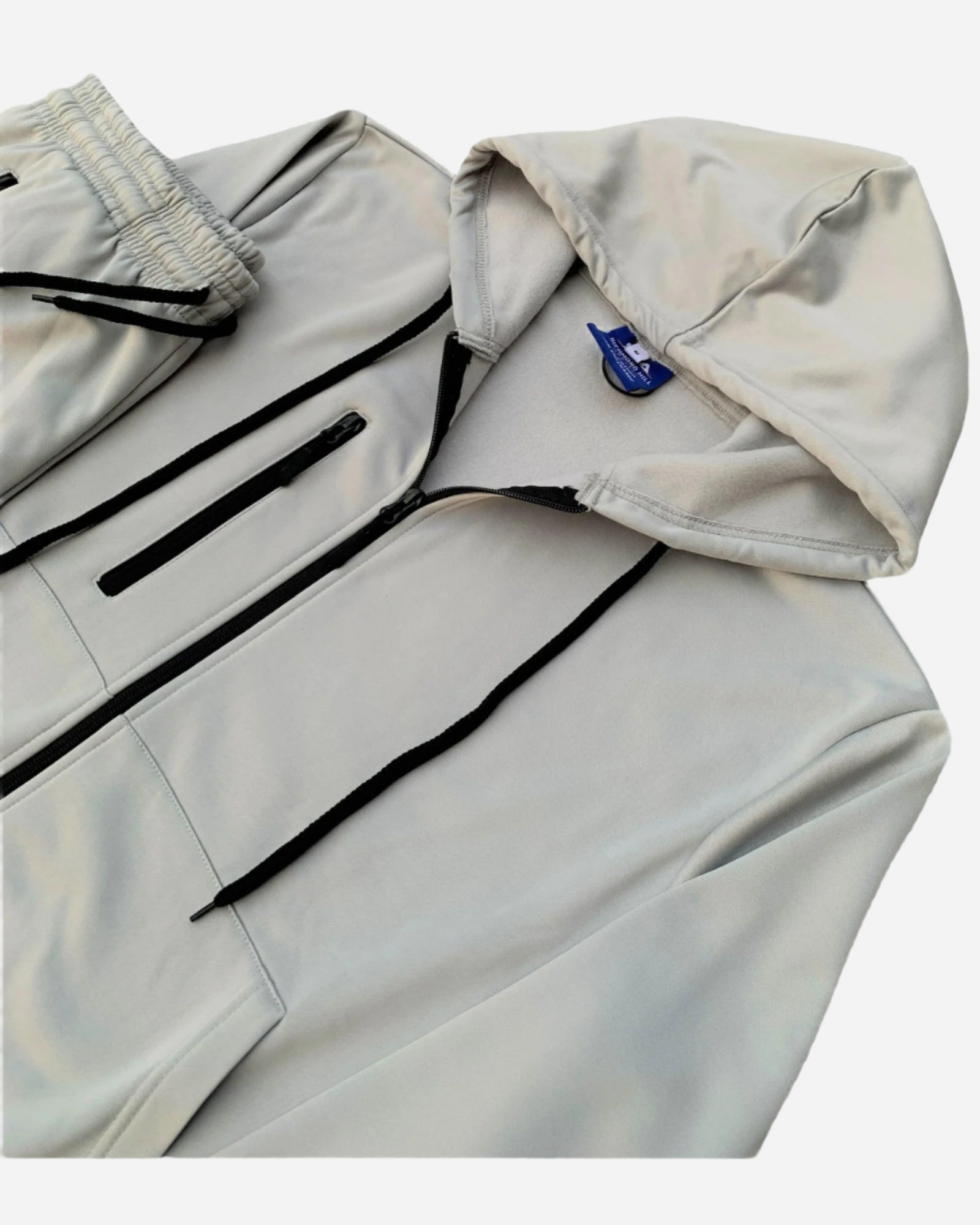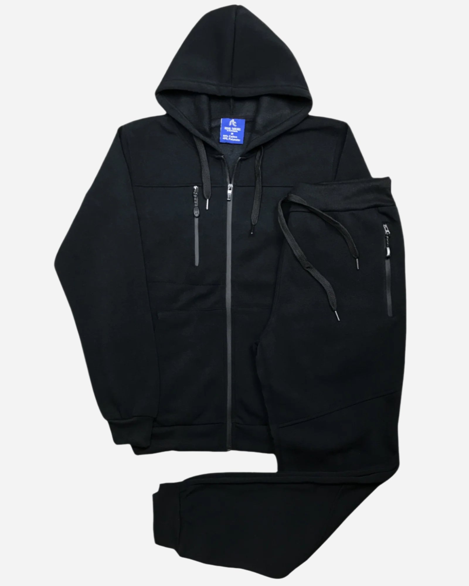 • Sleek tech fleece set with waterproof zippers for a modern edge.