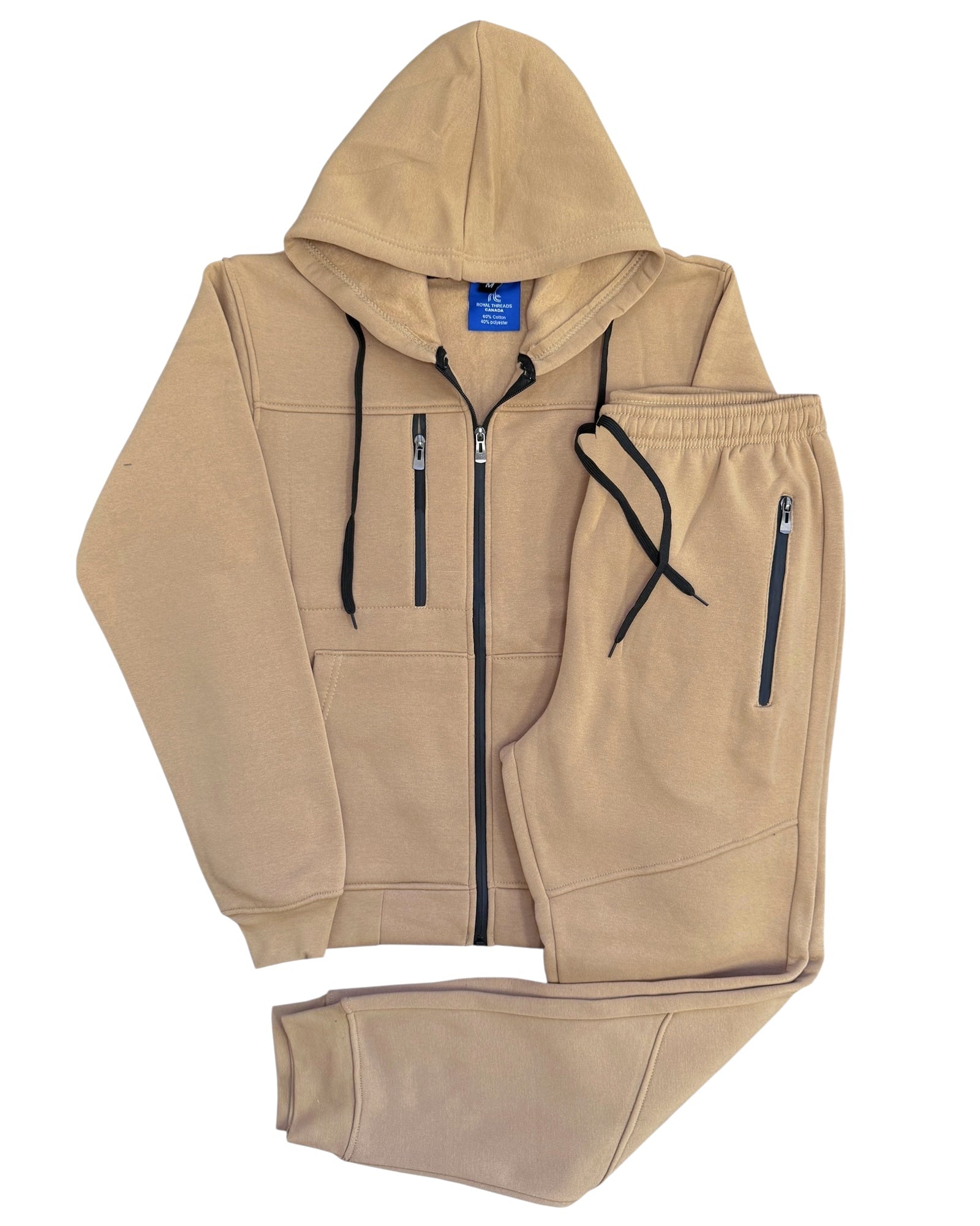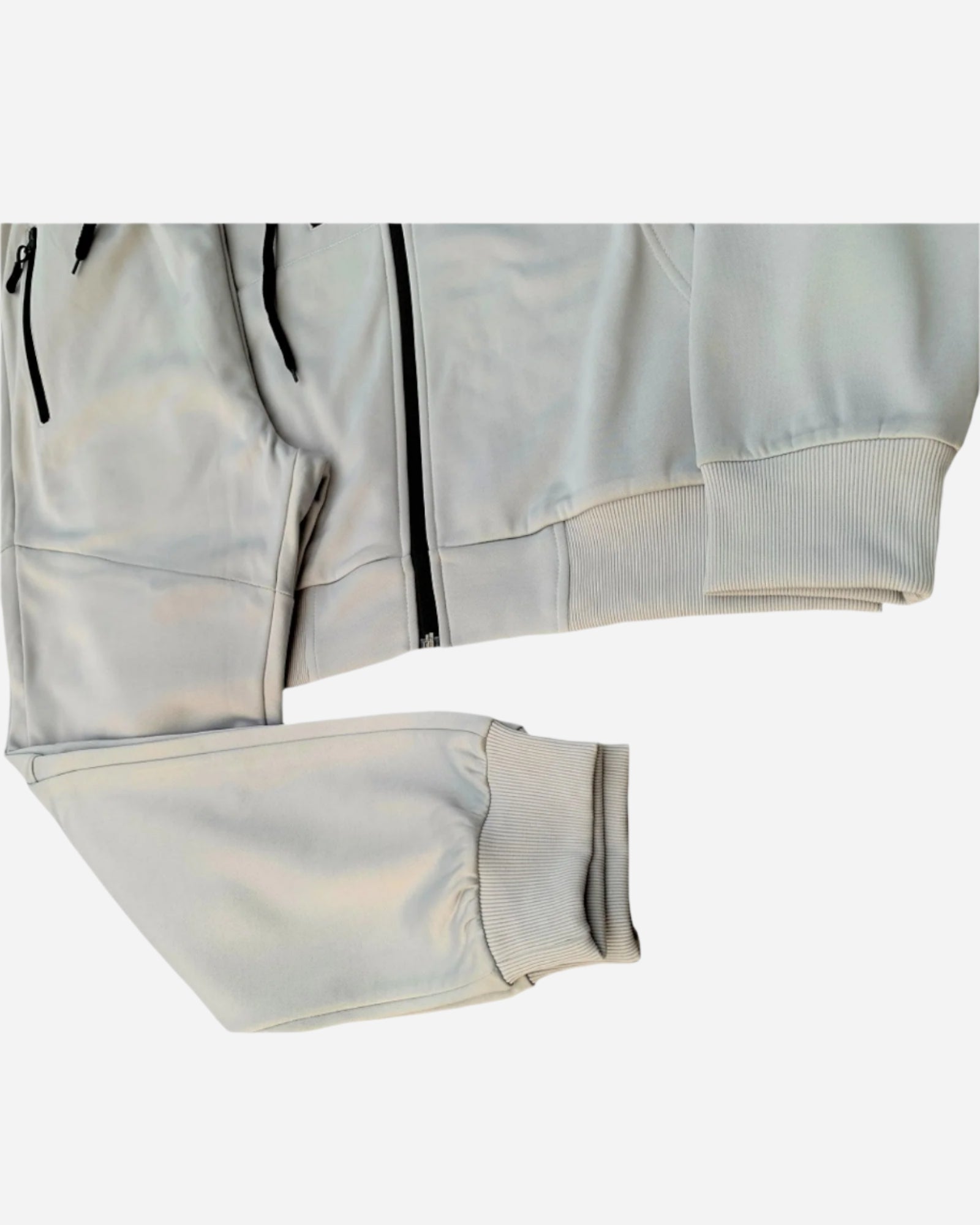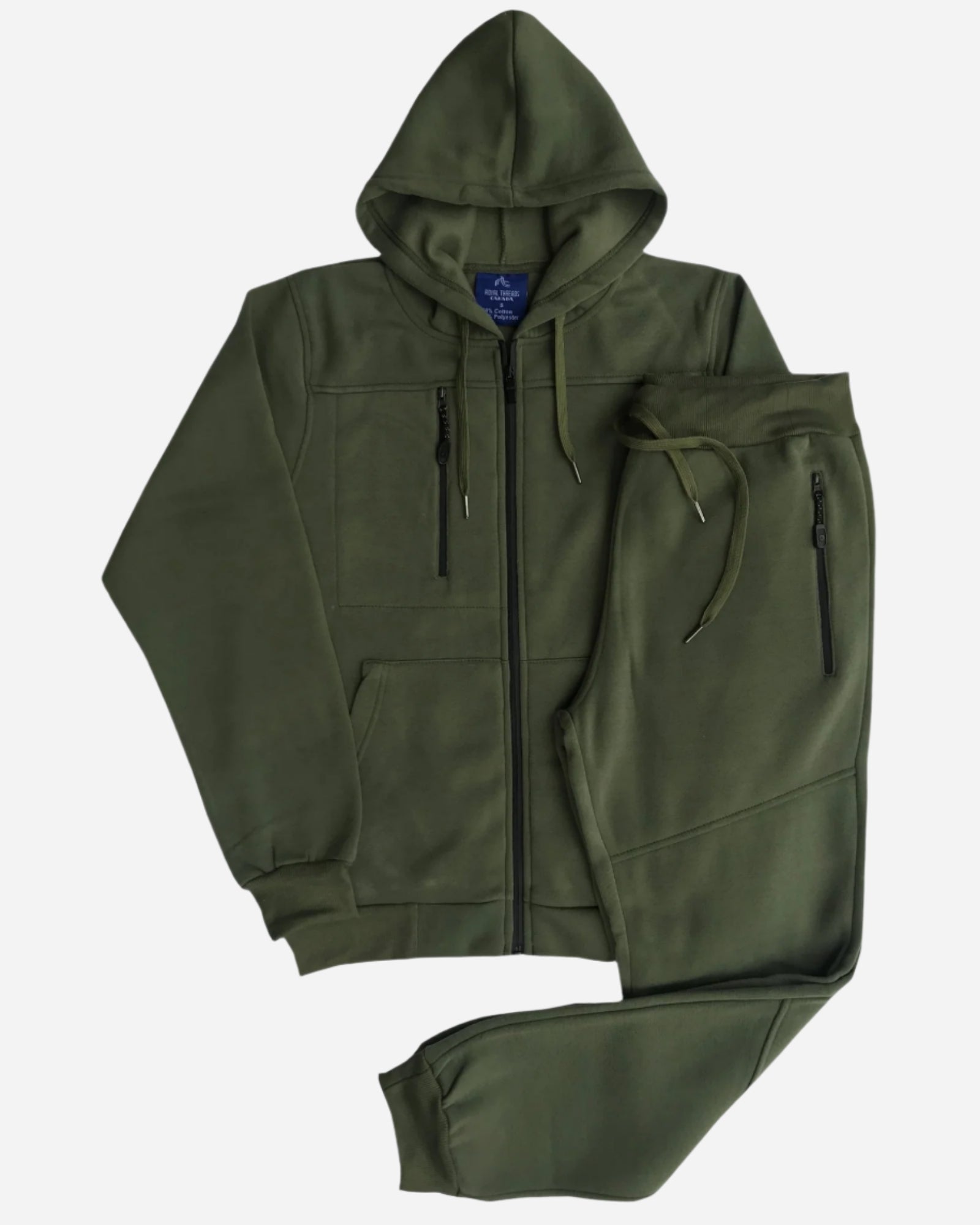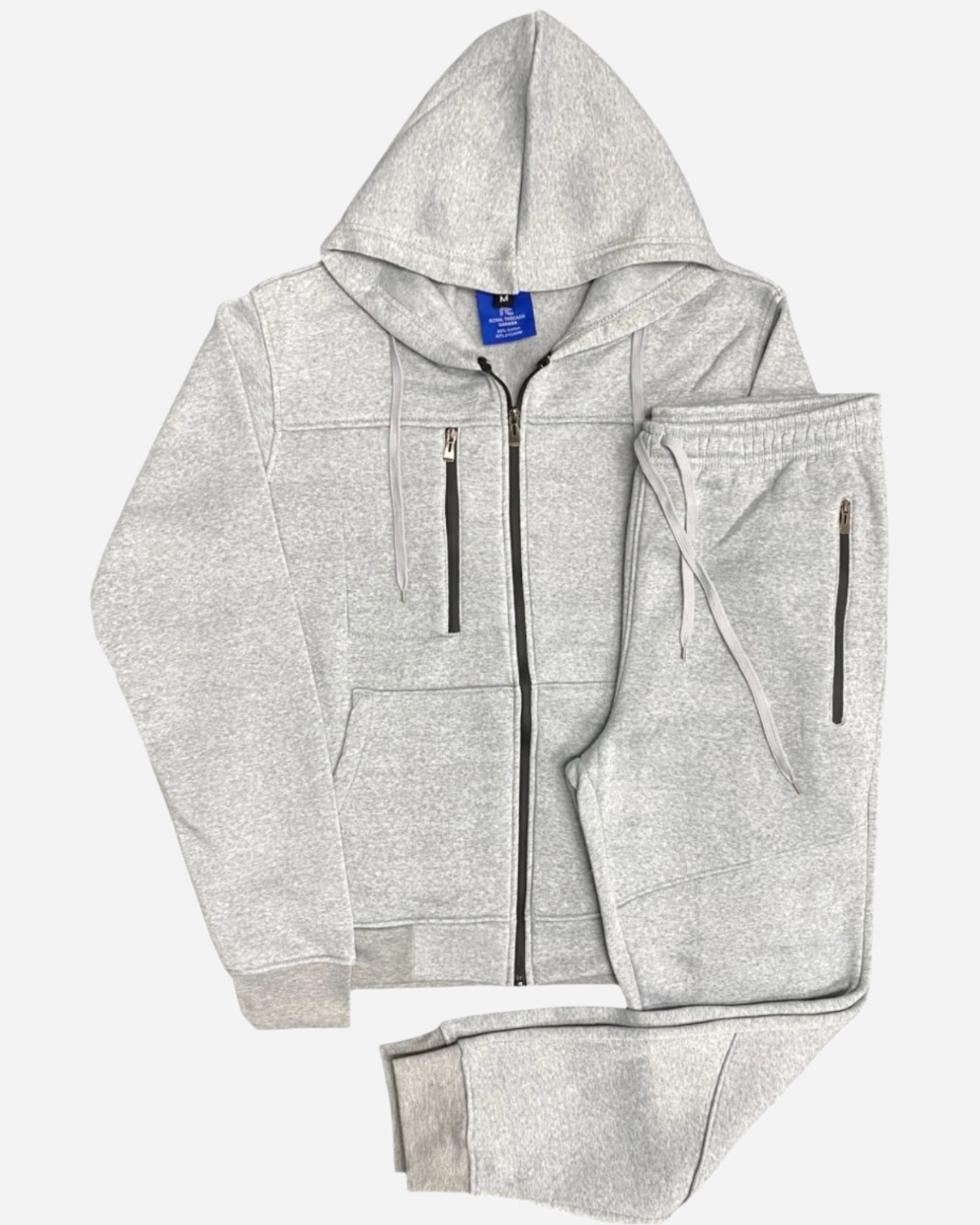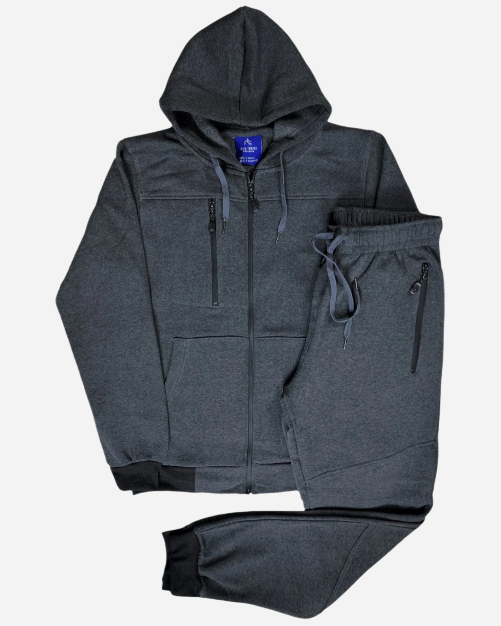 • Sleek tech fleece set with waterproof zippers for a modern edge.