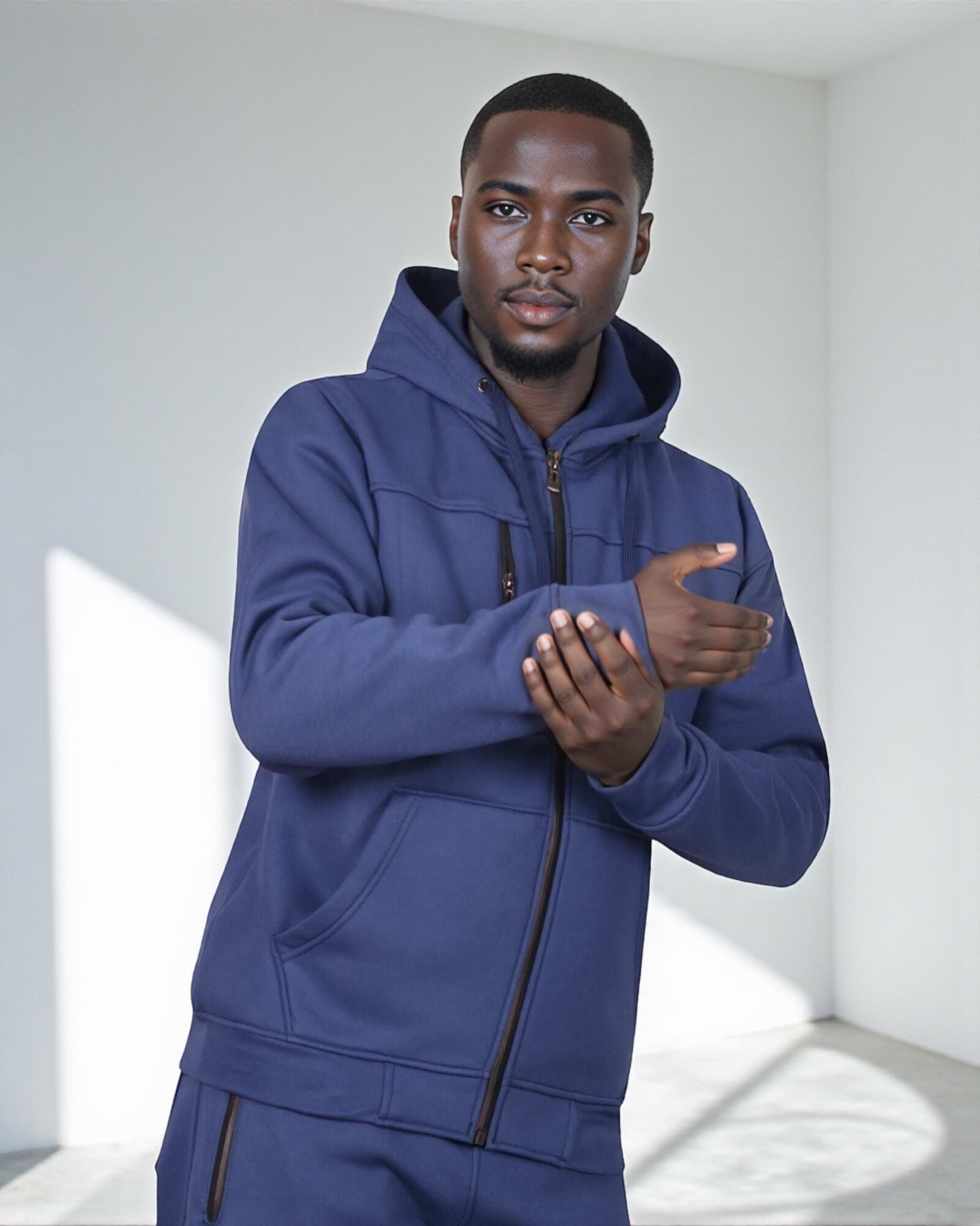 The new tech fleece suit is both stylish and durable. It features a warm cotton blend which feels comfortable when worn. The tech zippers add on to the style with jogger bottoms which complement contemporary fashion. The outfit is suitable for activewear during winters, casualwear around the house or even for a goodtime get together with family and friends.