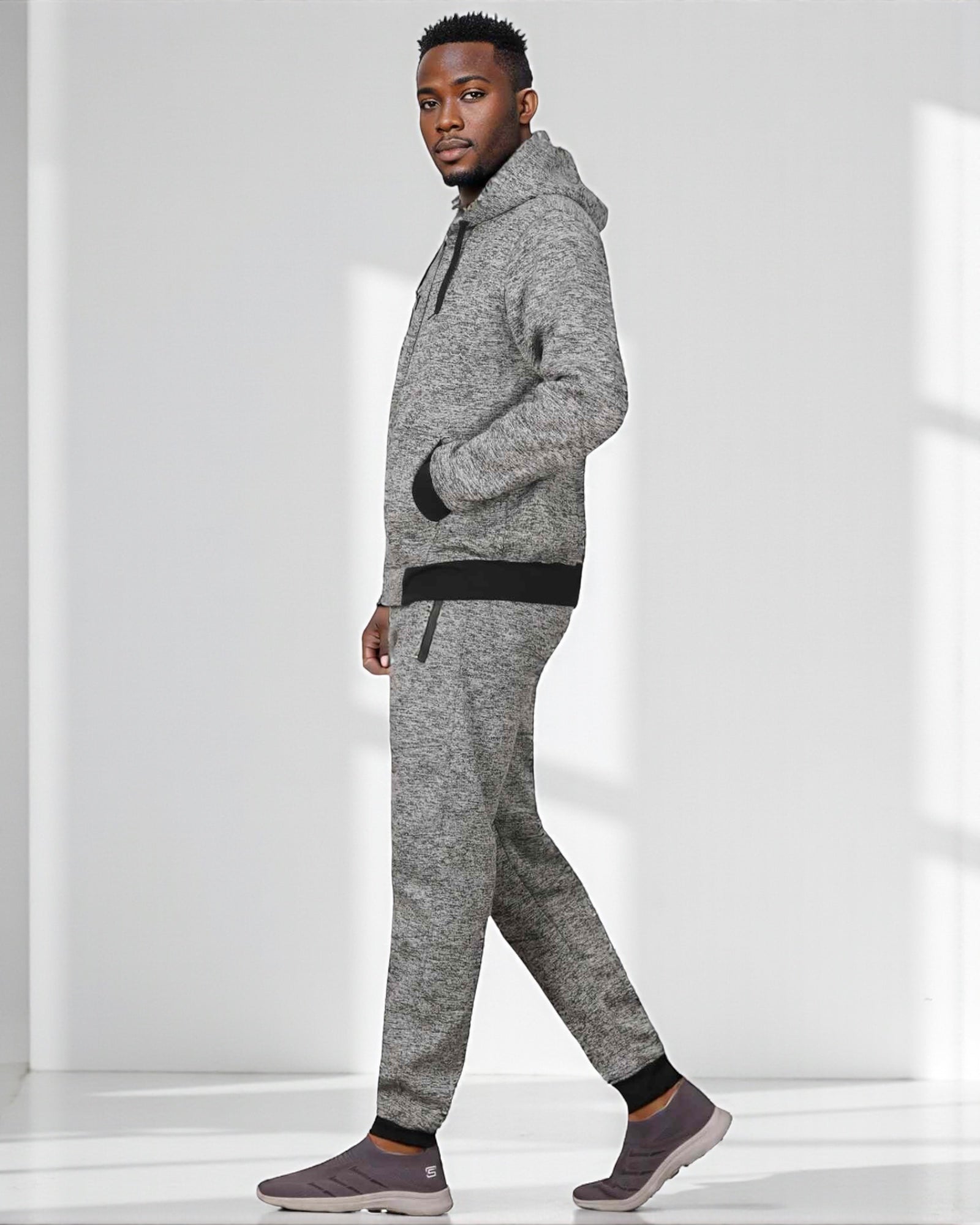 Men’s Warm Winter Tech Fleece Sweat Jacket Sweatpants Jogger Outfit