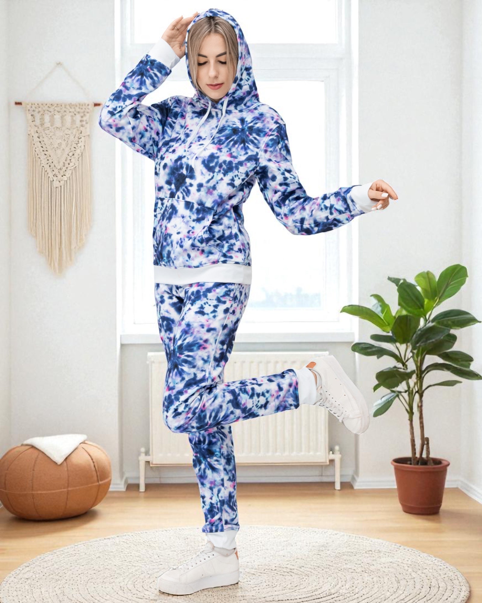 - Soft pullover hoodie and jogger pants with roomy side pockets.