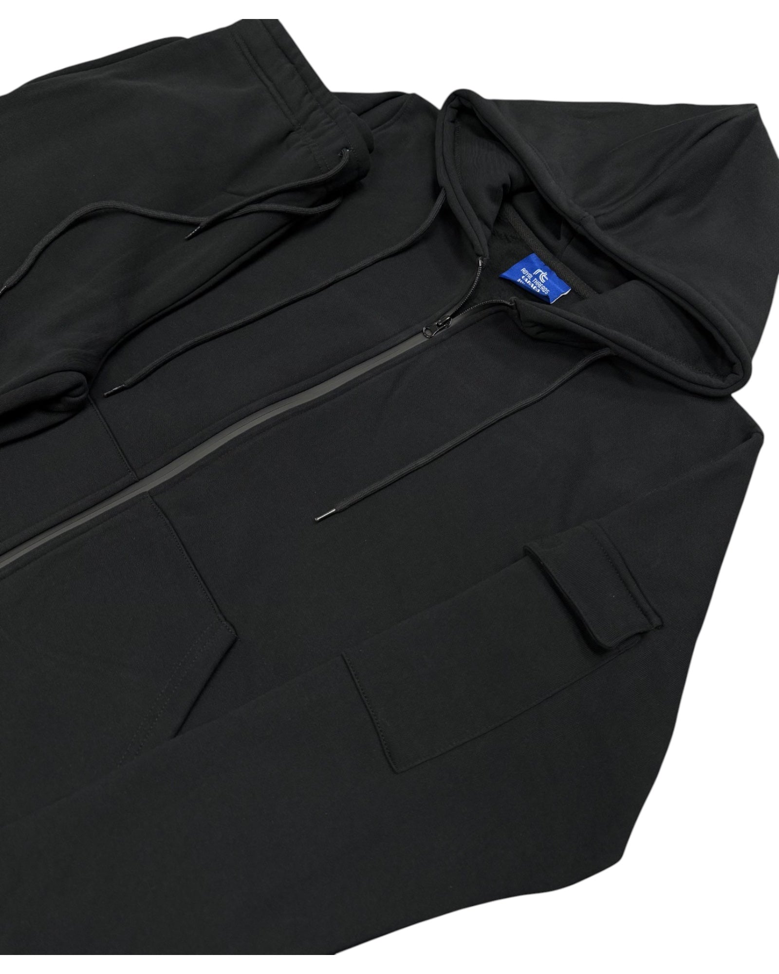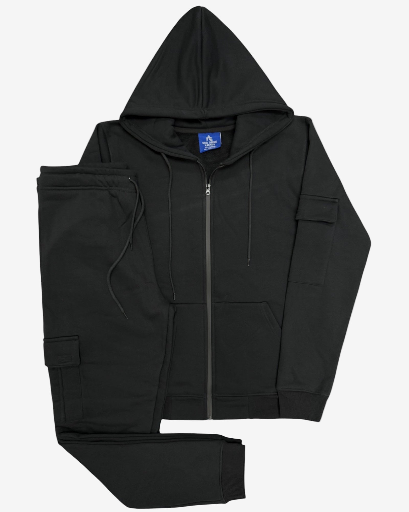 The zip-up hoodie with a utility arm pocket adds a touch of practicality and edge, while the multi-pocket joggers make storage easy without sacrificing fit or silhouette. Every detail — from the heavyweight fleece to the modern jogger cut — was chosen to deliver comfort that lasts and quality that stands out.