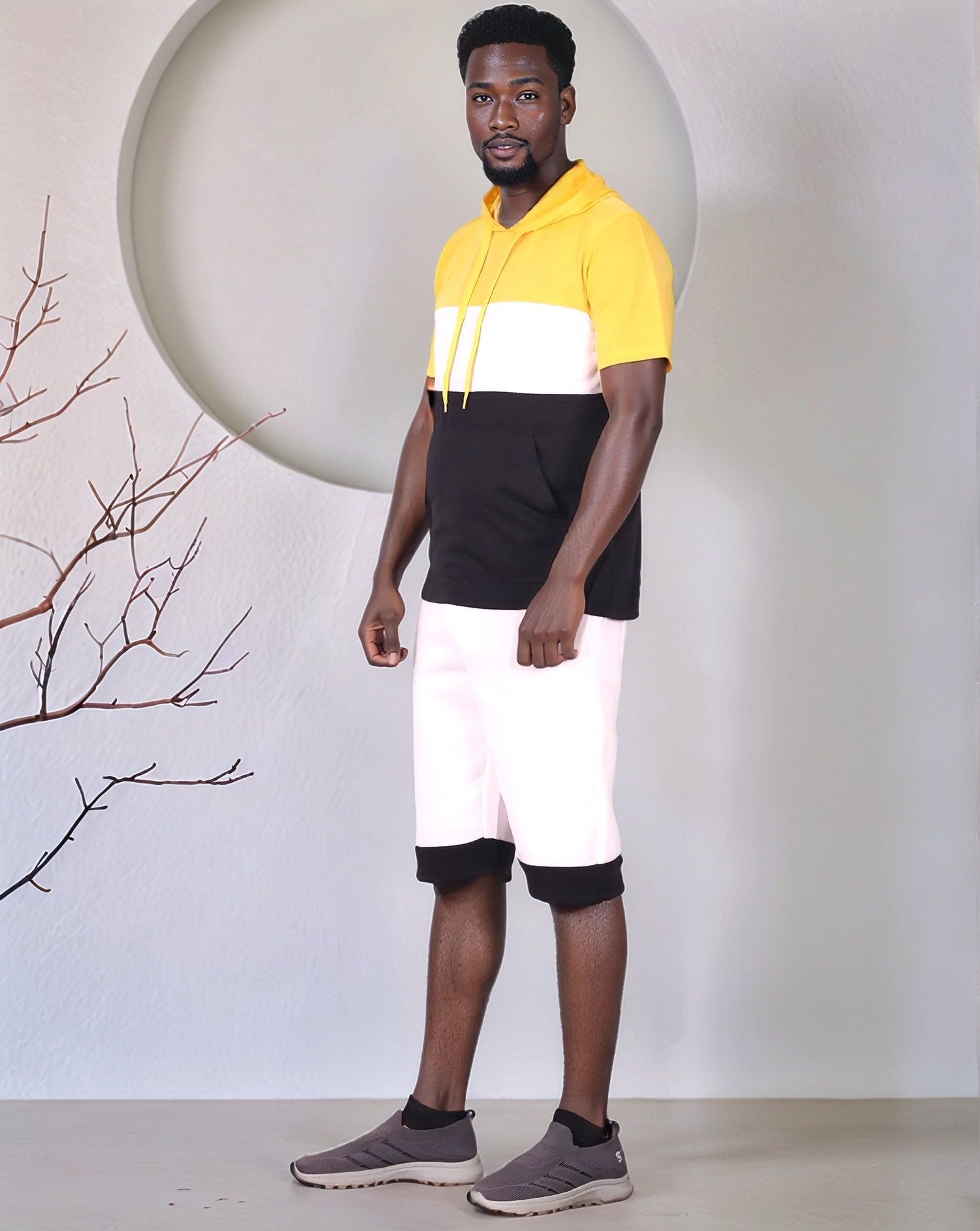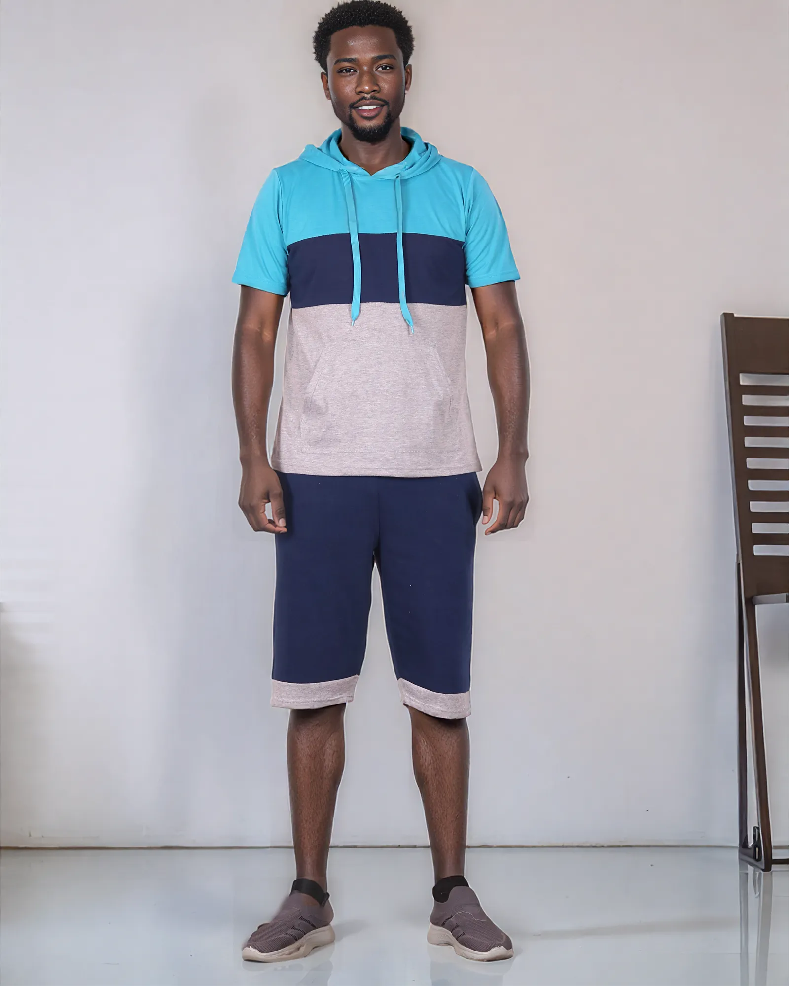 Men’s 2-piece Color block Short Set pullover Hoodie with matching shorts