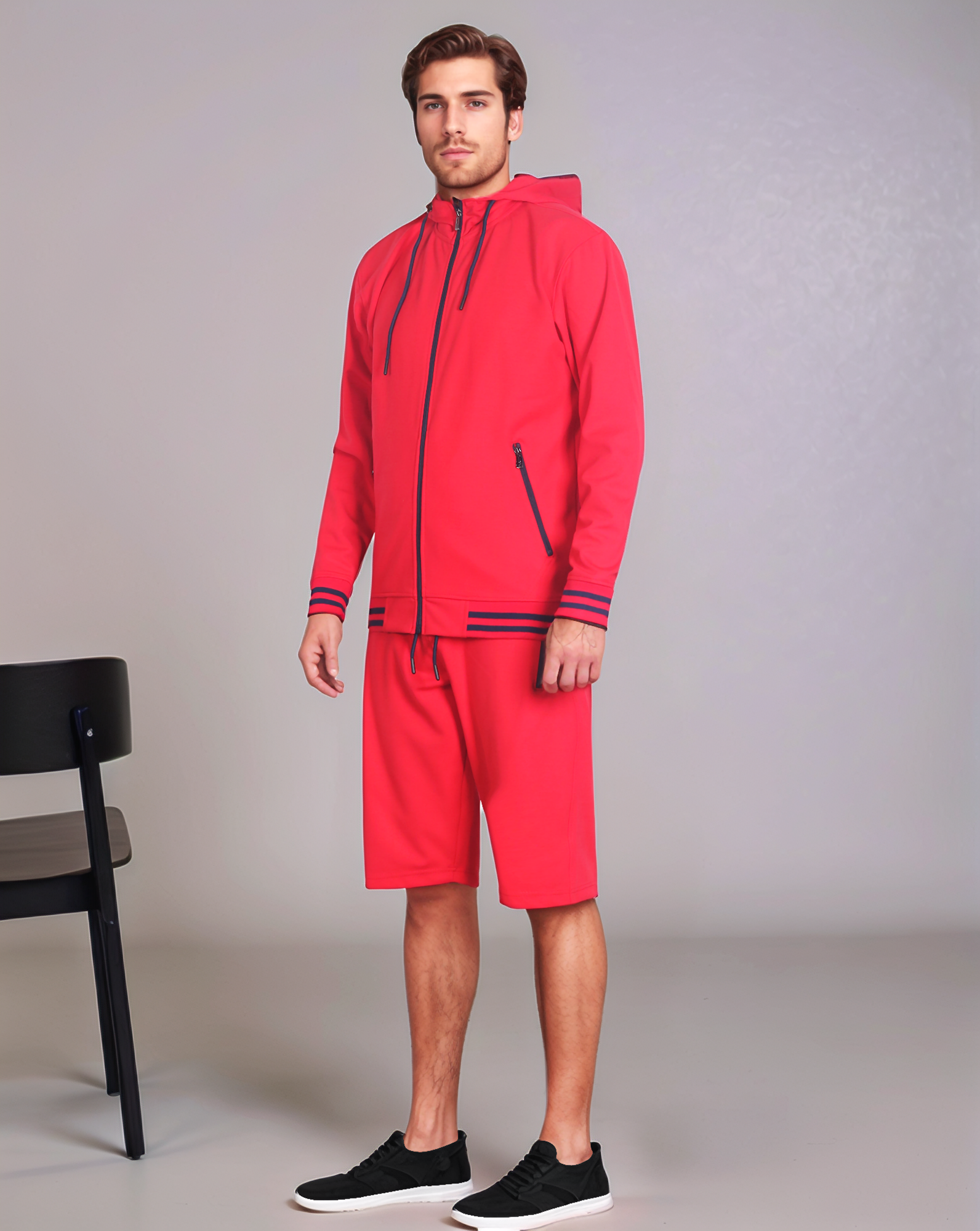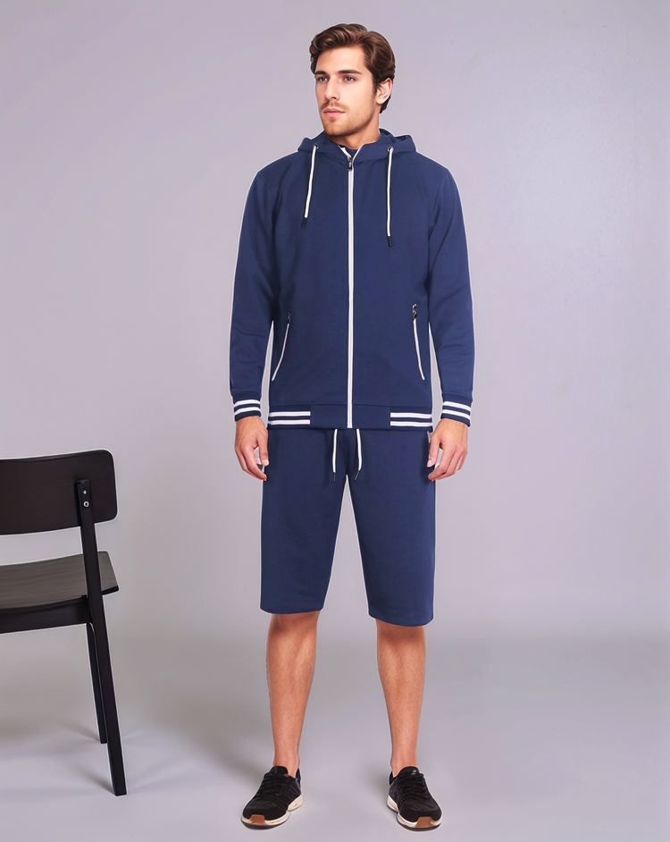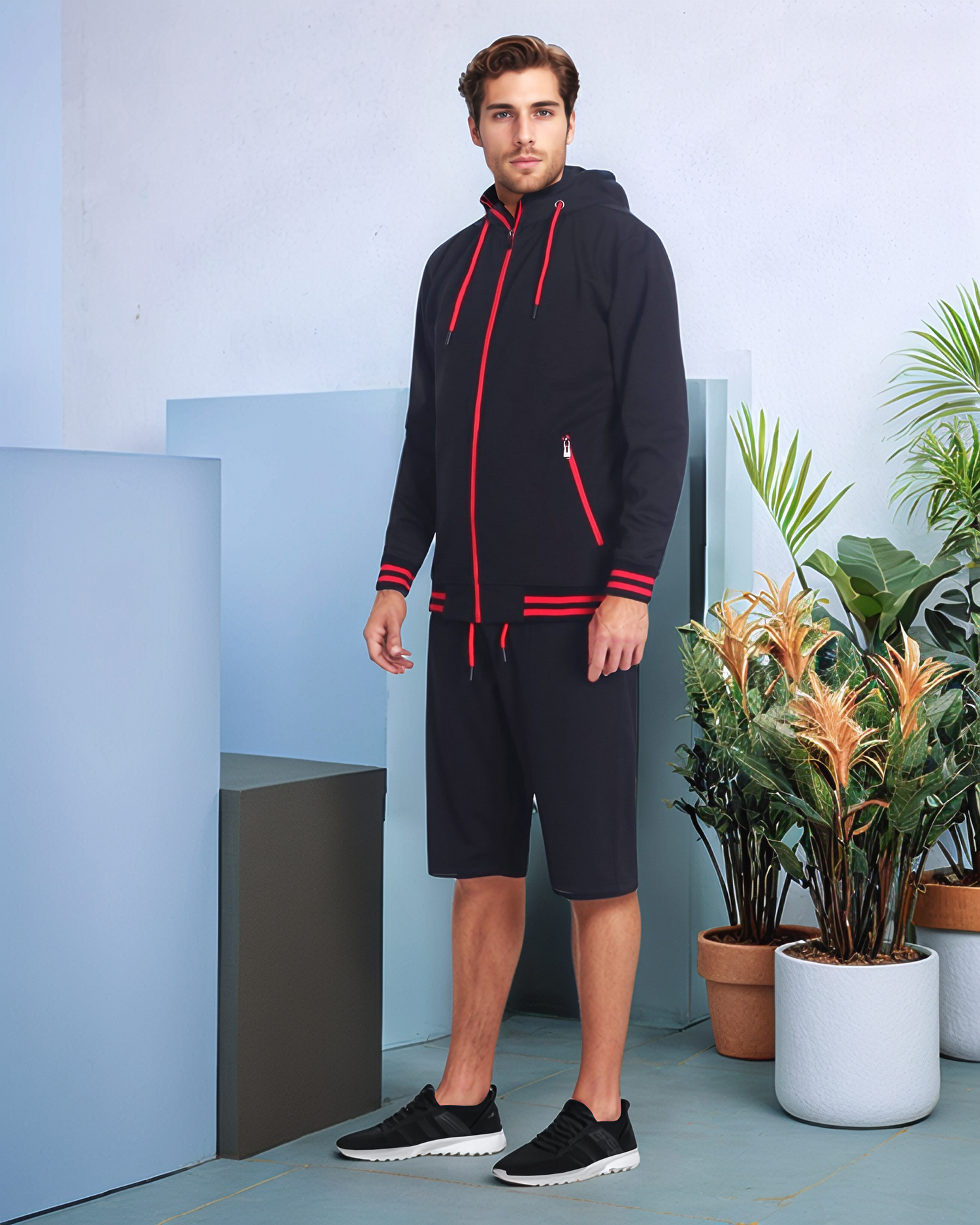 This Men’s Active GYM Training Track Jacket & Shorts Set features a versatile design that is perfect for any athletic activity. Made with moisture-wicking, breathable fabric, it provides comfort and air flow during workouts. Stay focused on your fitness goals with this high-quality active set.