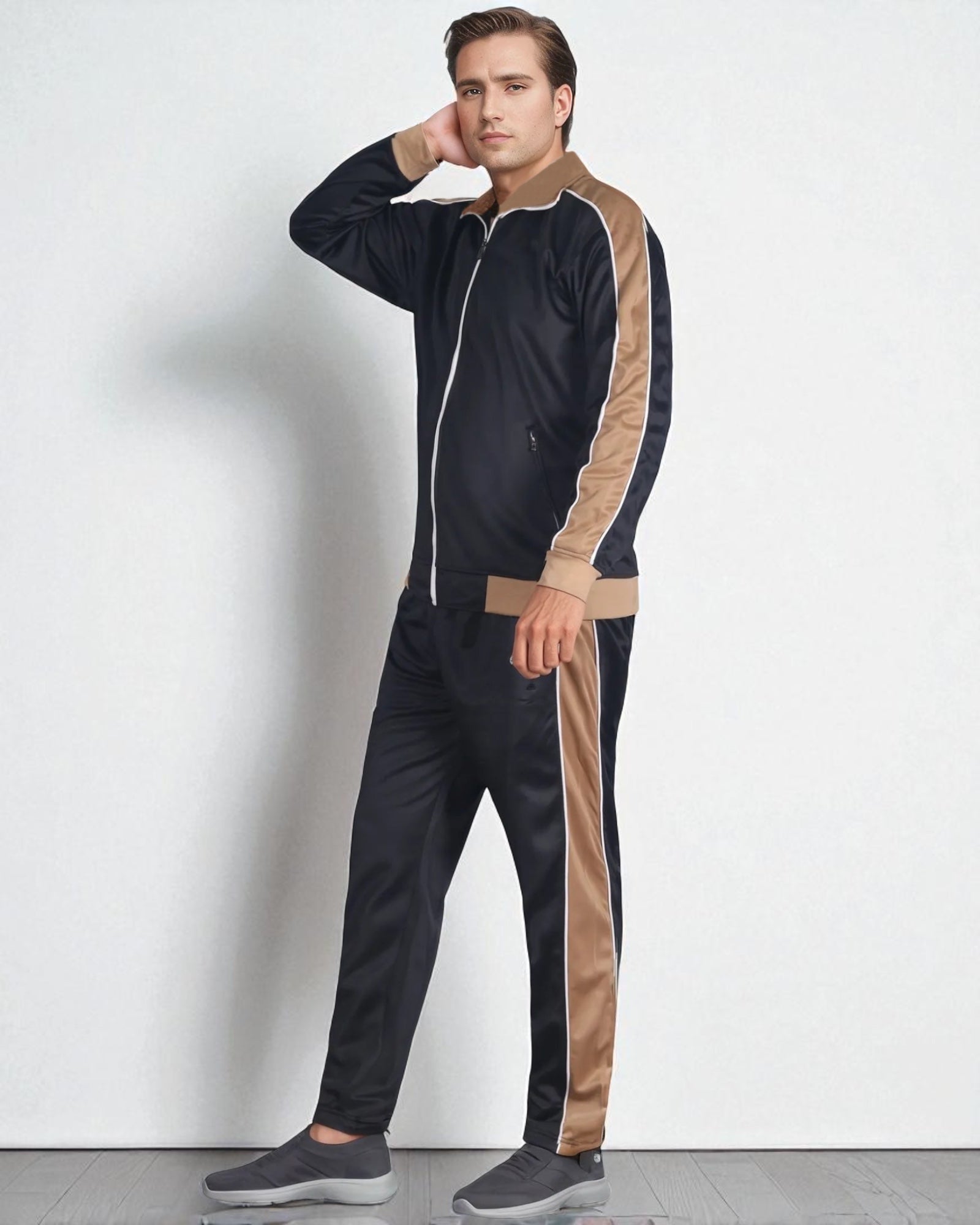 Tracksuits have been a part of popular culture for decades. 2-piece matching suits are worm from the GYM to the sports field and from work to casual weekend activities. The new series tree tracksuit comes in a two color combination in a traditional style and standard fit, which makes it a great fit at any age. The track jacket is composed of a seamlessly comfortable track material for daily wear. The slim fit track pants ensure a contemporary and fashionable jogger style.