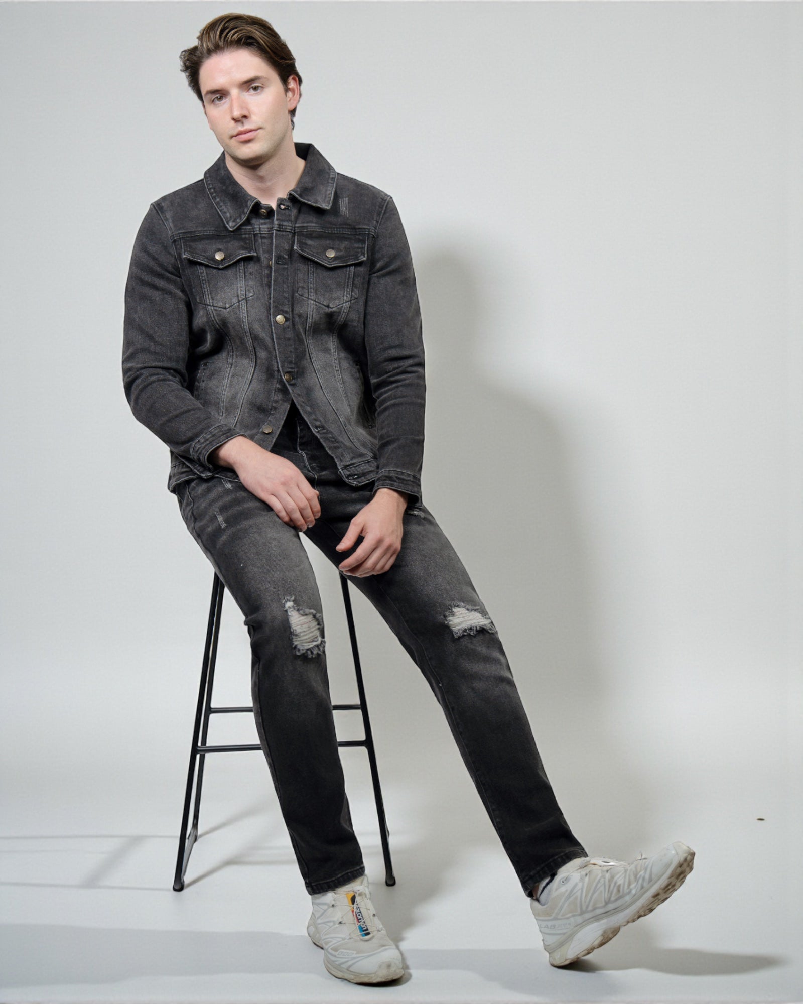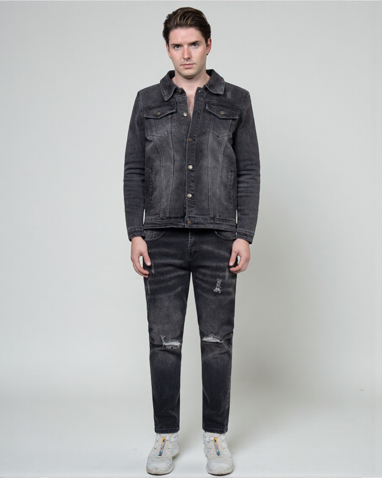 Expertly crafted with a classic slim fit, this Men’s vintage wash Jean Suit provides both style and comfort. The vintage wash technique adds a unique and modern touch to the classic design. This suit is a staple for any man's wardrobe, perfect for both casual and formal occasions.