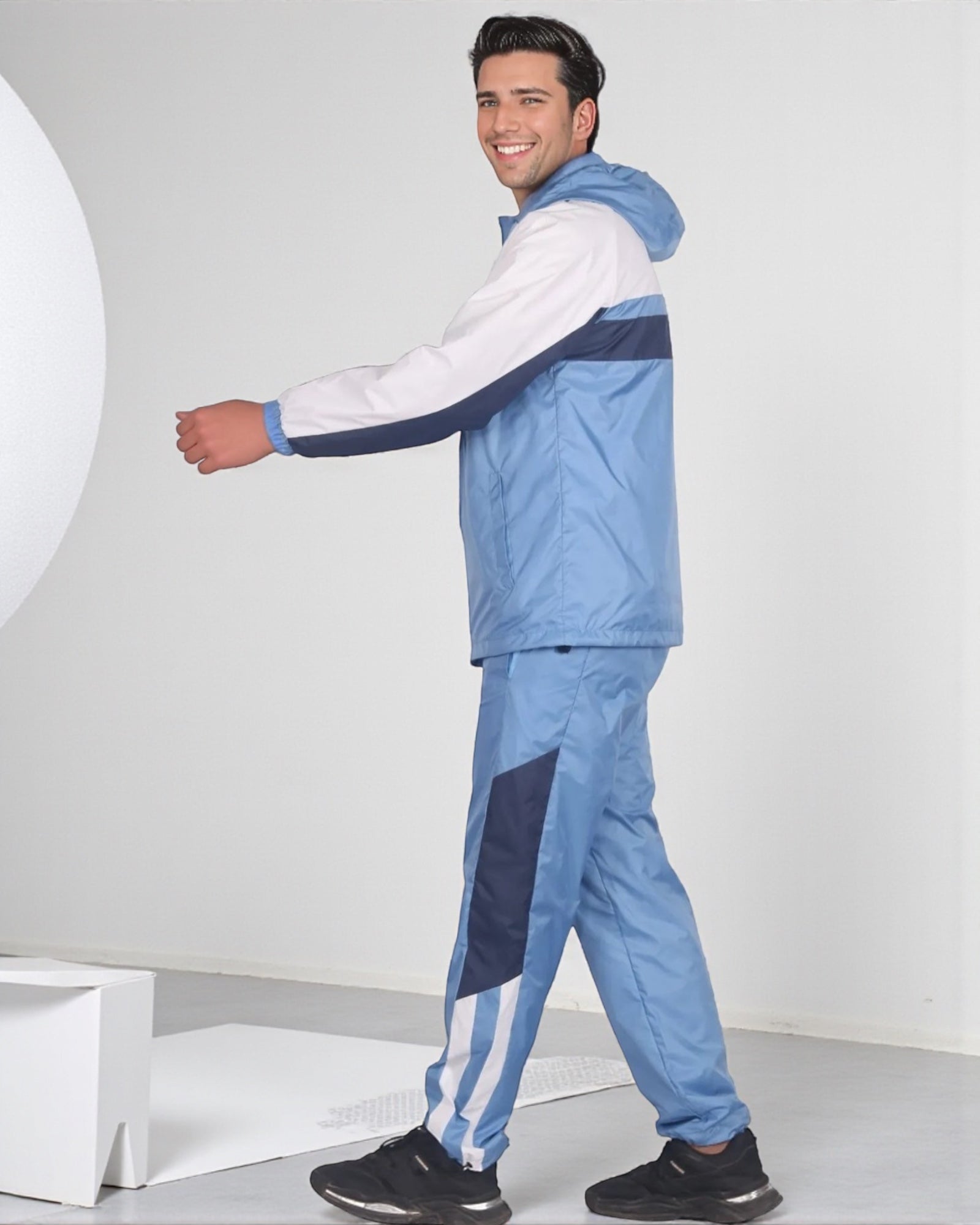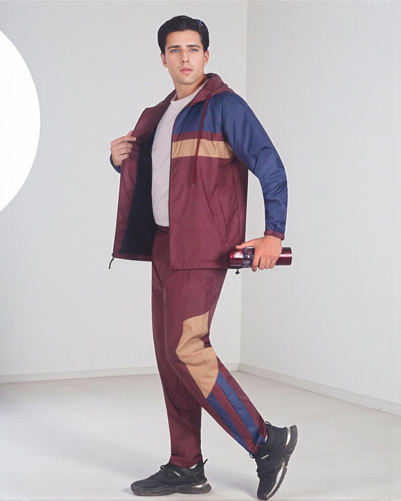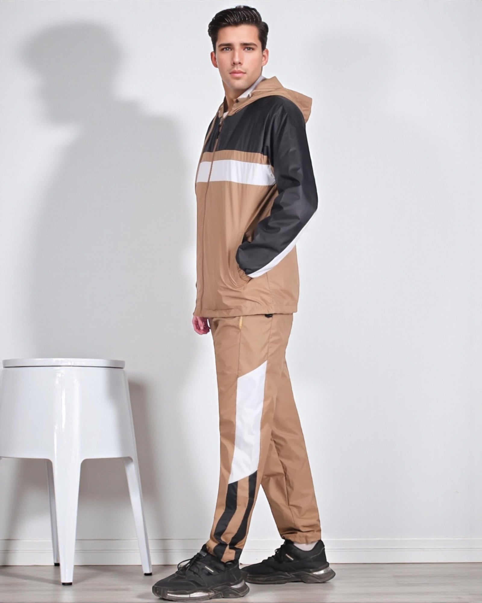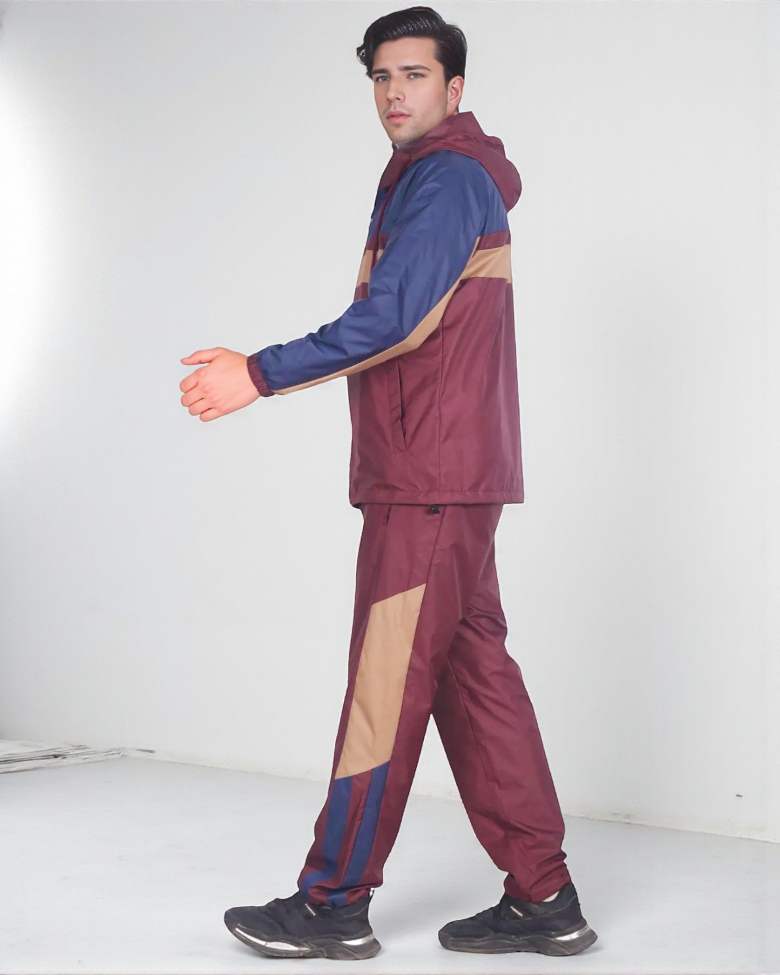 The Ridge windbreaker tracksuit is featured in a three tone color combination as a matching 2-piece outfit. The soft mesh lining absorbs sweat, making this outfit suitable for the GYM, on the sports field or just casual evening walks. Matching outfits have always been in the fashion senses and this fashion design tracksuit compliments current trends in a classy look.