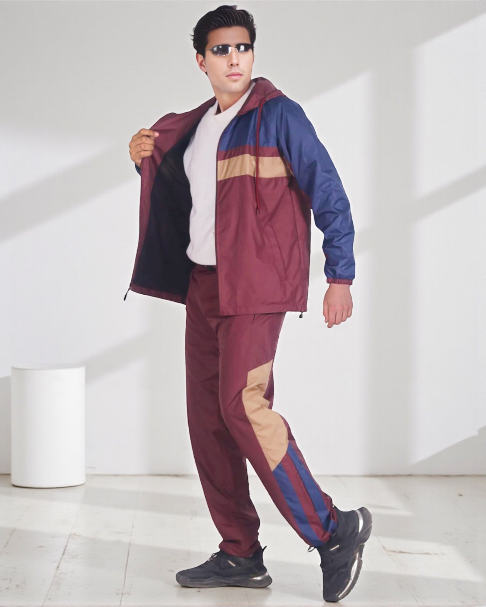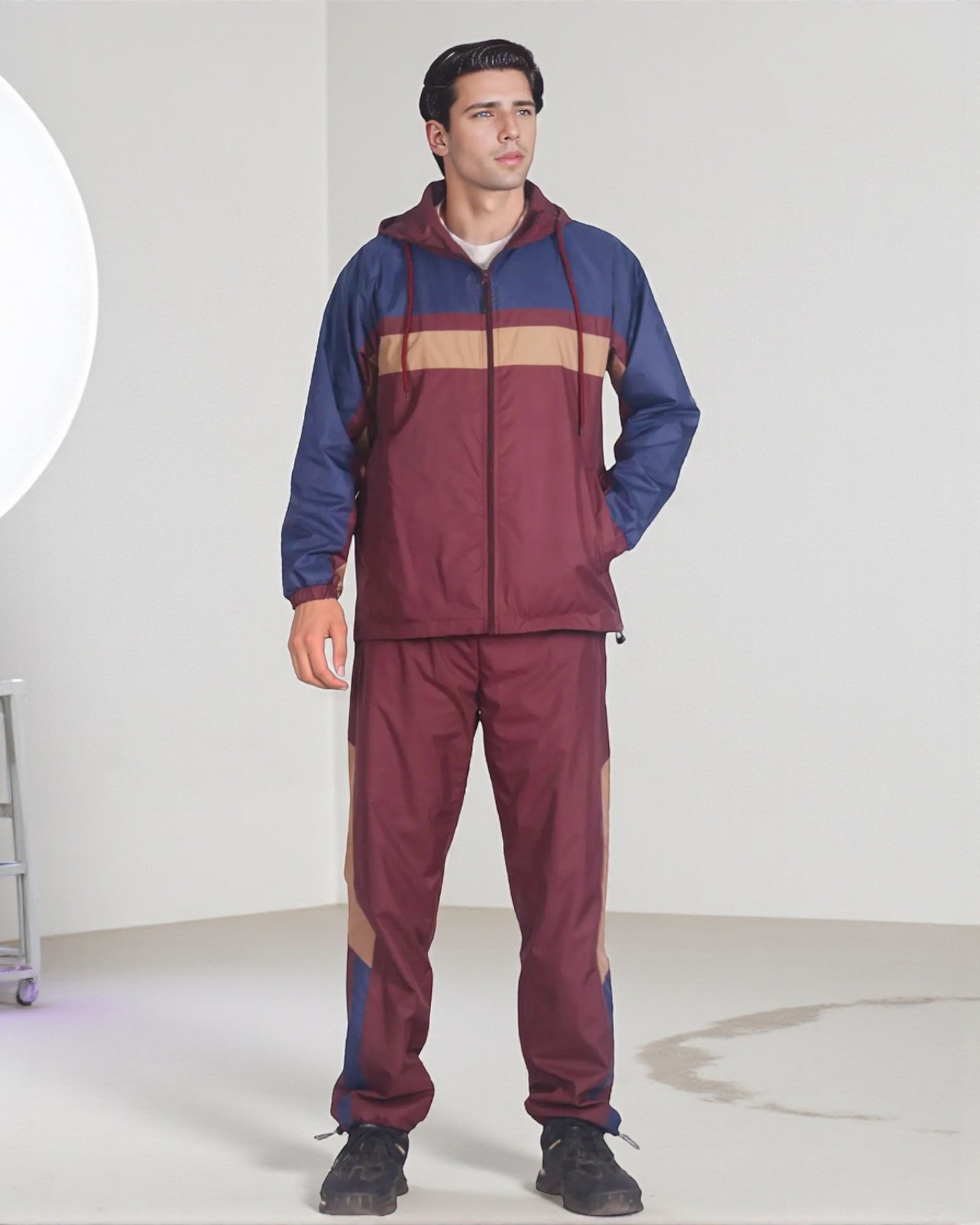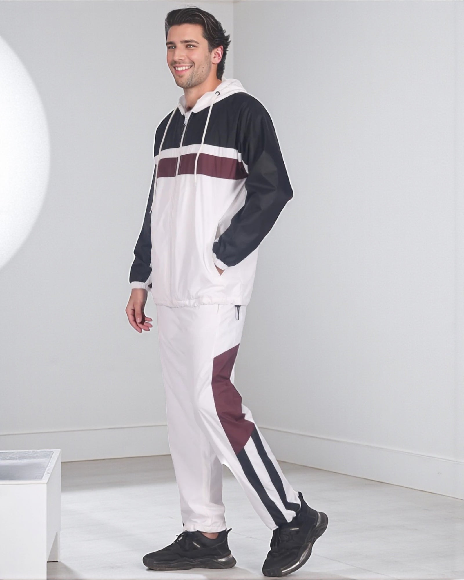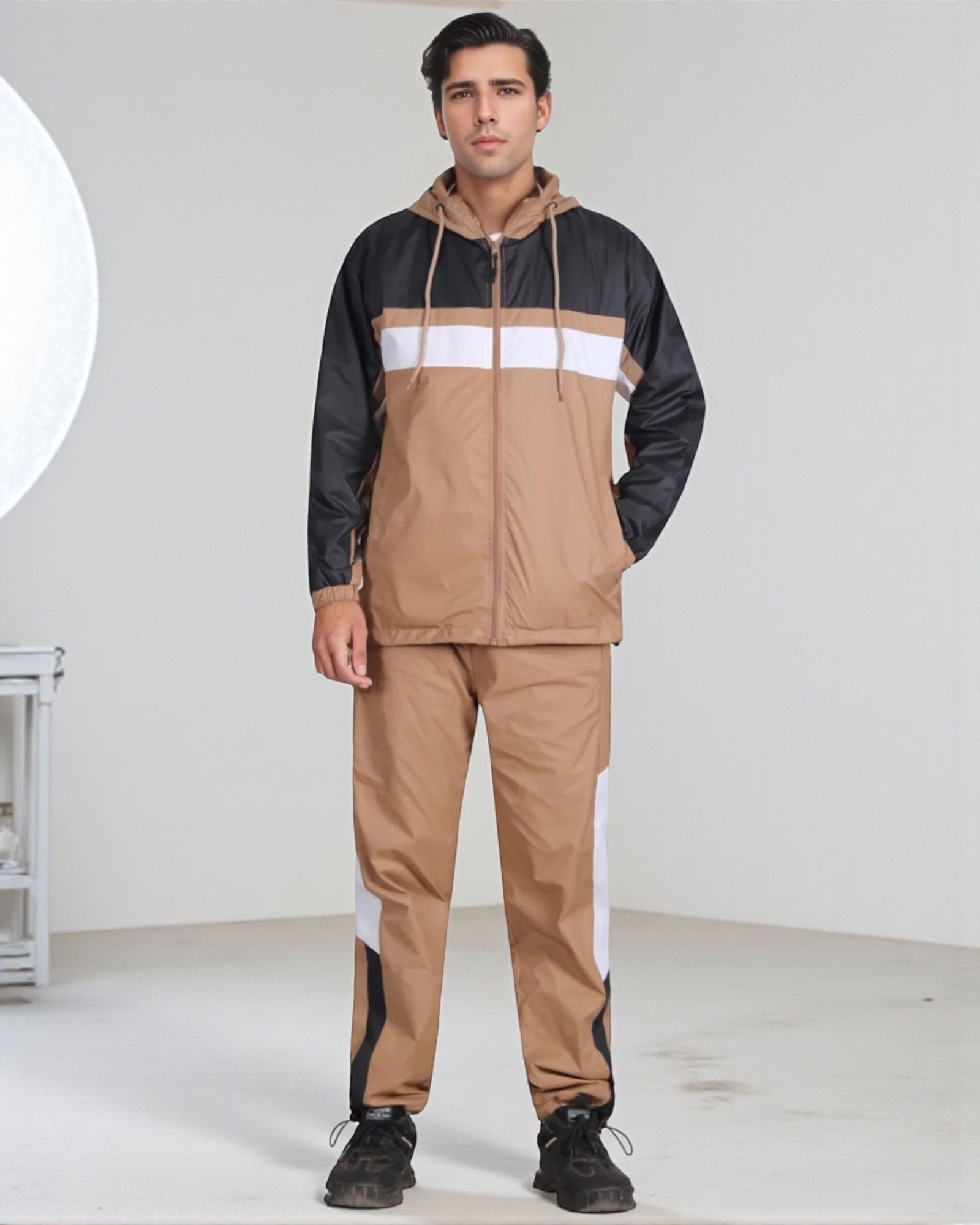 The Ridge windbreaker tracksuit is featured in a three tone color combination as a matching 2-piece outfit. The soft mesh lining absorbs sweat, making this outfit suitable for the GYM, on the sports field or just casual evening walks. Matching outfits have always been in the fashion senses and this fashion design tracksuit compliments current trends in a classy look.