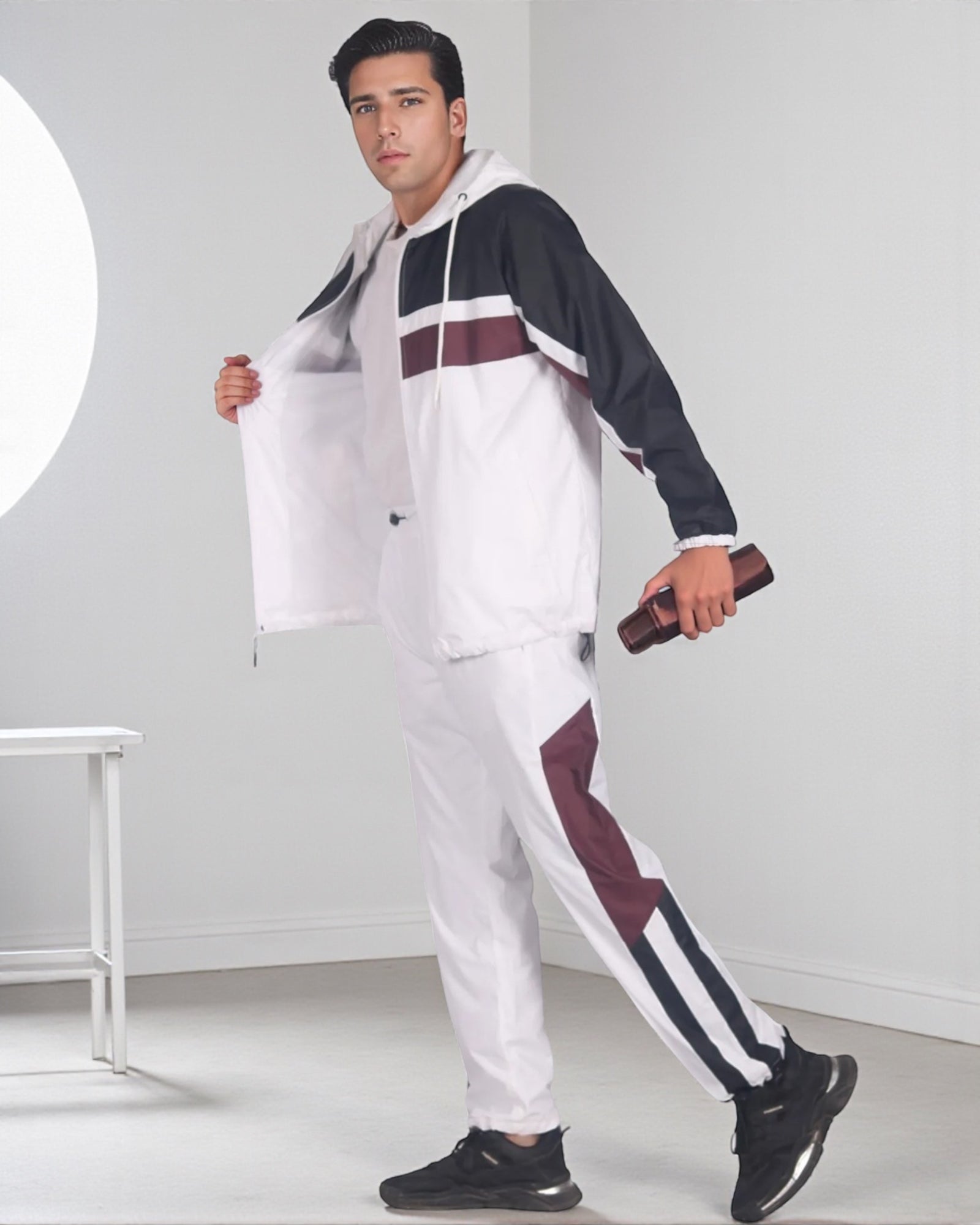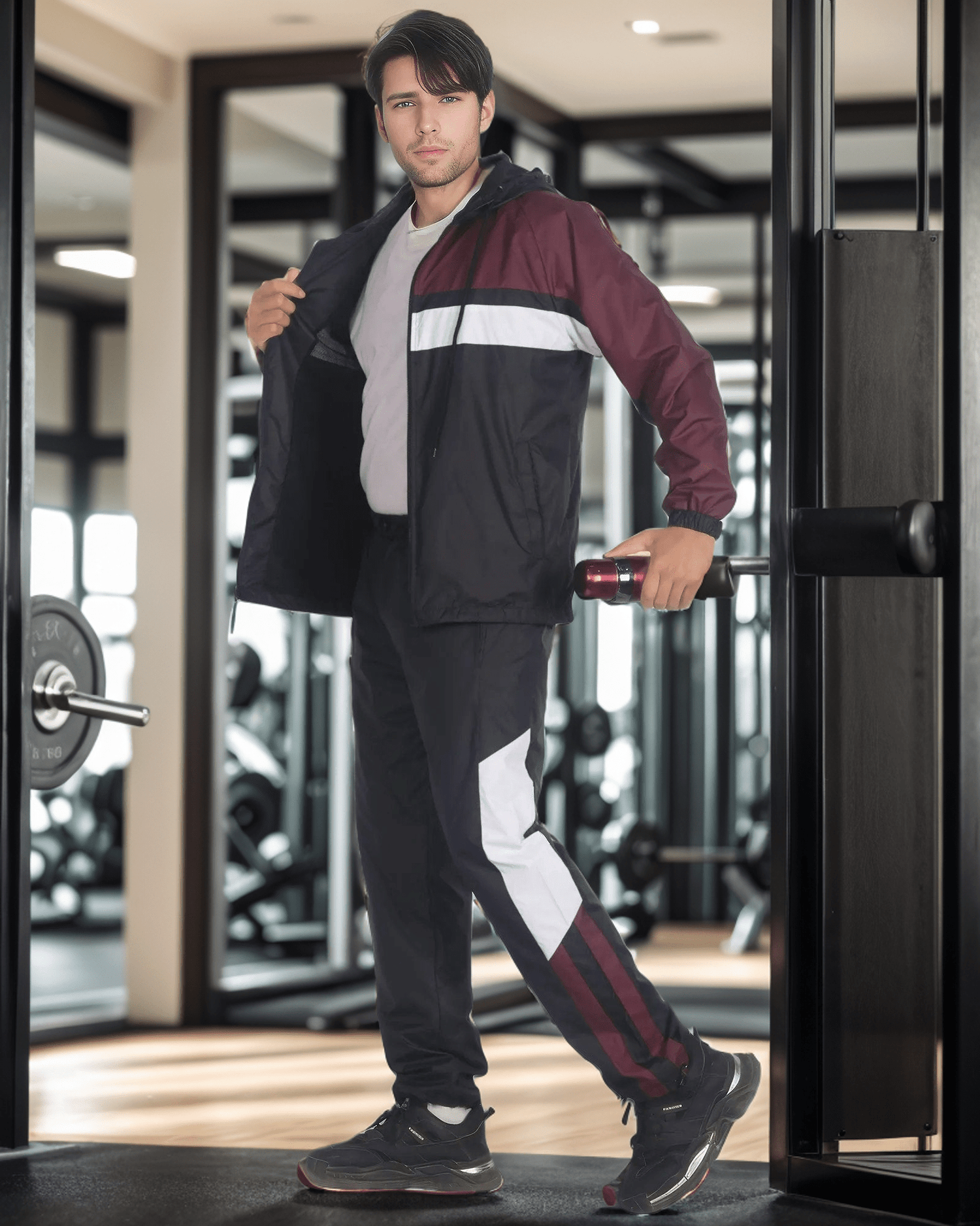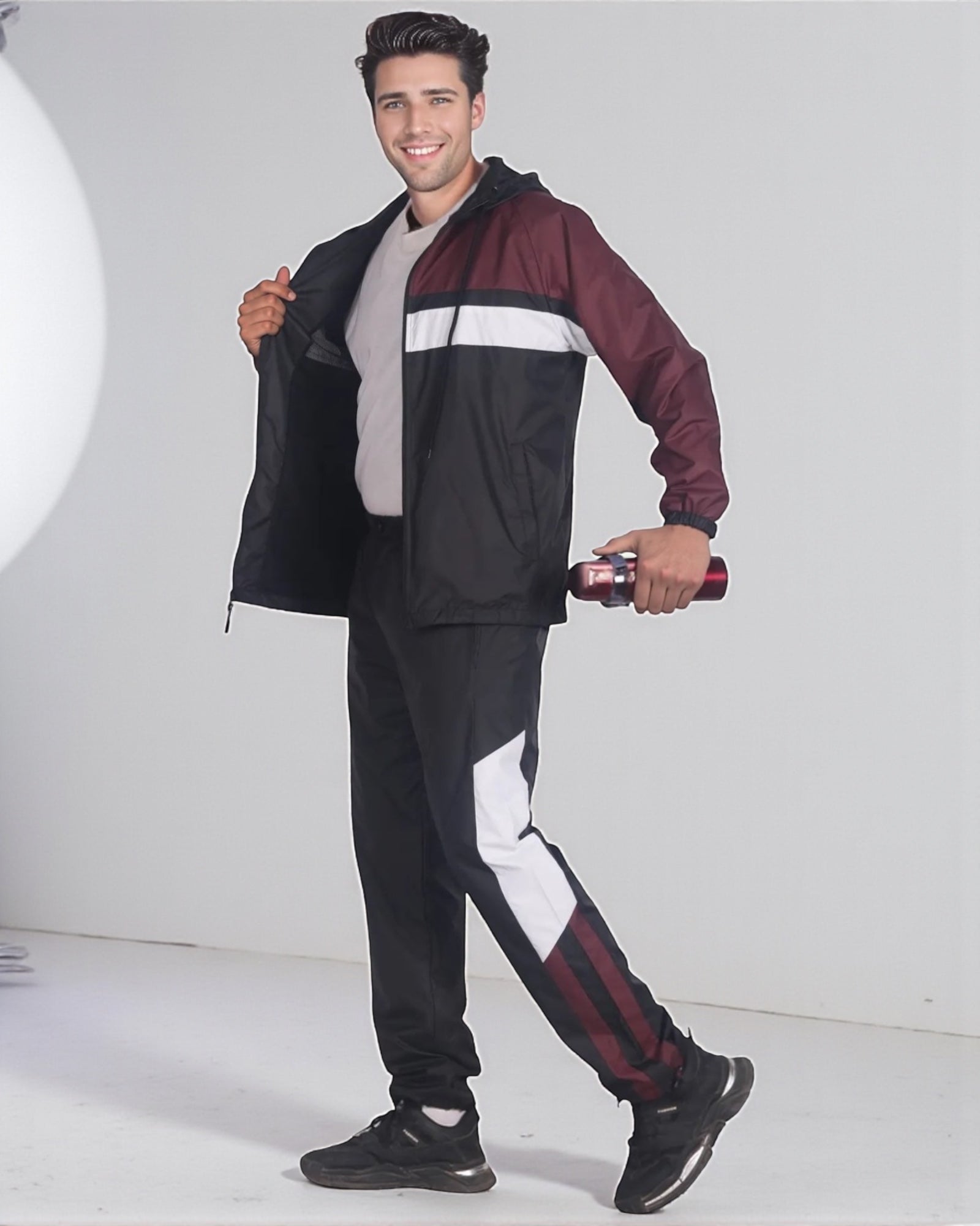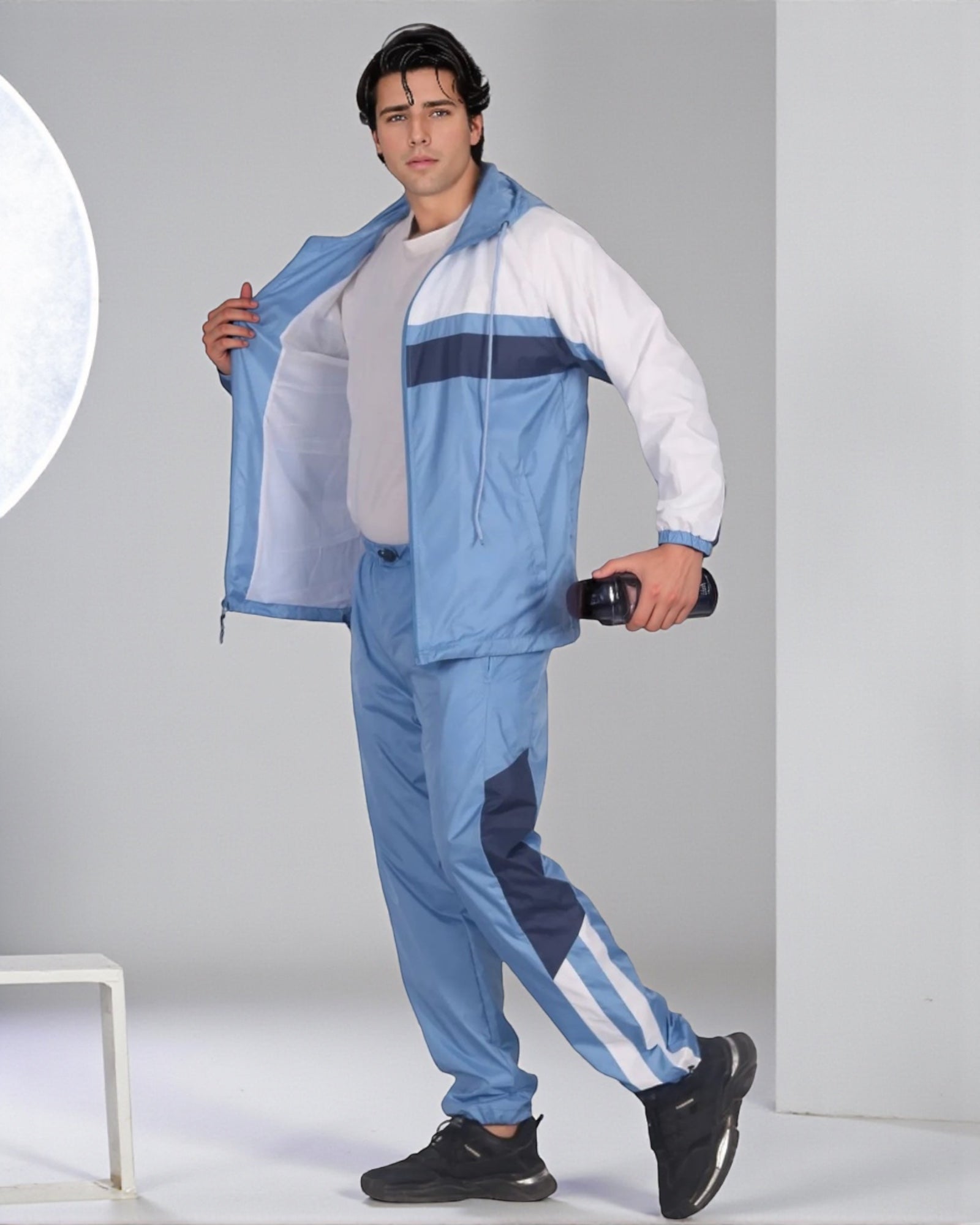 The Ridge windbreaker tracksuit is featured in a three tone color combination as a matching 2-piece outfit. The soft mesh lining absorbs sweat, making this outfit suitable for the GYM, on the sports field or just casual evening walks. Matching outfits have always been in the fashion senses and this fashion design tracksuit compliments current trends in a classy look.