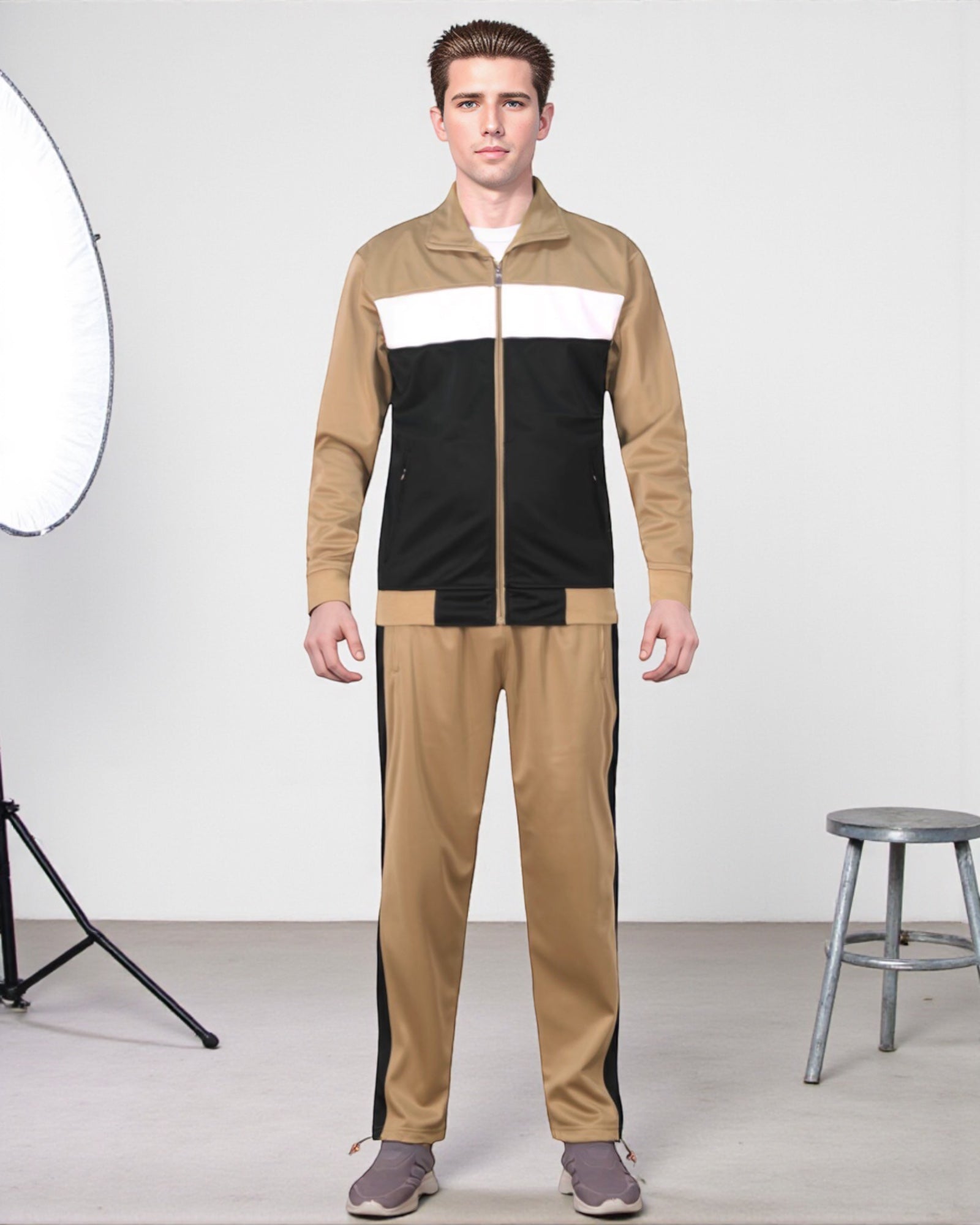 Men’s 2-Piece Tracksuit Traditional Coral Blocks Active Track Jacket and Track pants Outfit