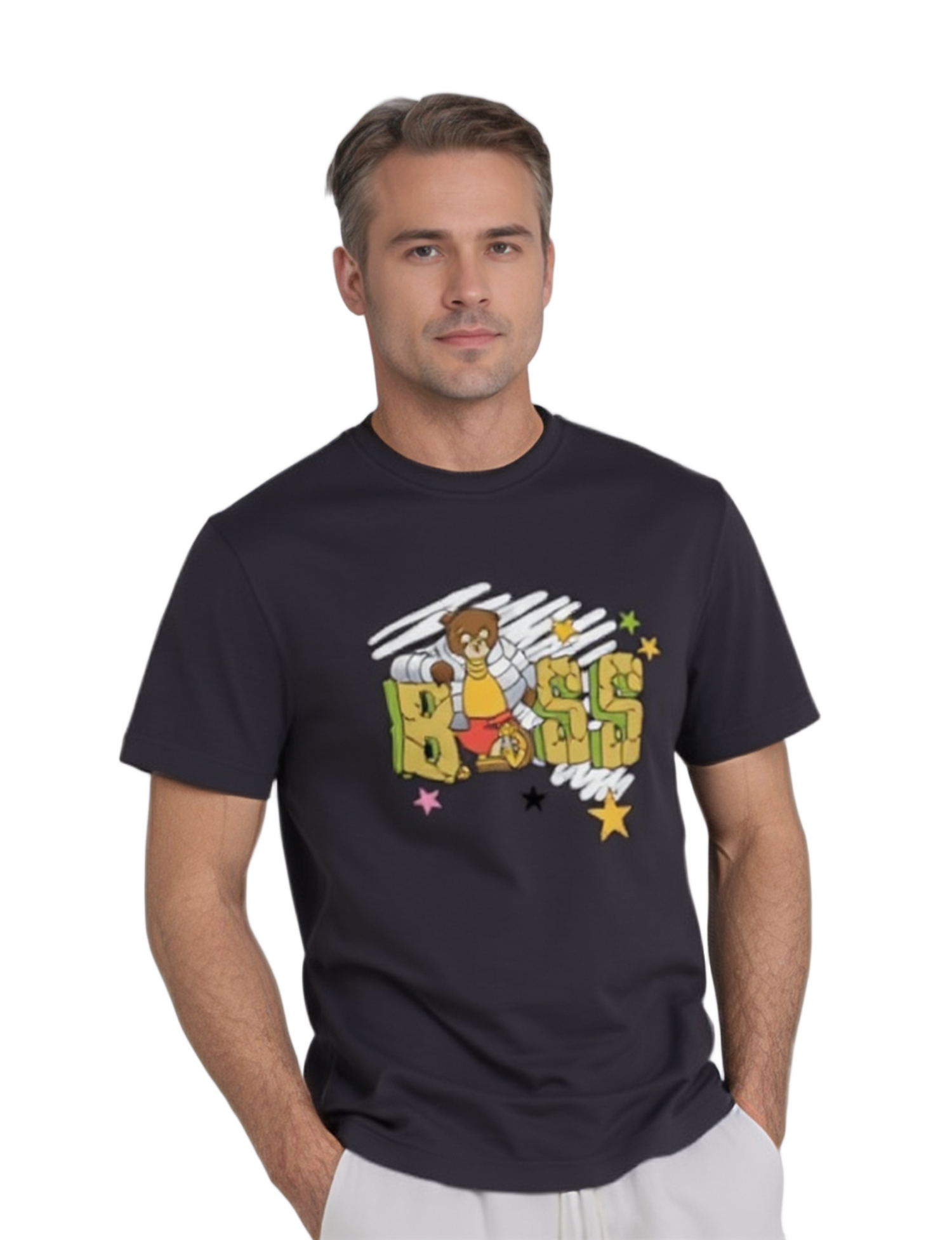 Elevate the casual look with the Boss Bear Graphic Printed Cotton T-shirt. Made with premium cotton for a luxurious feel, this t-shirt features a stylish graphic of a boss bear, making it perfect for the confident and sophisticated man.