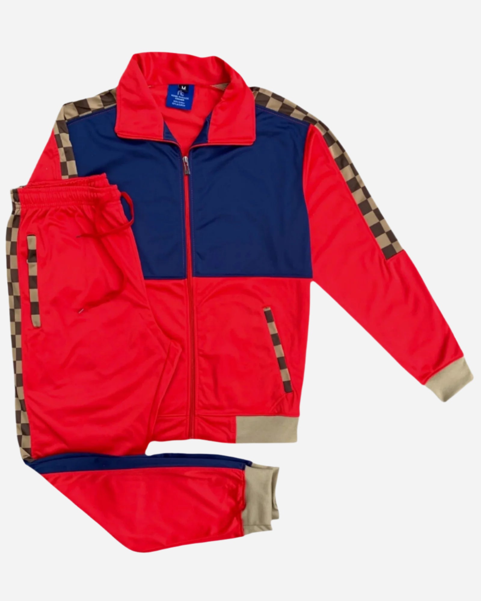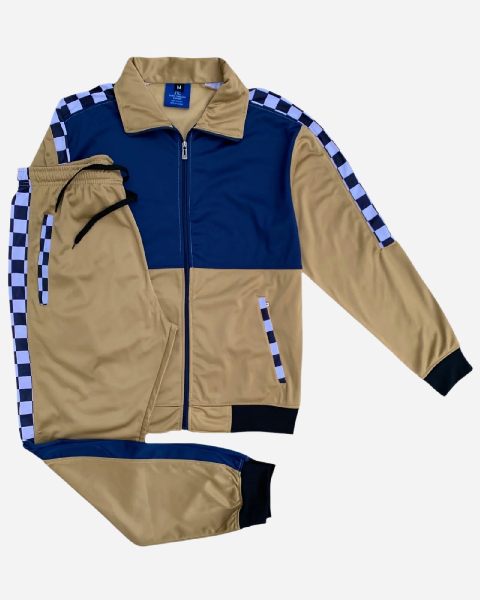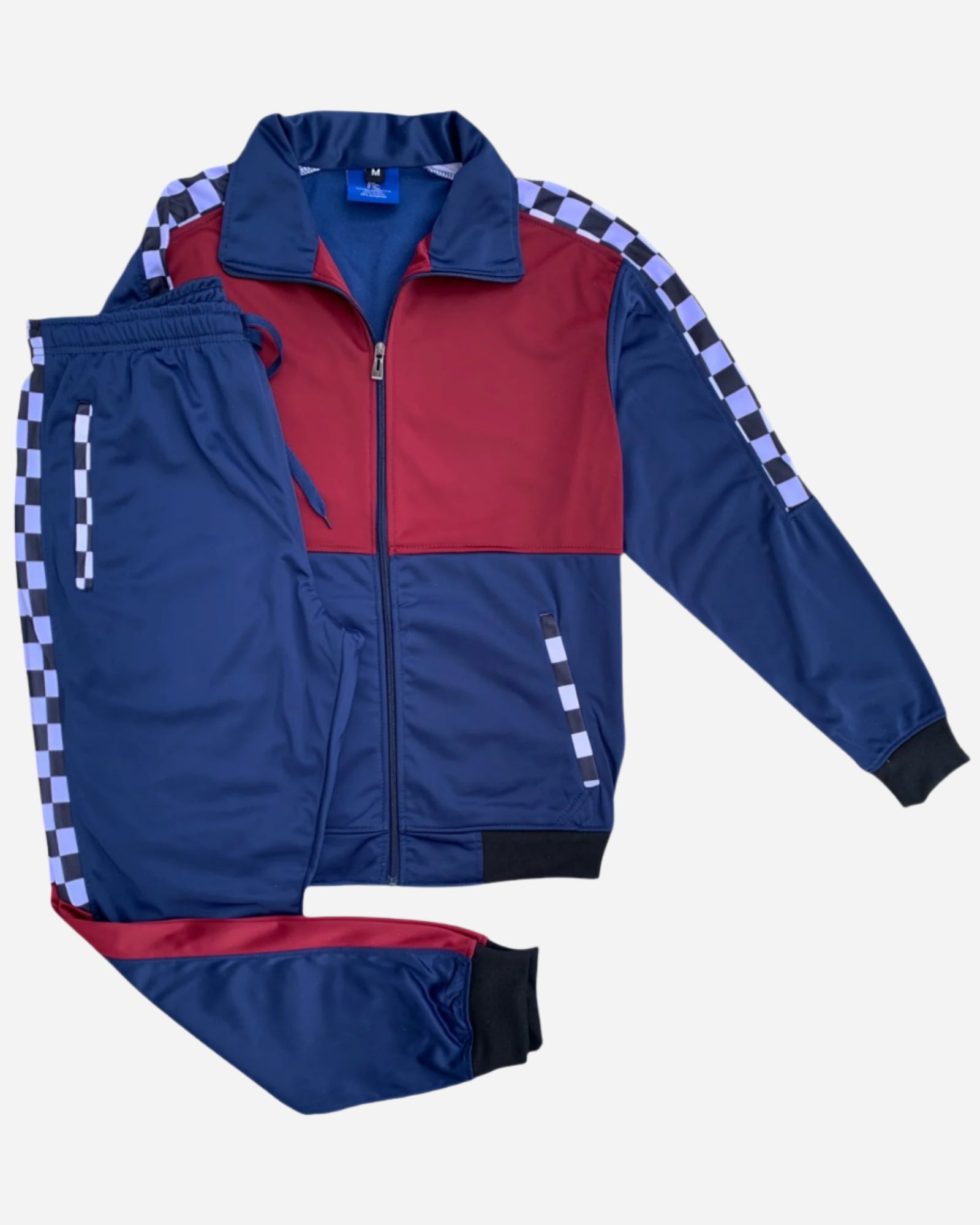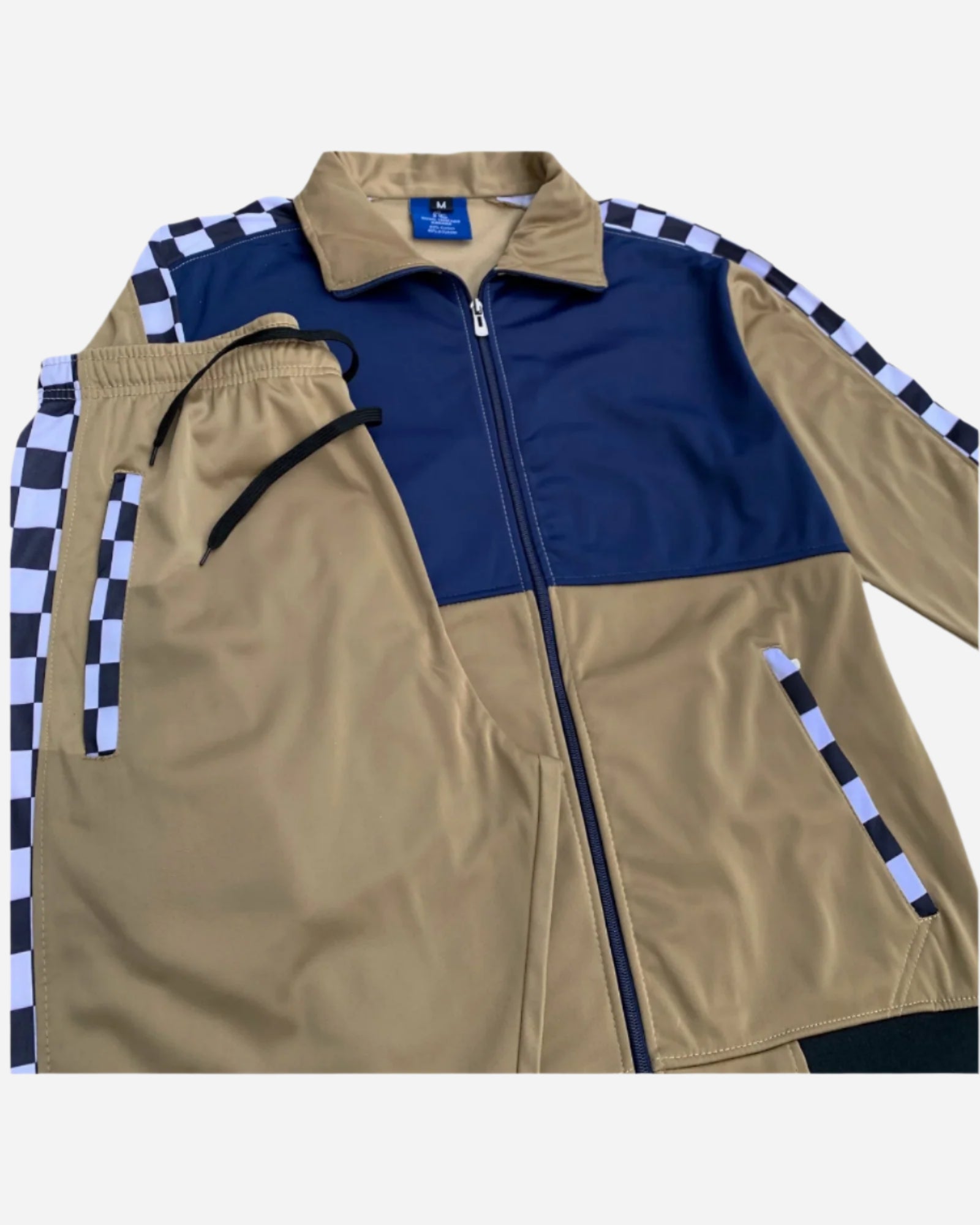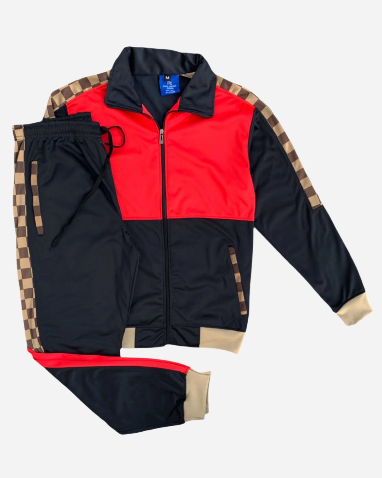 Men’s 2 piece Checker box Jogger style Jogging Suit Track Jacket & Track pants Matching Suit