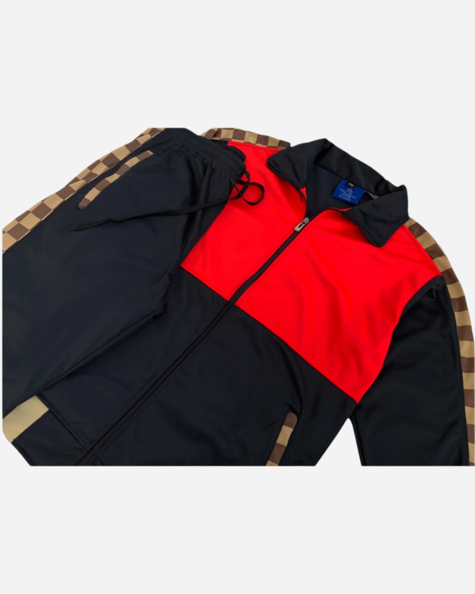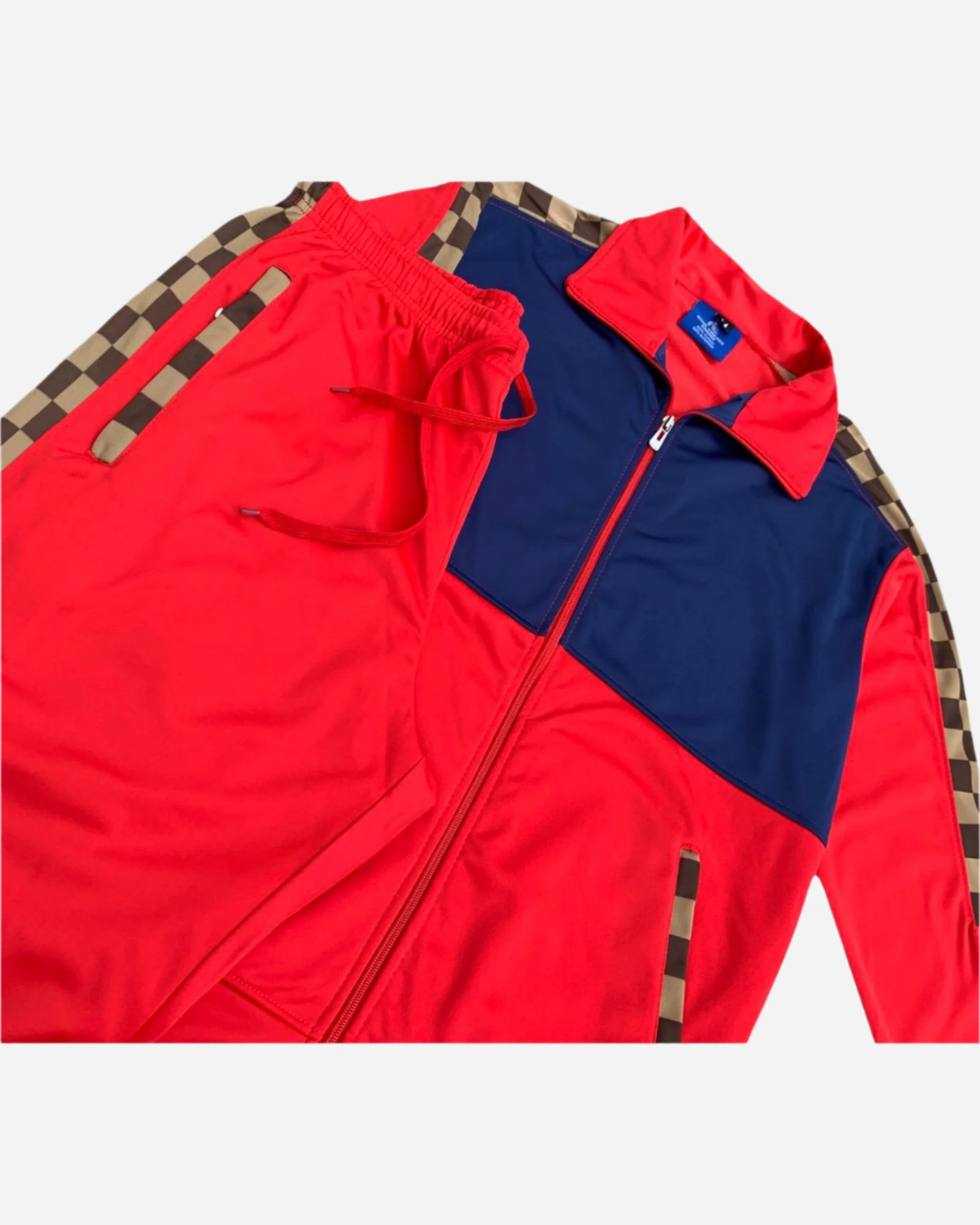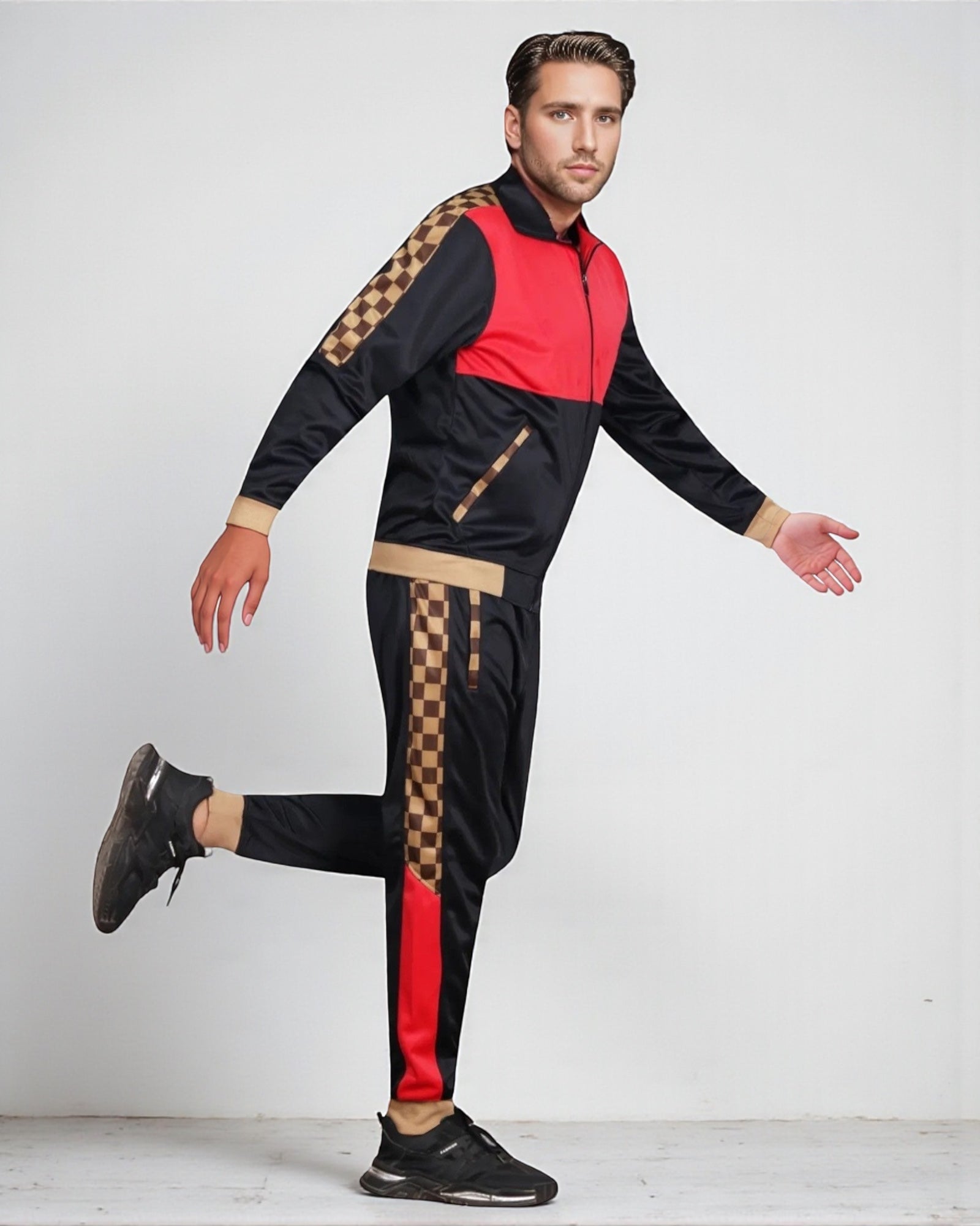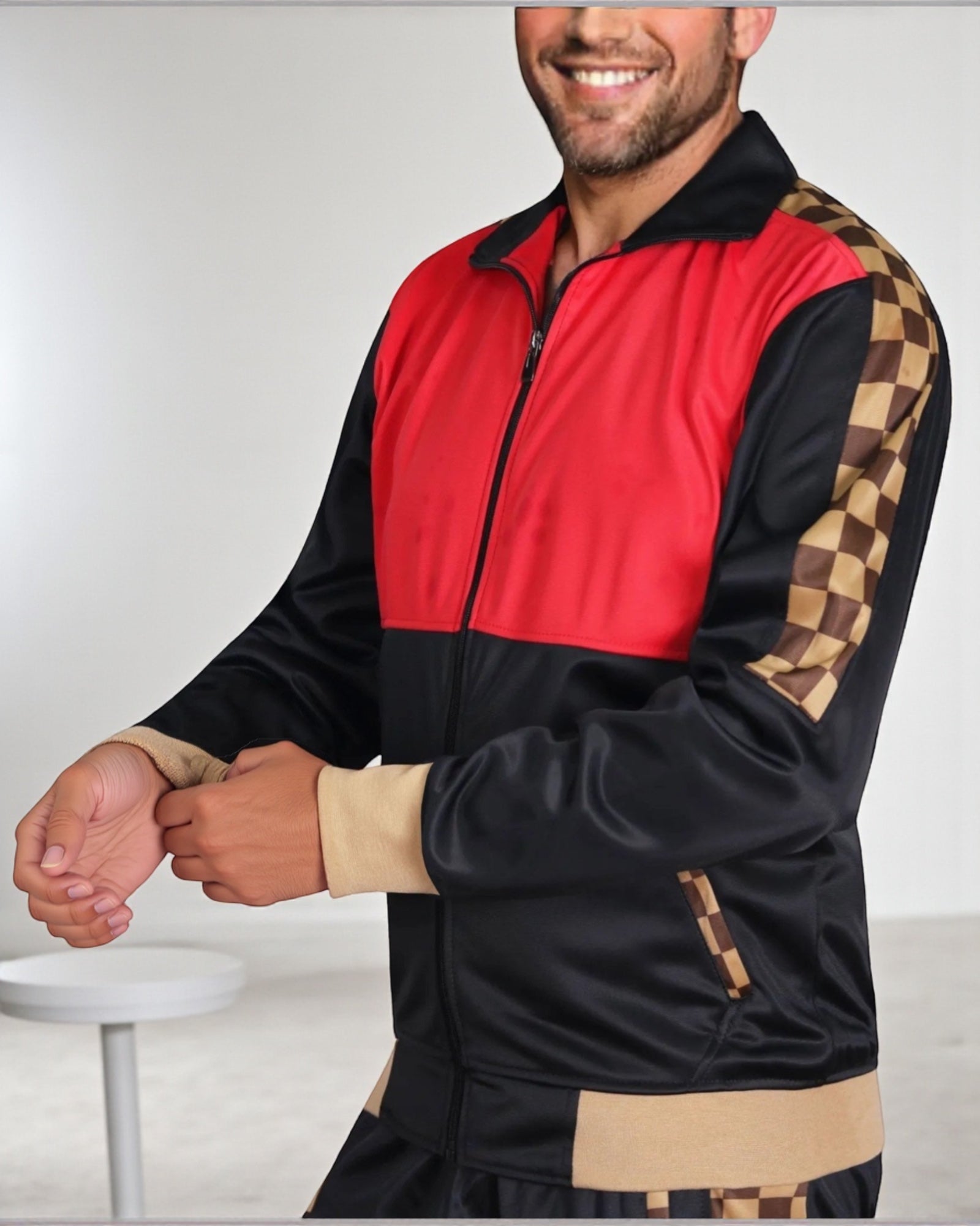 Men’s 2 piece Checker box Jogger style Jogging Suit Track Jacket & Track pants Matching Suit