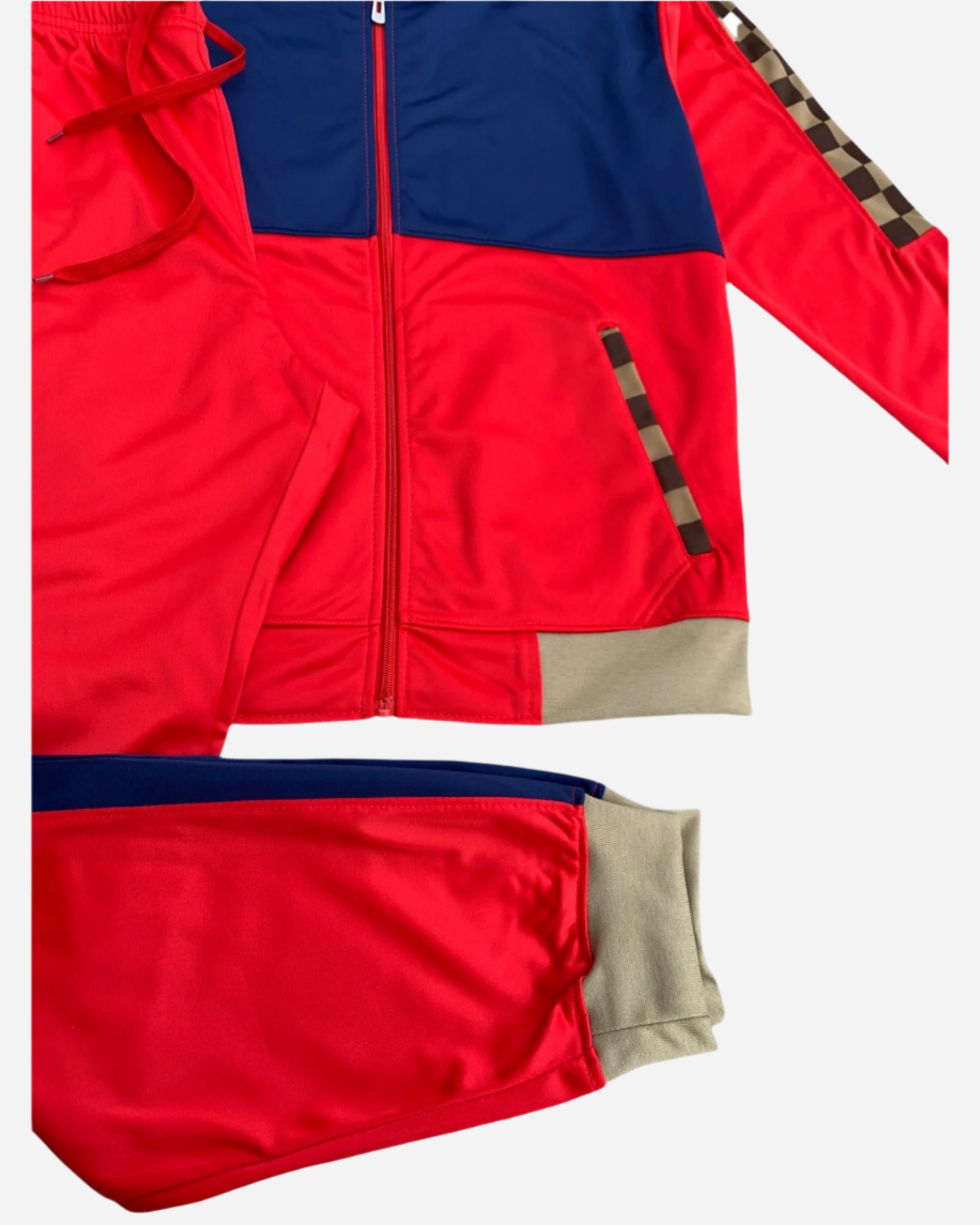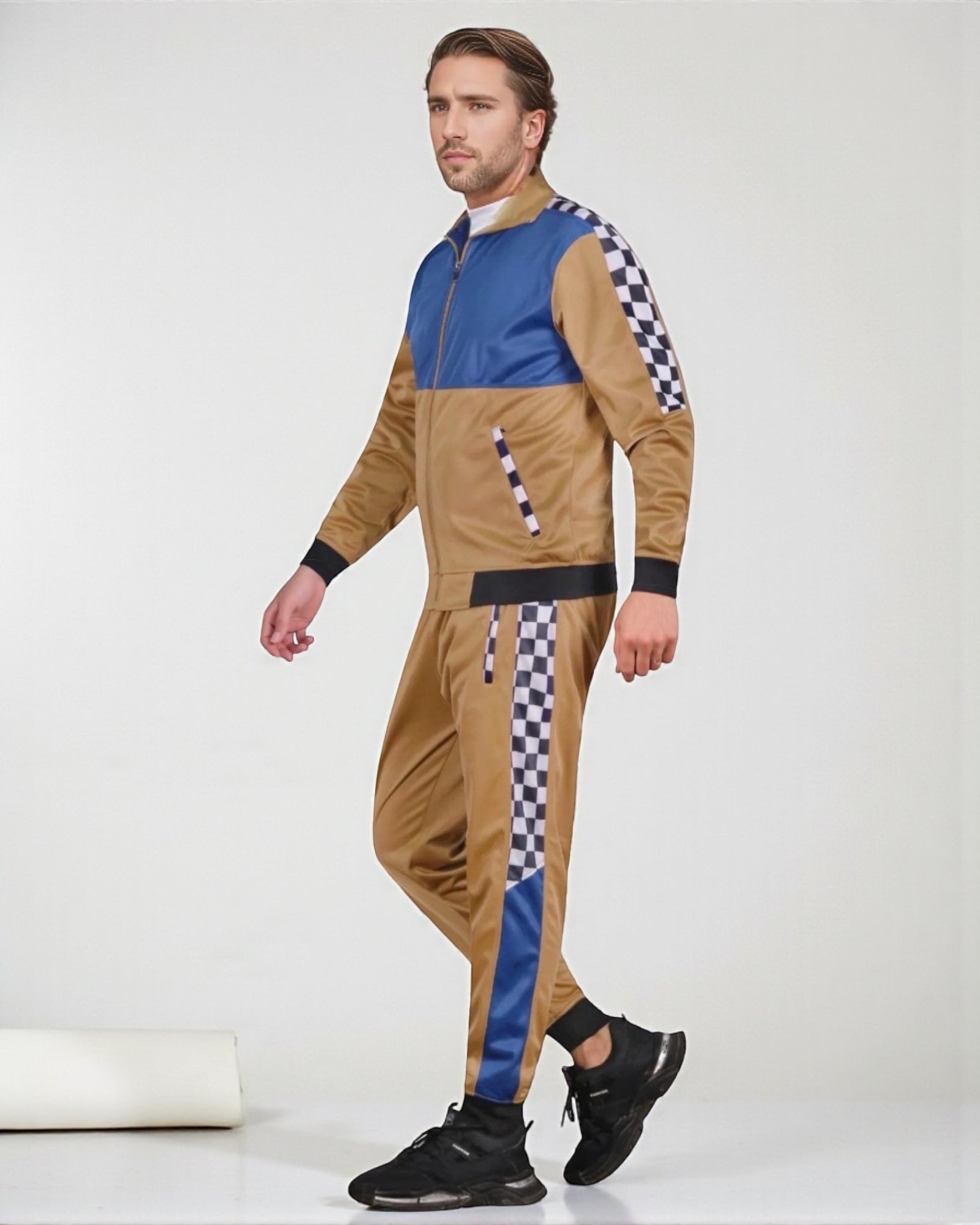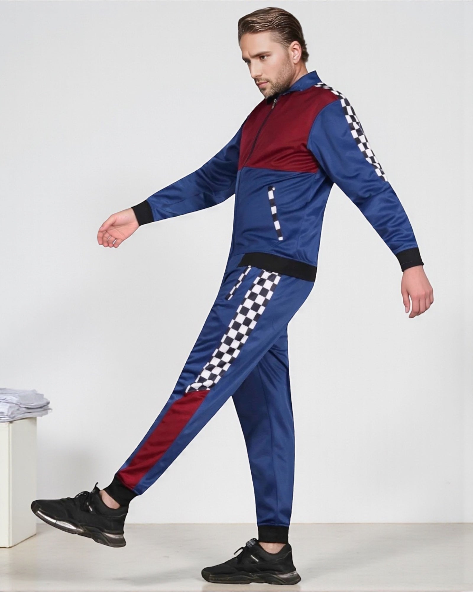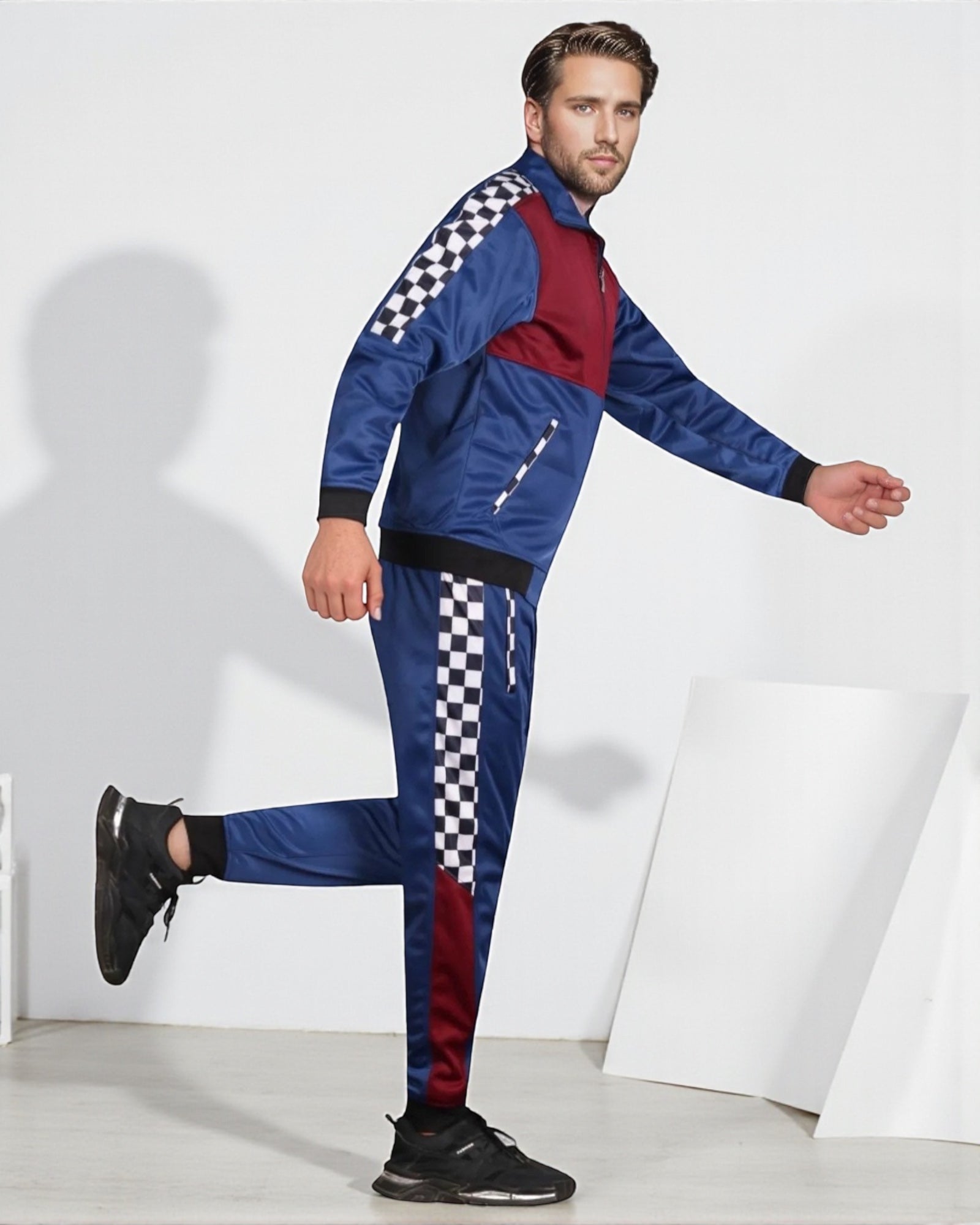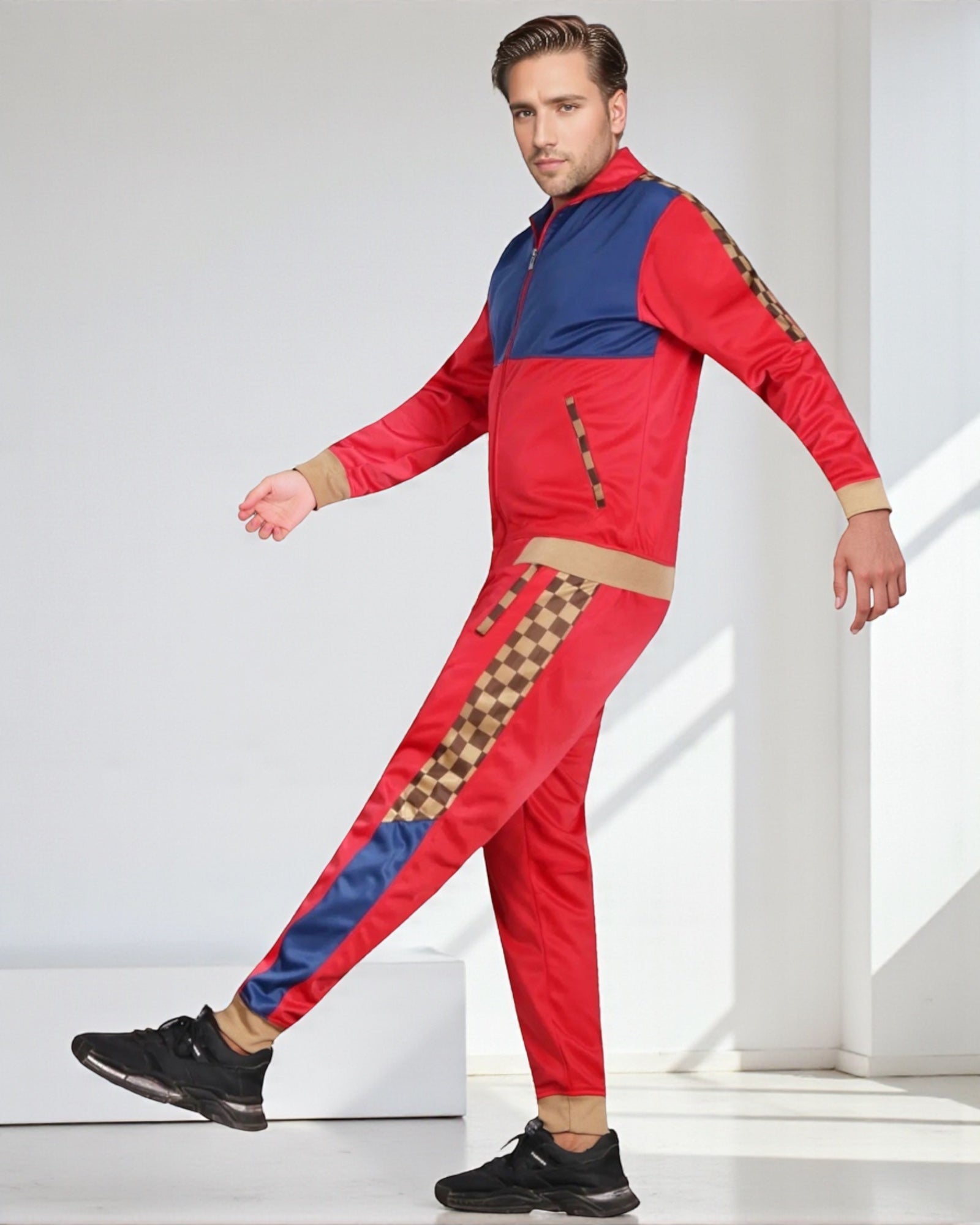 Men’s 2 piece Checker box Jogger style Jogging Suit Track Jacket & Track pants Matching Suit