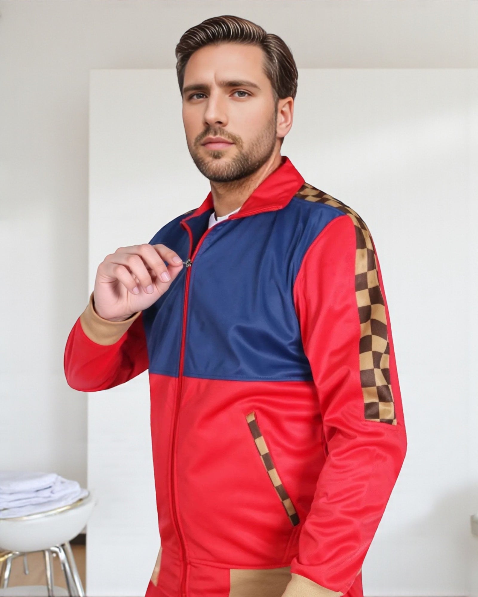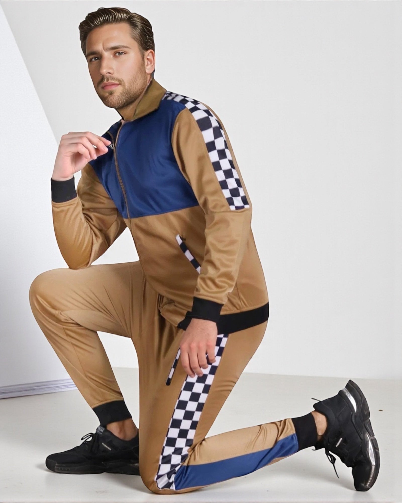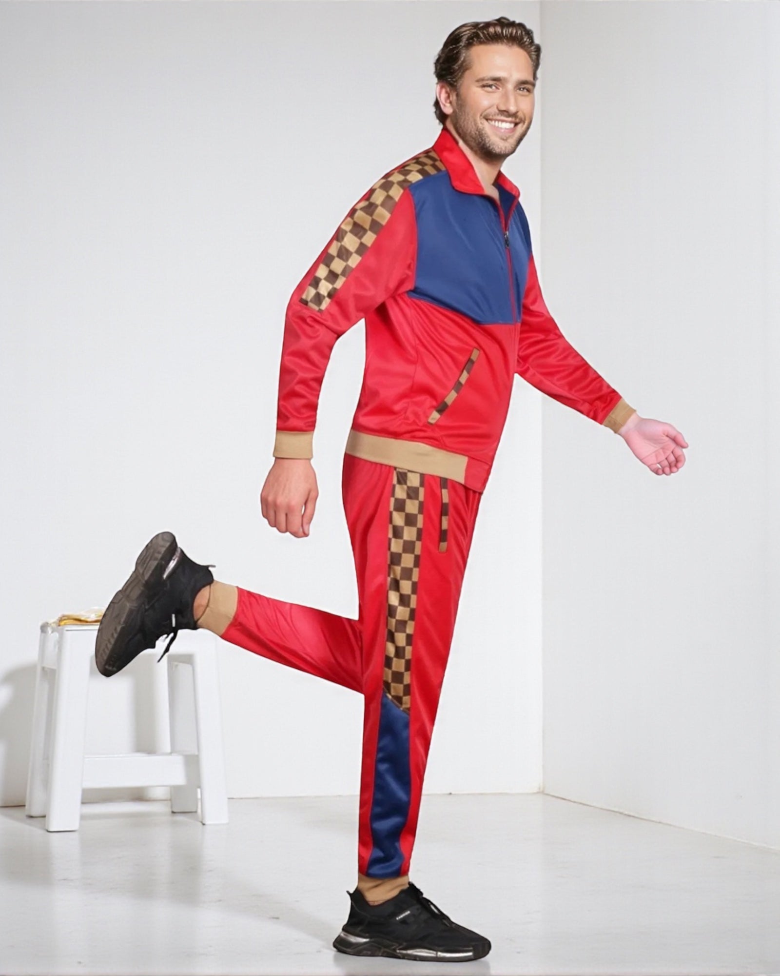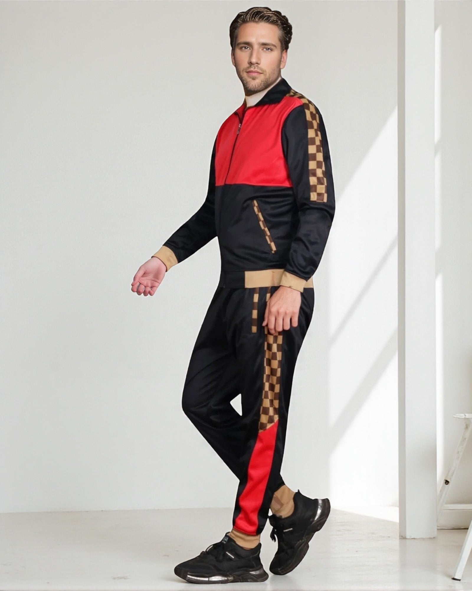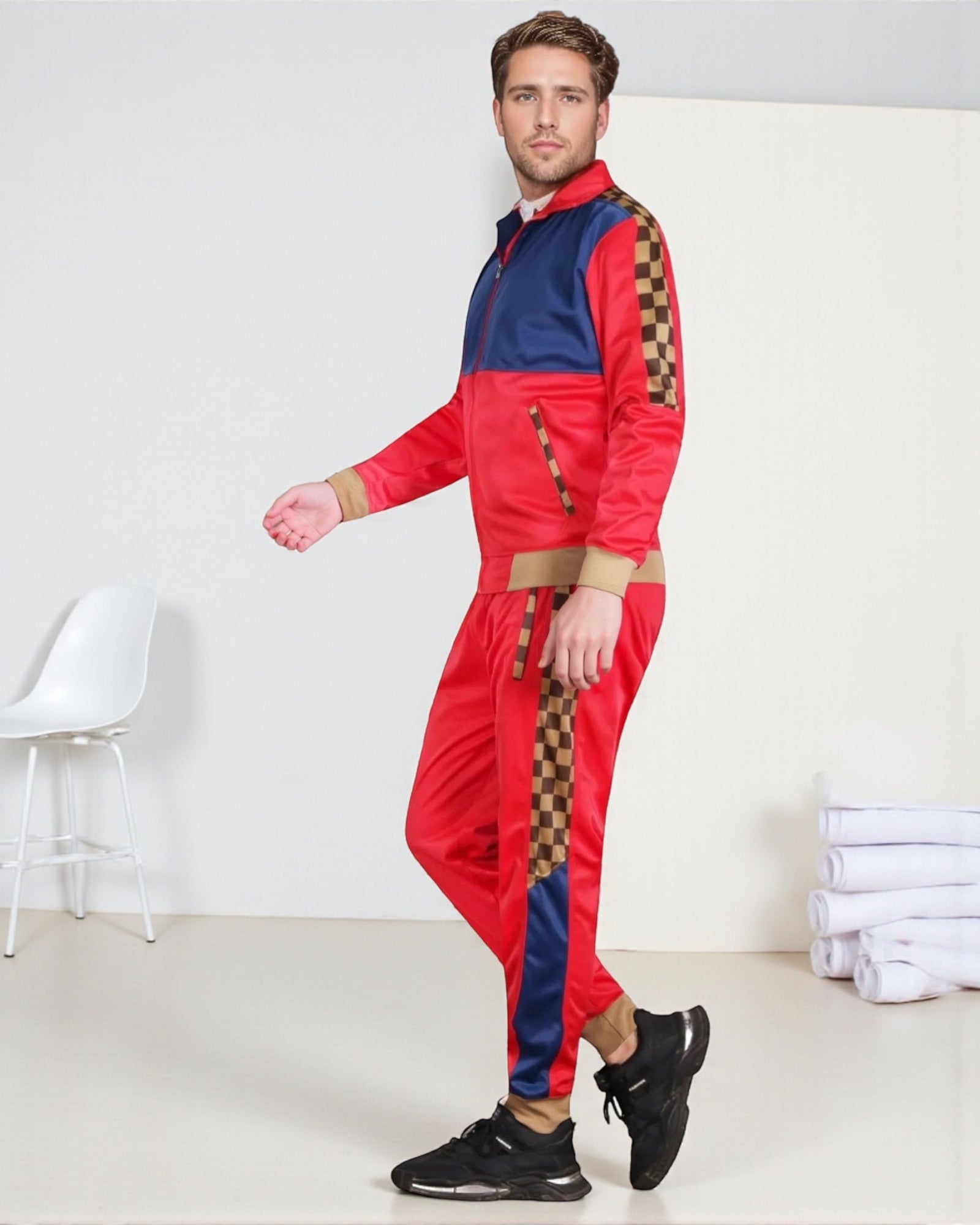 Men’s 2 piece Checker box Jogger style Jogging Suit Track Jacket & Track pants Matching Suit