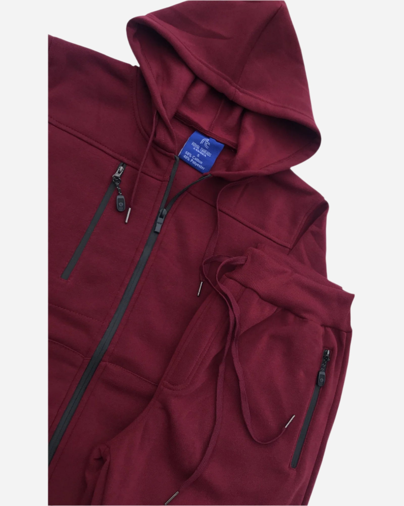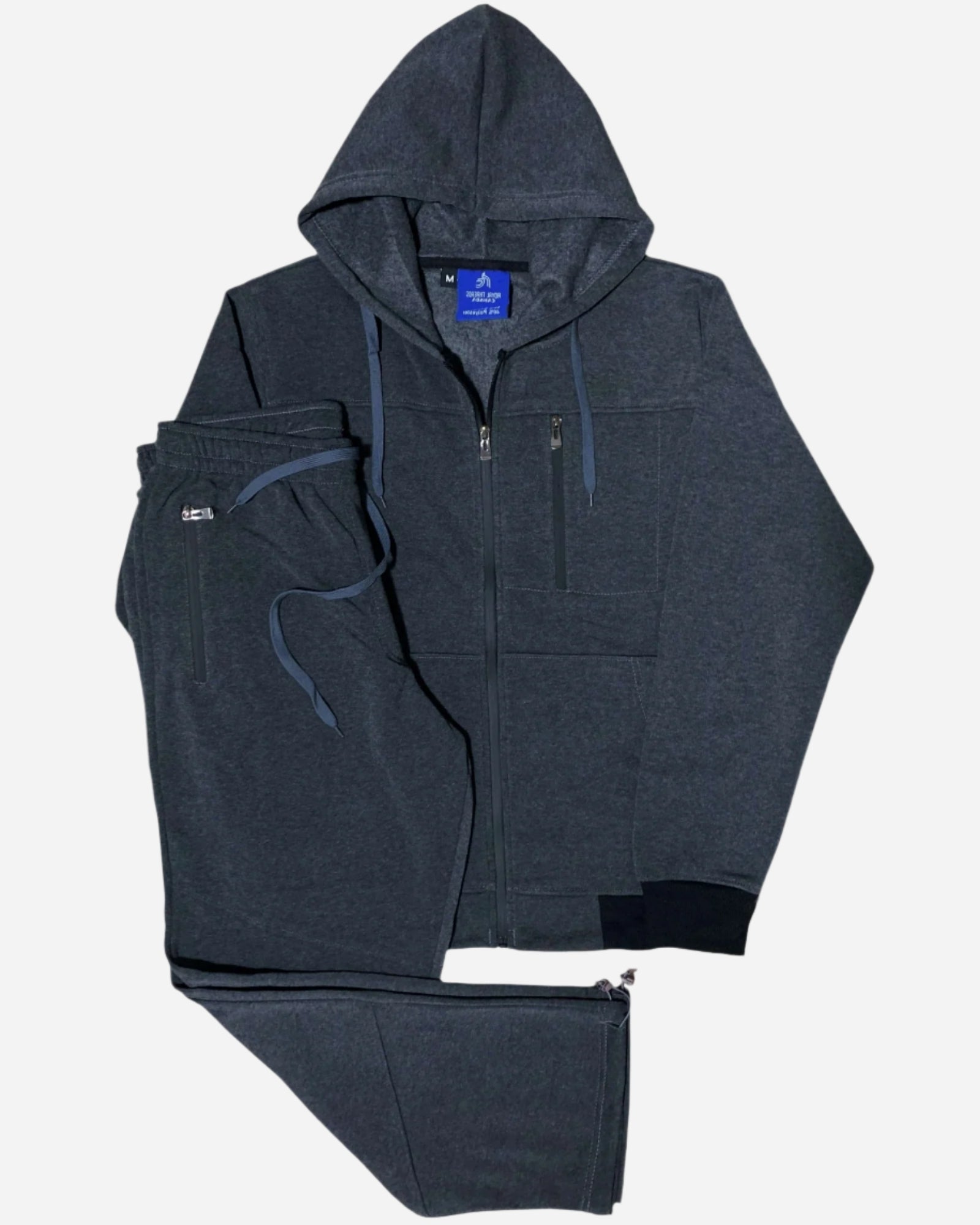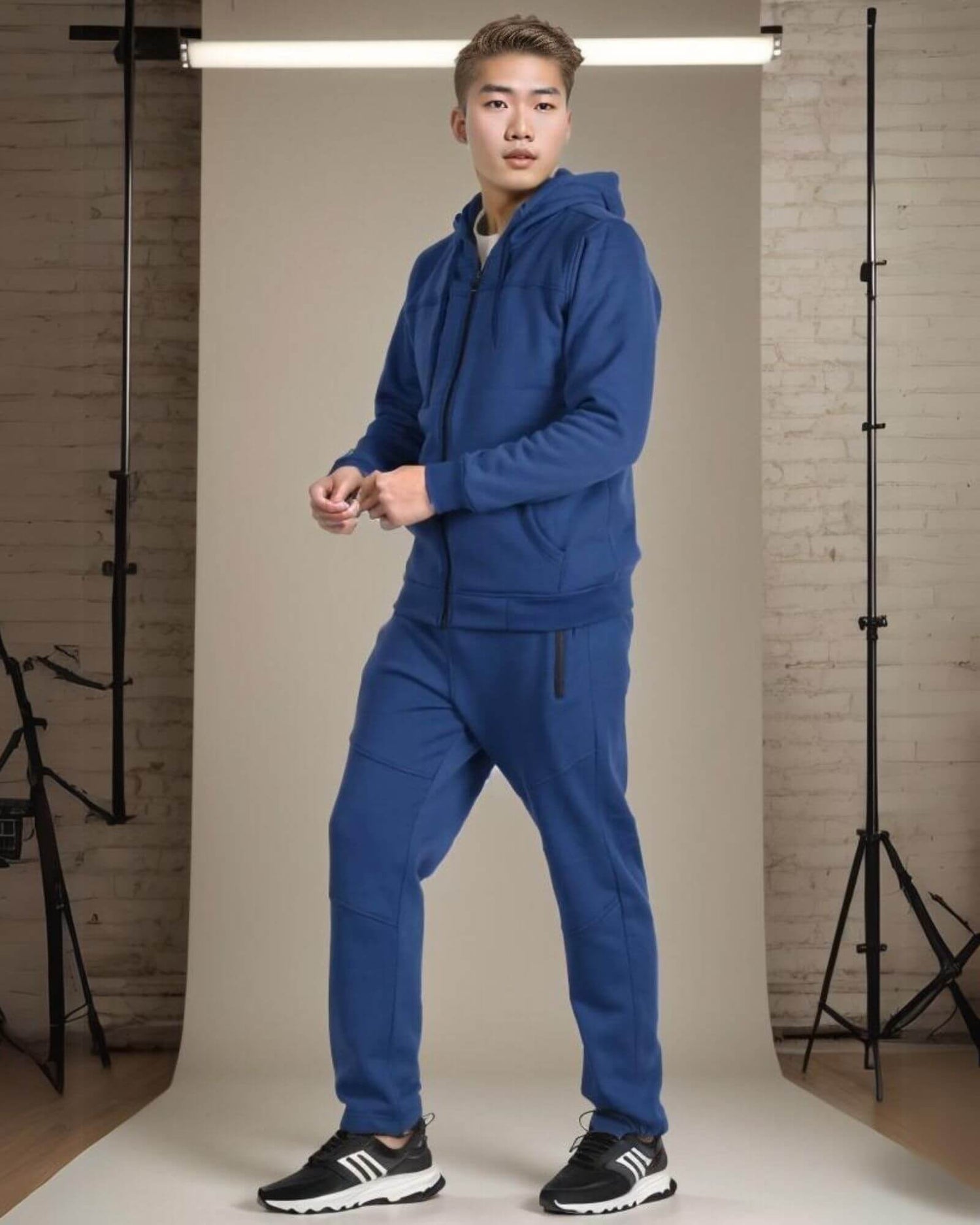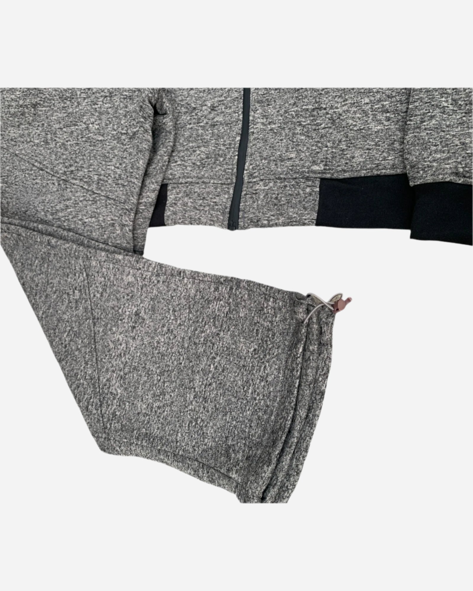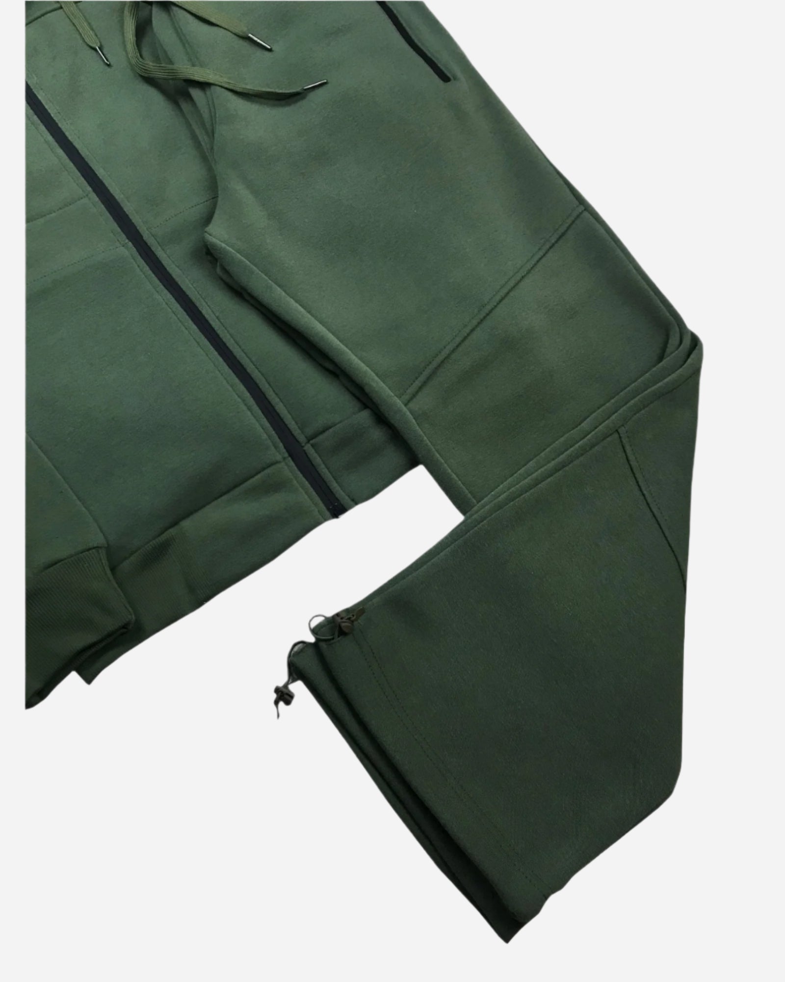 - Matching straight-cut sweatpants with adjustable ankle drawstrings.