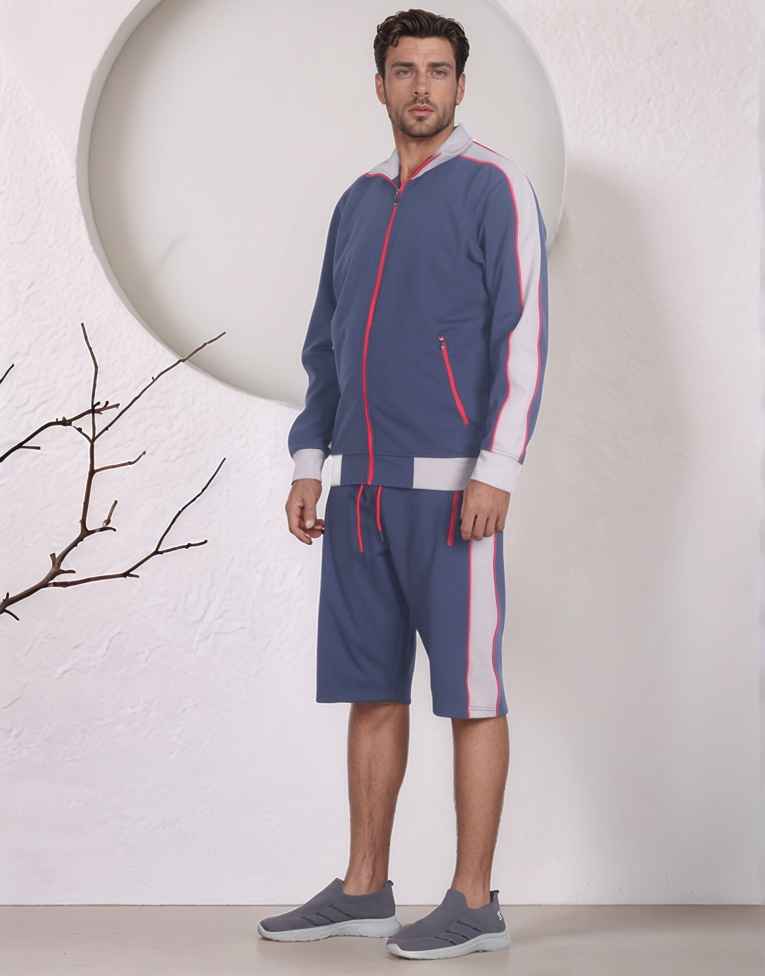 Enhance your workout with our Men's Summer Tracksuit GYM Set. The track jacket and shorts are perfect for staying cool and comfortable during your summer workouts. Stay stylish and active with this essential set.
