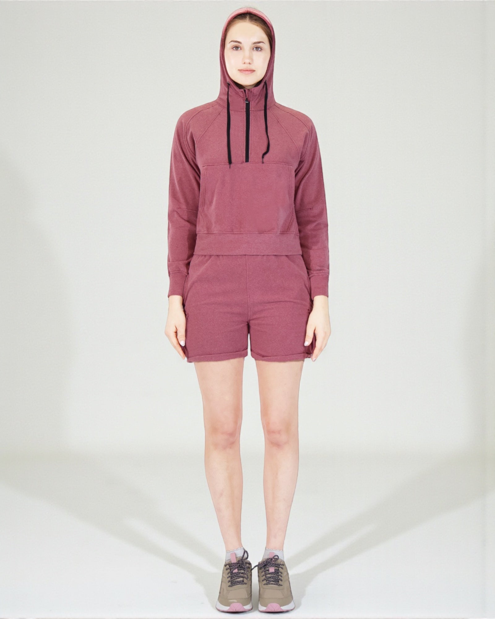 Women’s Half-Zip Hoodie and Shorts Lounge Set