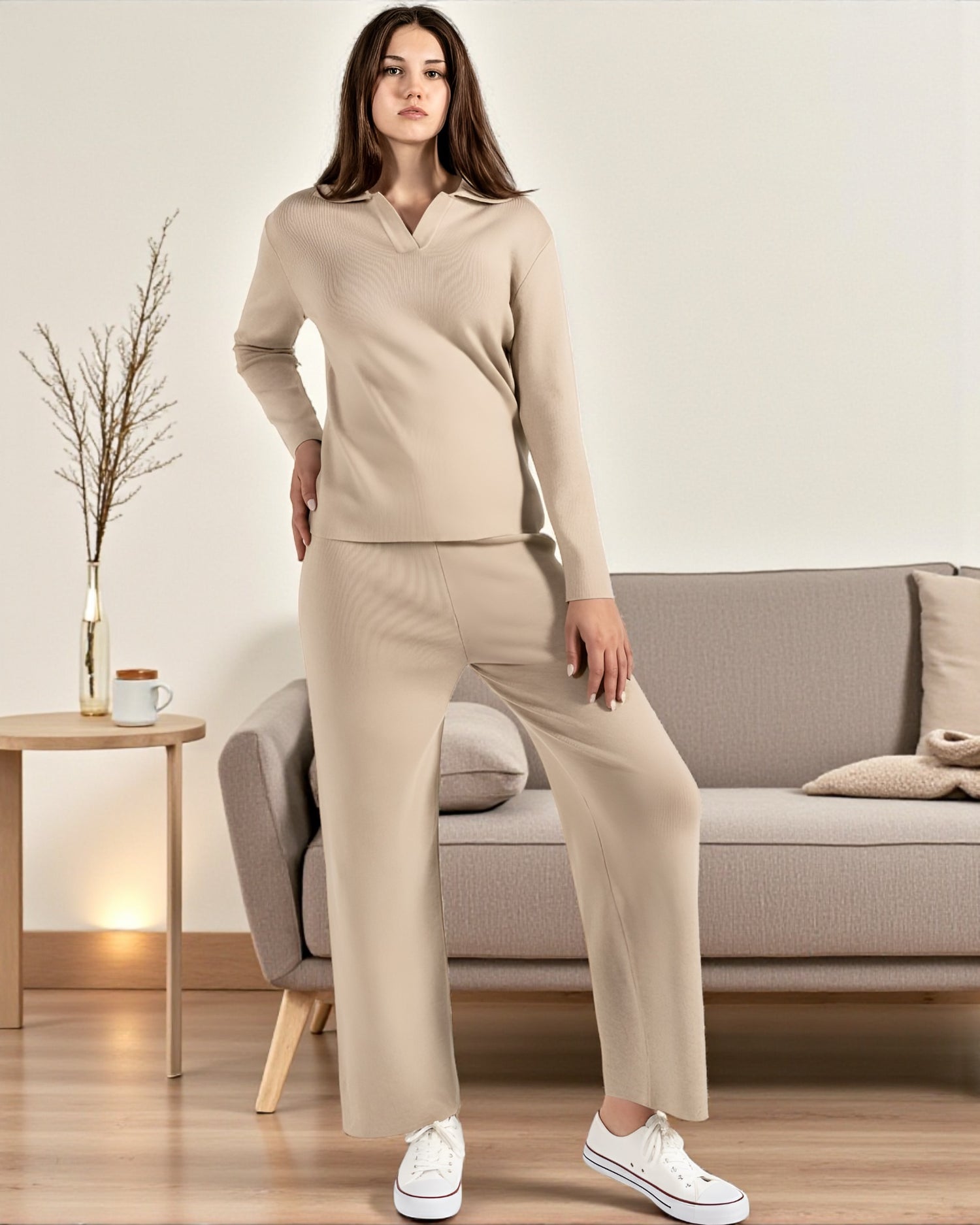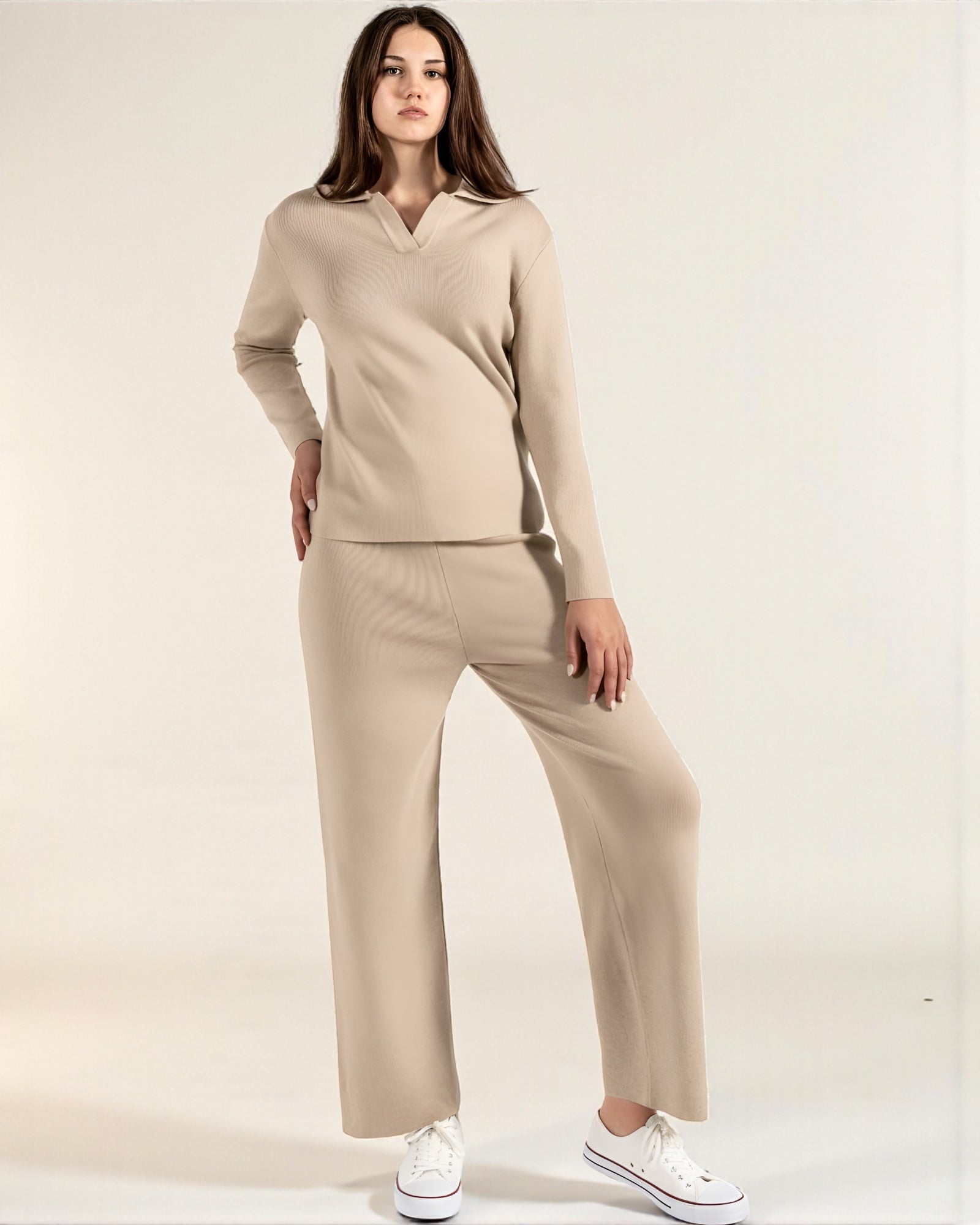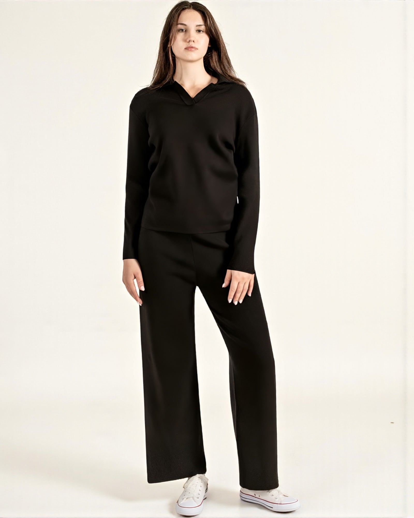 The split-collar top and flowing wide-leg pants were crafted to move gracefully with you — whether you’re lounging at home, meeting friends, or stepping out for a chic casual look. Made from a buttery-soft, breathable knit, this set delivers lasting comfort, stretch, and style you’ll want to live in season after season.