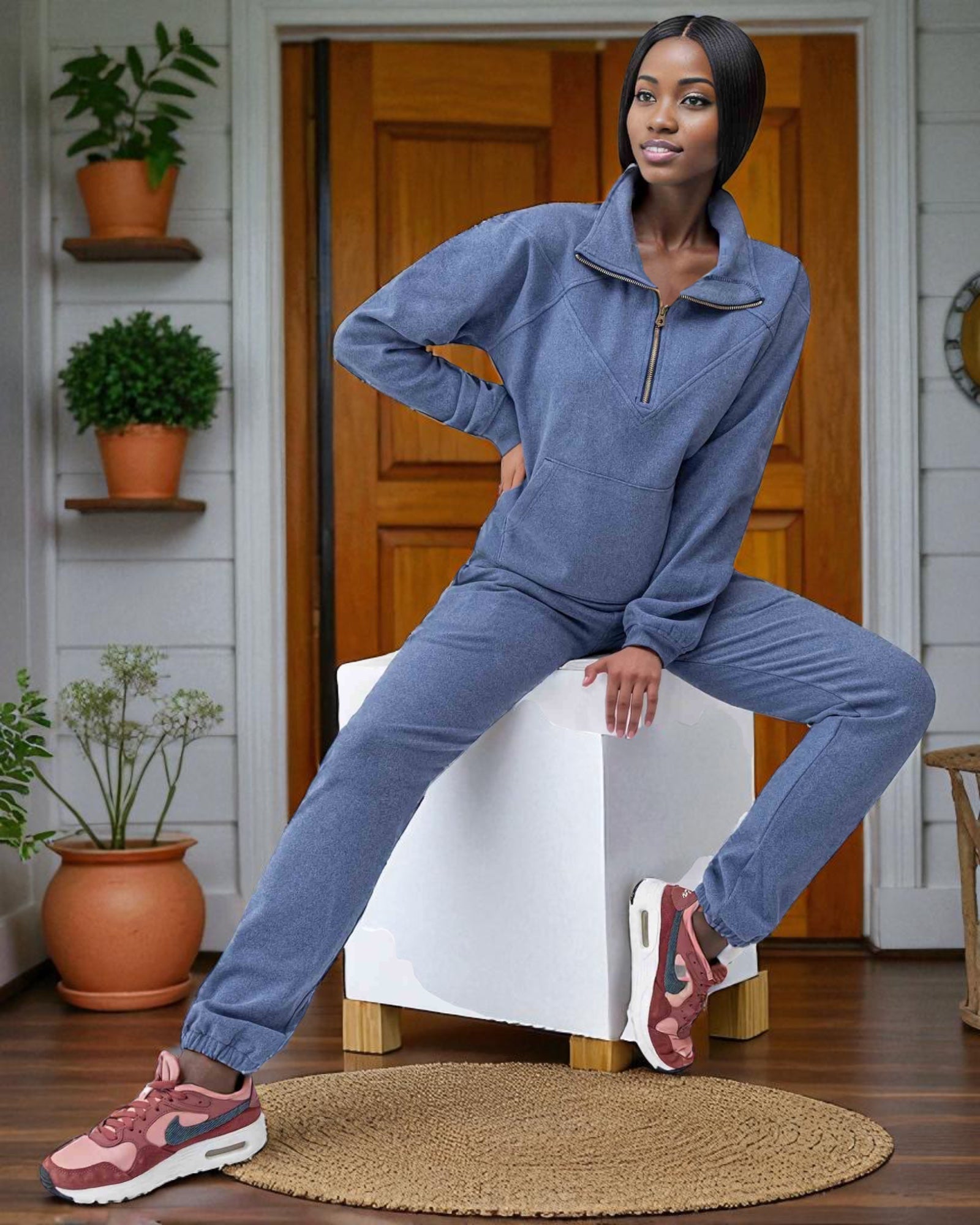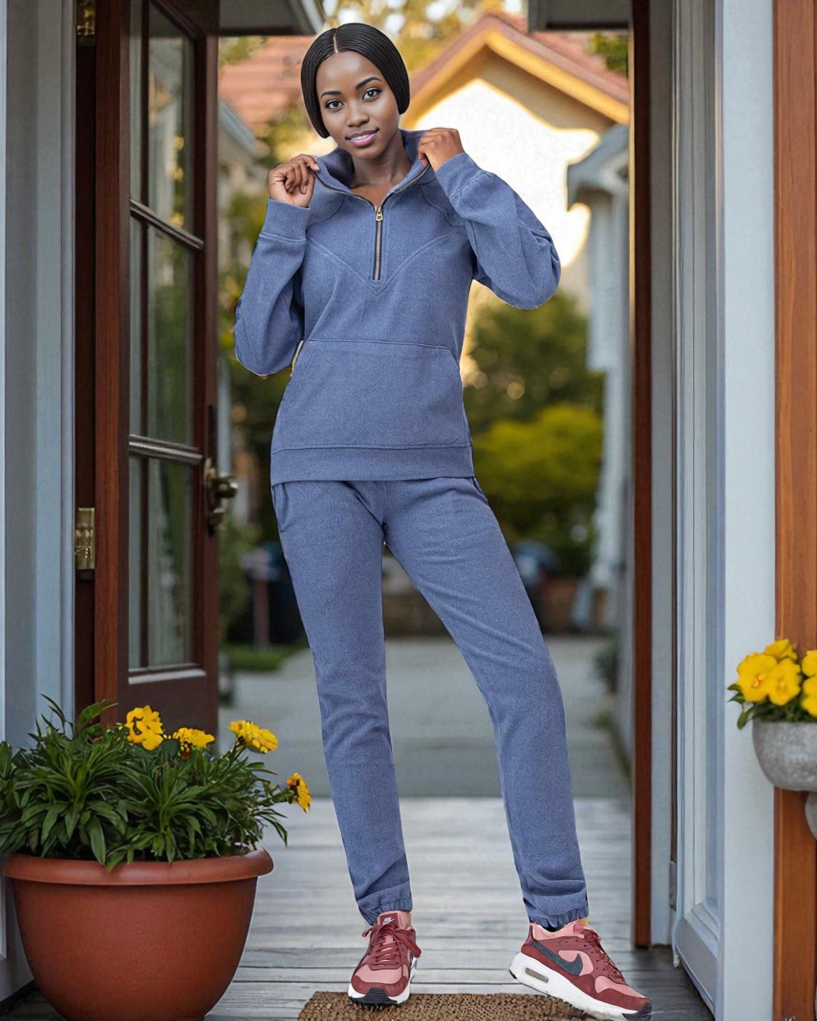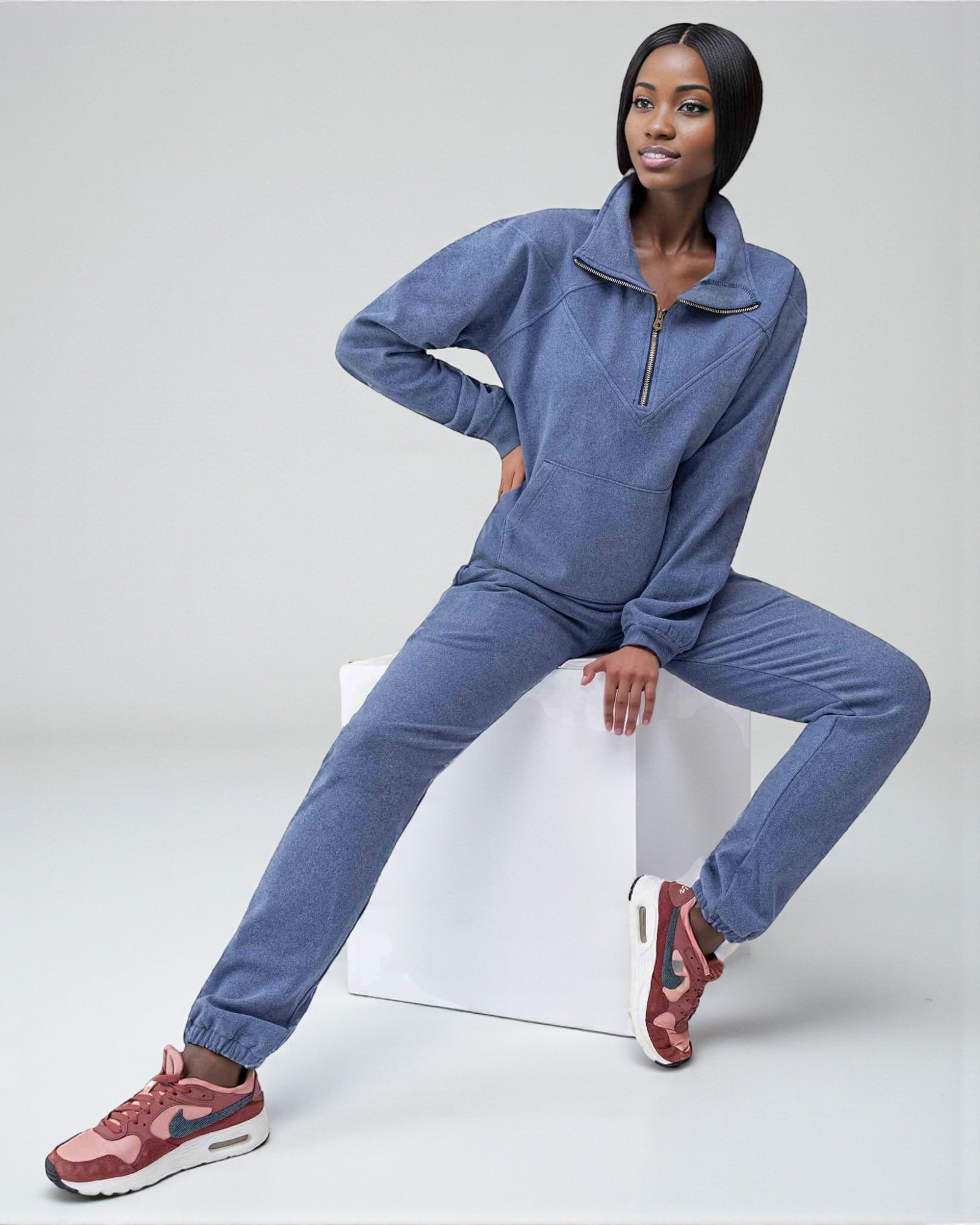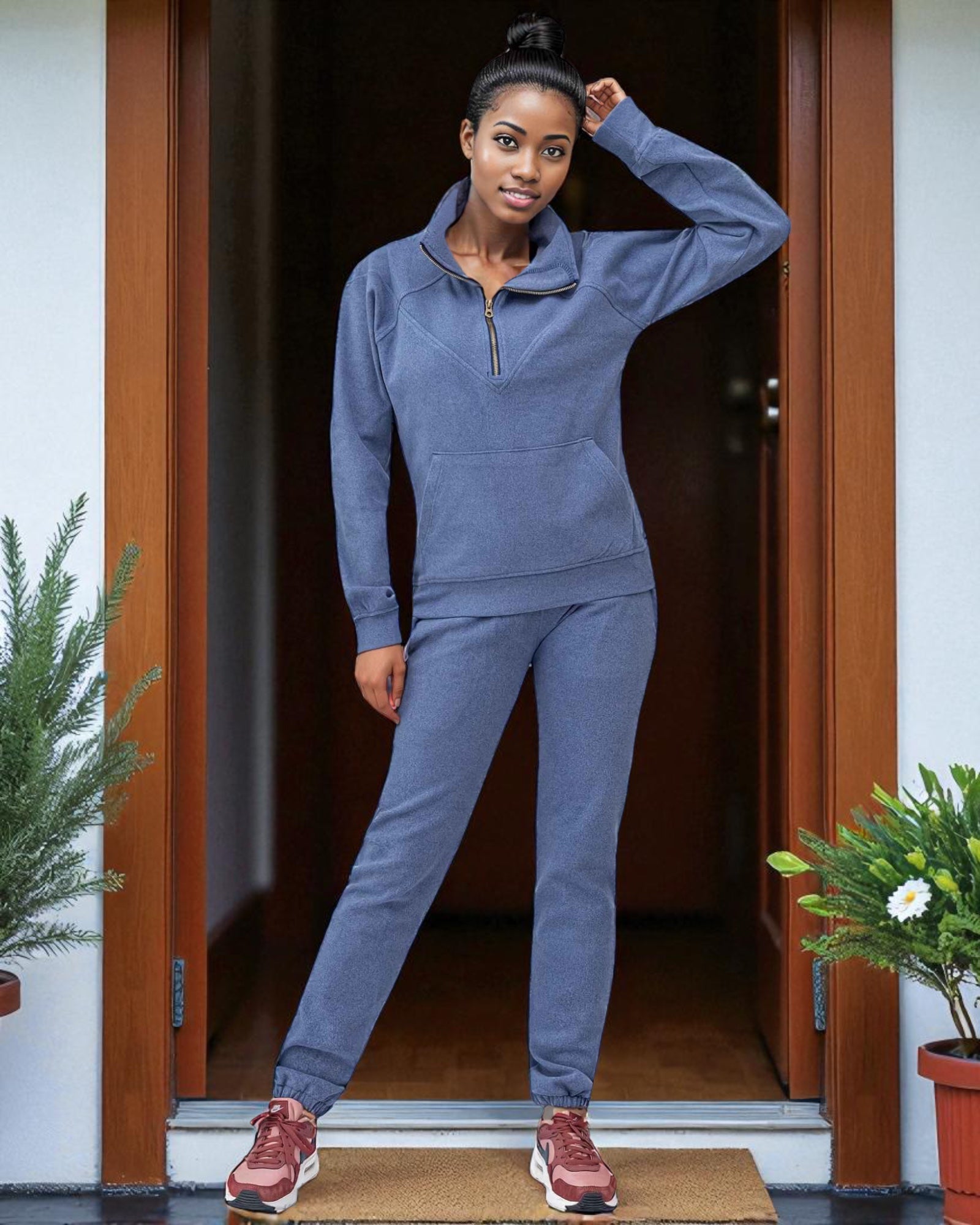 Stay Warm and Stylish this Winter with our Women's Qzip Sweat Suits. These sweat suits are expertly designed to provide both warmth and style during the colder months.