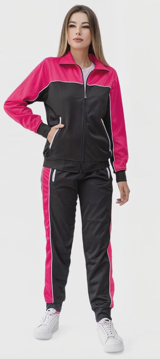 This women's 2-piece tracksuit features a full track jacket and jogger track pants. Its a perfect loungewear set Stay stylish and comfortable with this versatile tracksuit matching set perfect for workouts or casual wear. Made of a premium quality lounging outfit materials, this Loungewear set provides a flattering fit and long-lasting wear. Upgrade your wardrobe with this co Ord set.