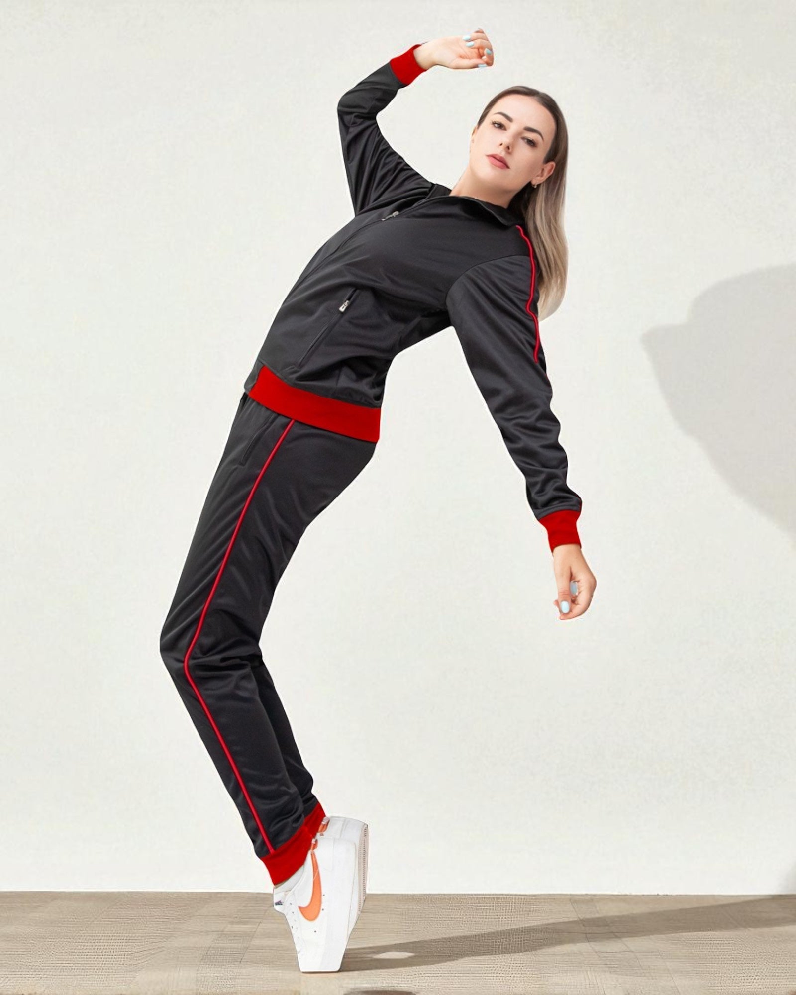 Upgrade your leisure wardrobe, with this classic lounge outfit matching tracksuit. Crafted a premium track material, this Jogging Suit offers both style and comfort. The perfect Lounge Outfit for any activity, it features jogger trackpants with a full zip up track jacket design. Elevate your workout routine with this must-have jumpsuit.