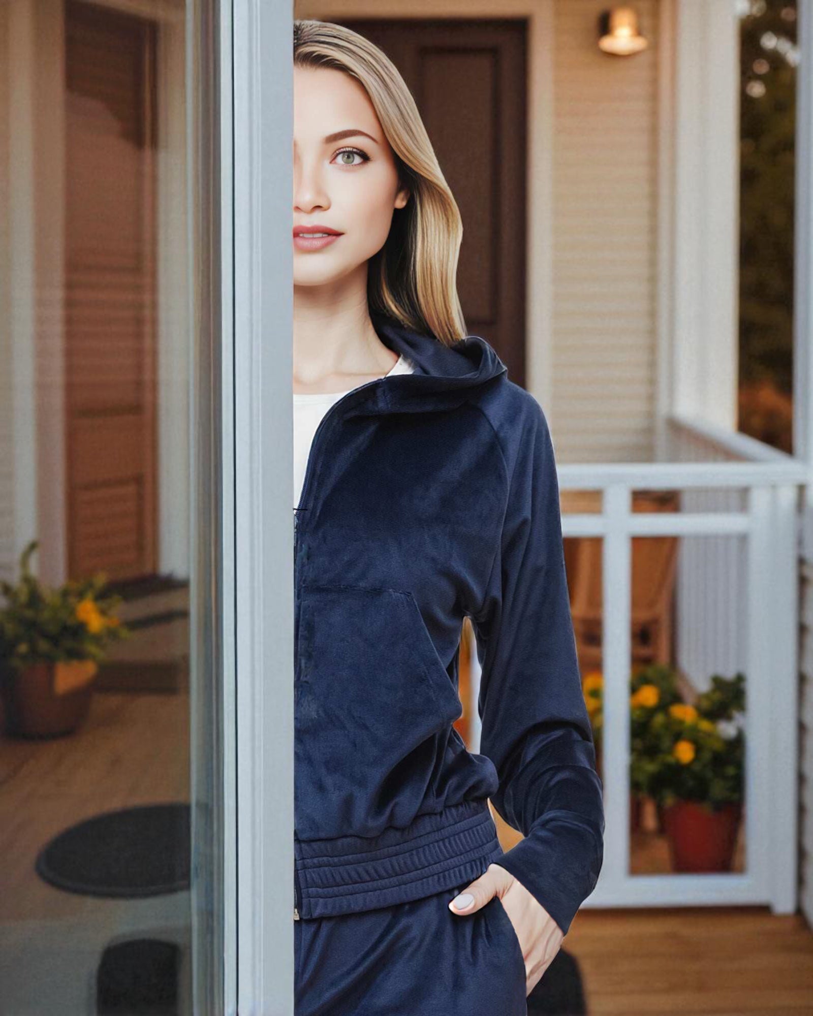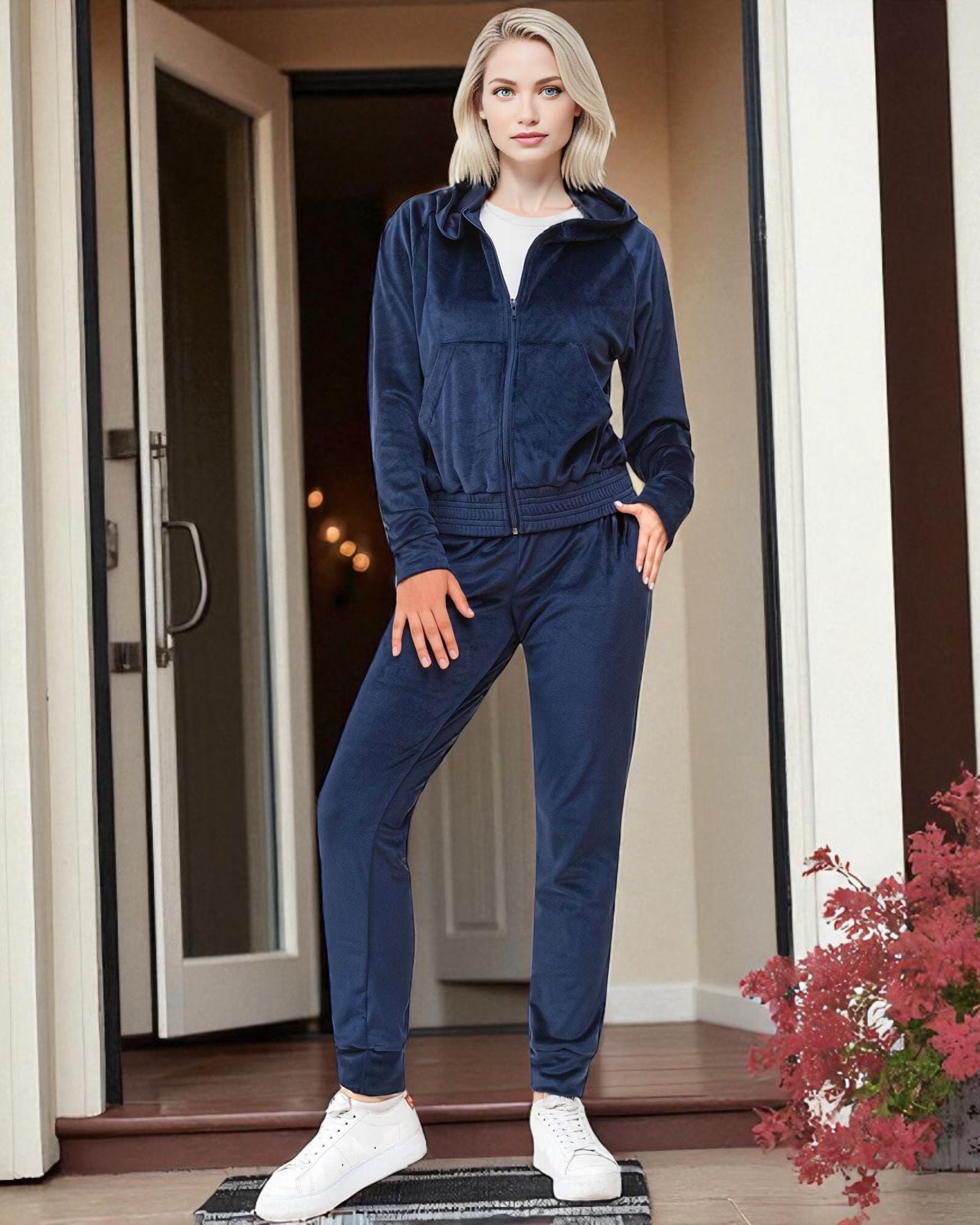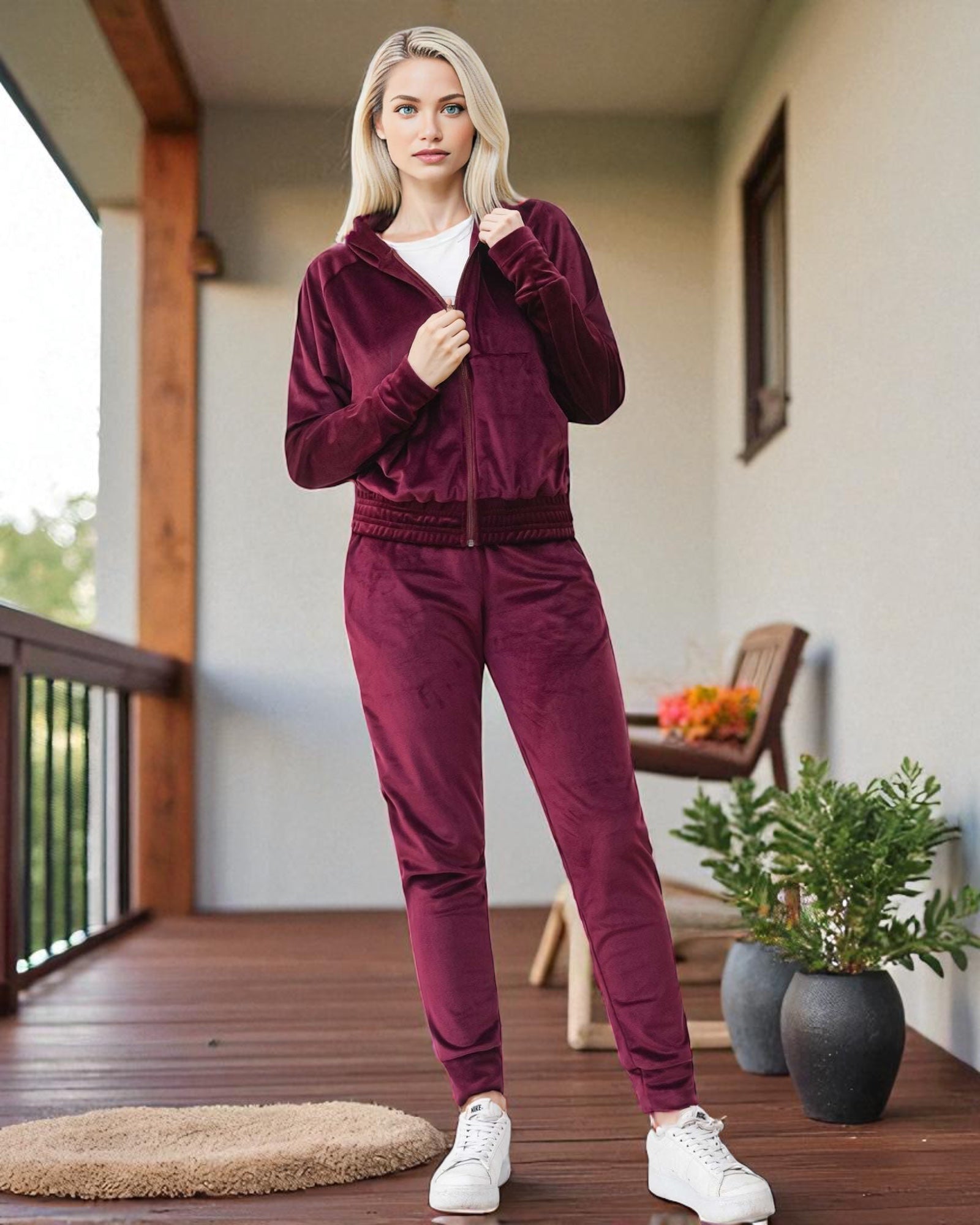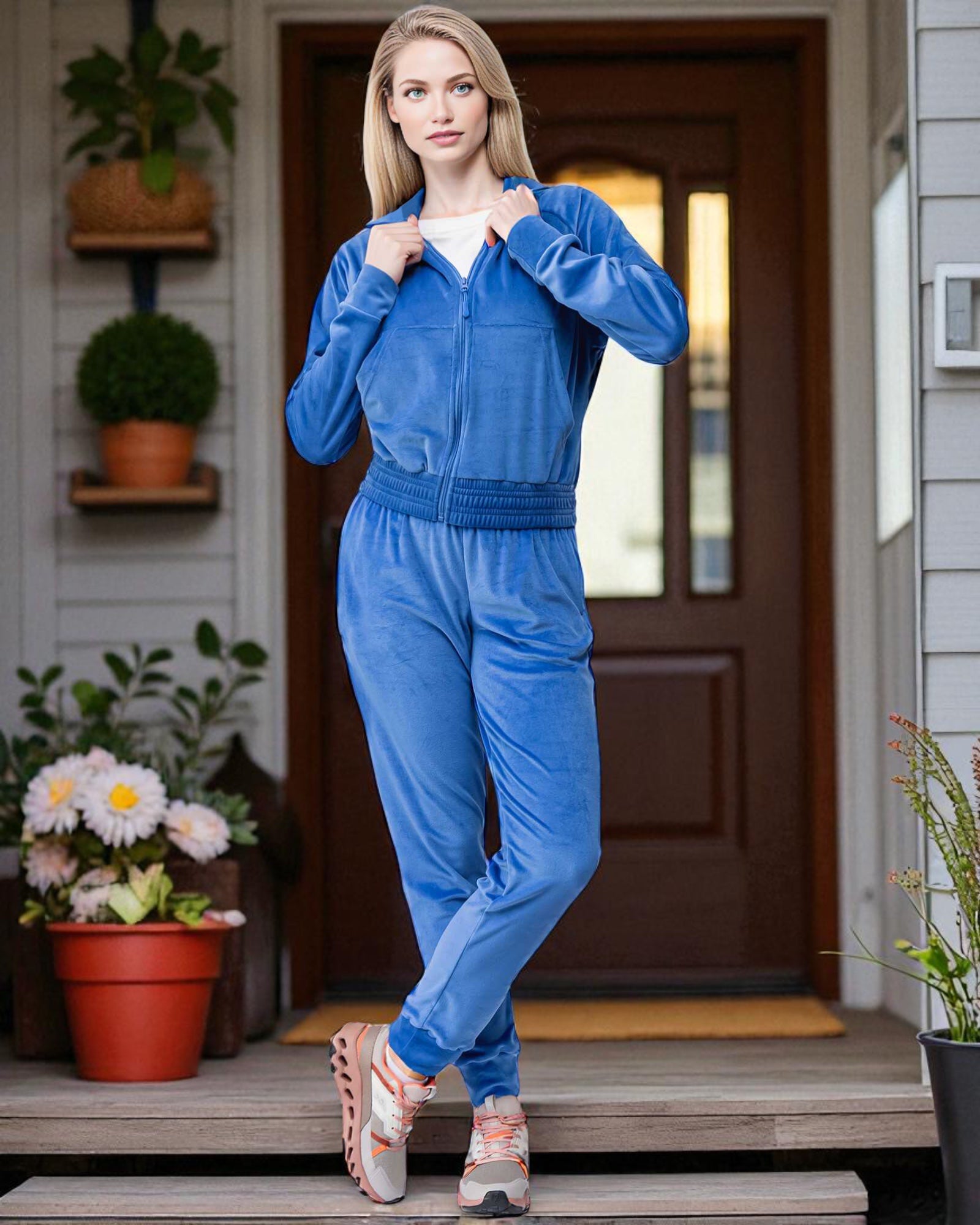 Crafted with a luxurious velvet material, this women's spring set is designed for a comfortable and versatile use throughout season.